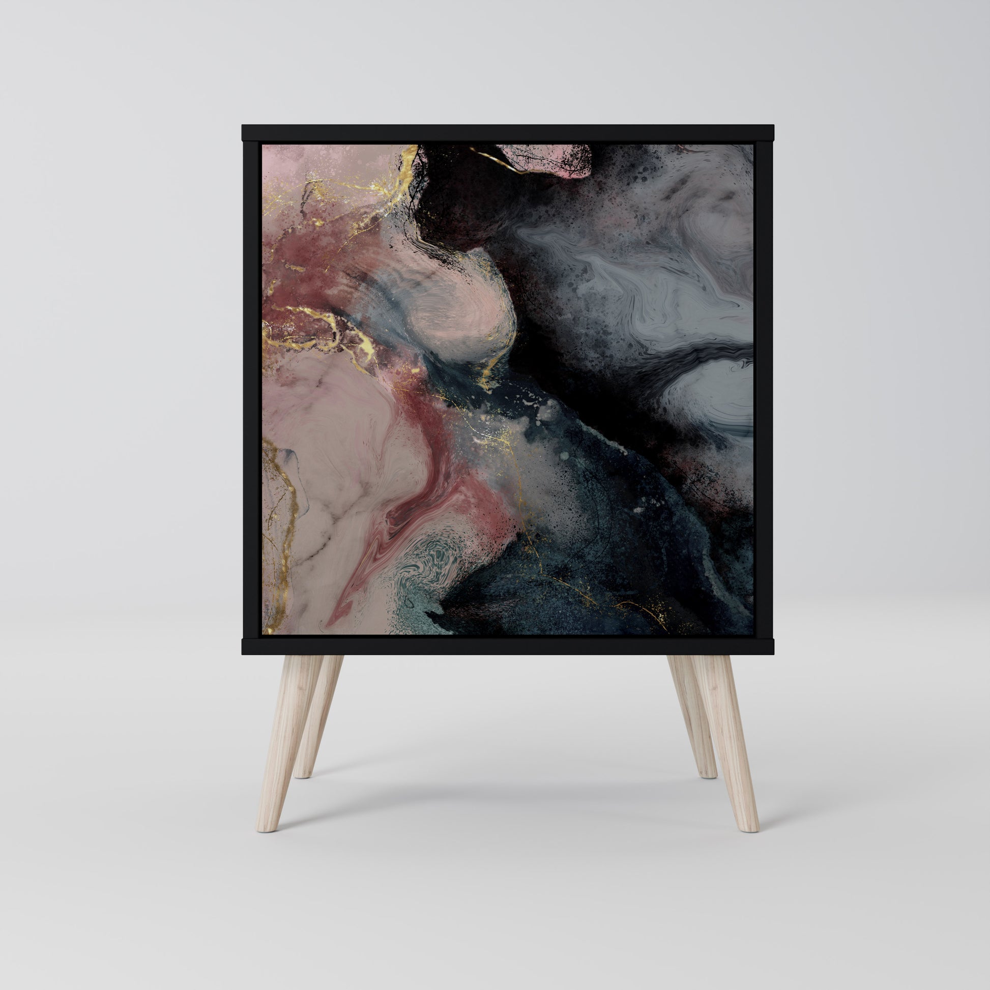 This compact yet remarkably elegant piece of furniture impresses with its minimalist design, perfectly fitting into both modern and classic interiors. The black body emphasizes the furniture’s bold character, while the fronts with a unique print add an artistic touch.