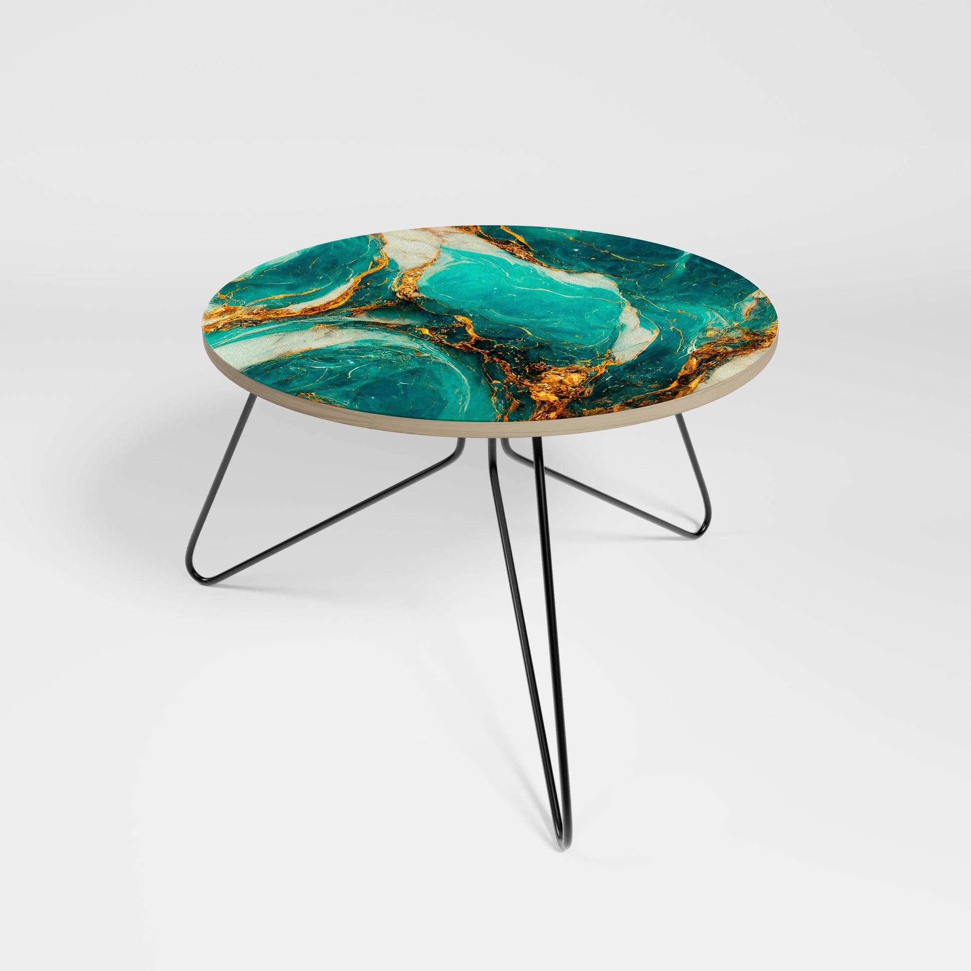 The tabletop features a high-quality printed motif, adding a distinctive artistic accent to your space. Crafted from durable chipboard covered with laminate, it ensures long-lasting use and resistance to daily wear.
