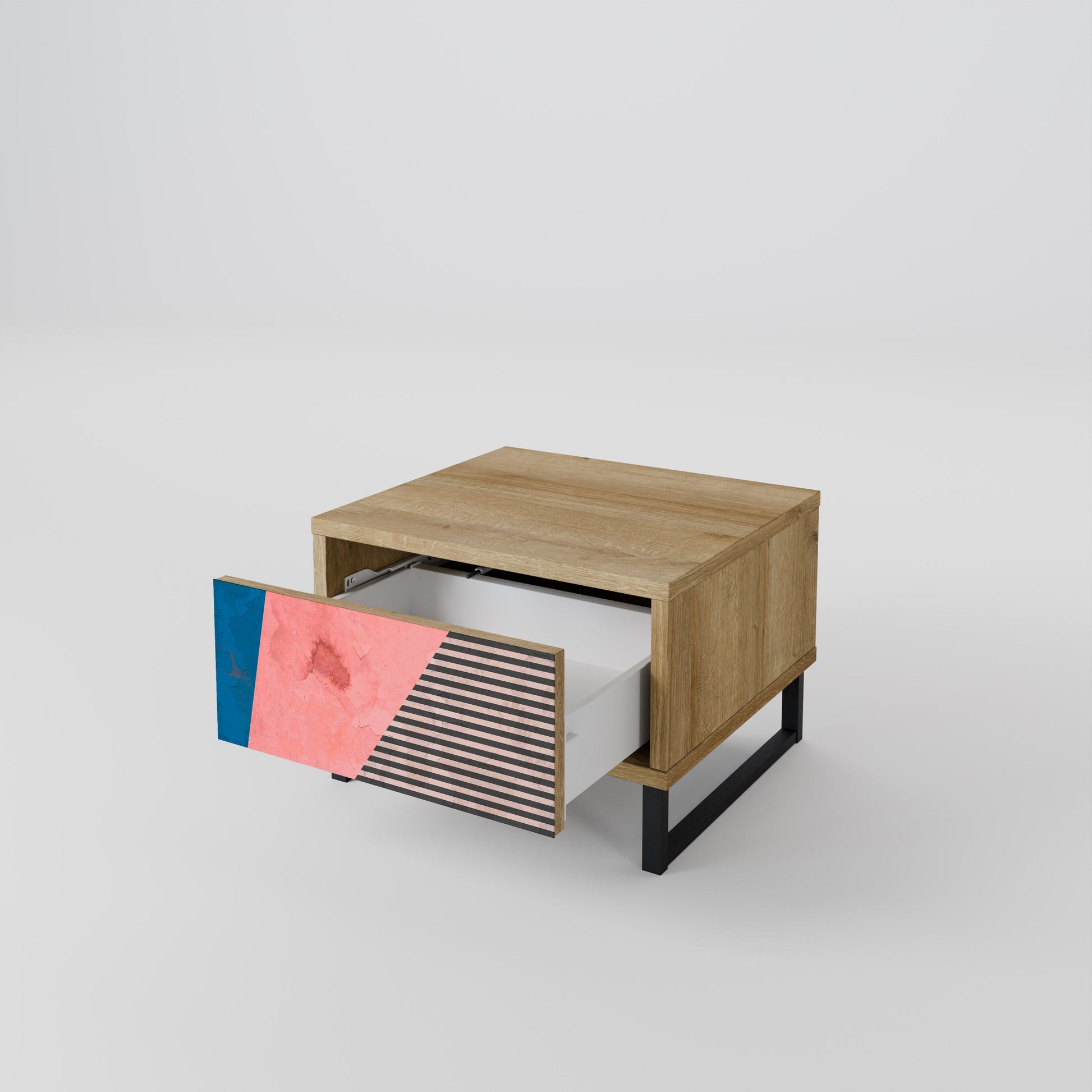 Discover functionality and elegance in a compact form with our bedside unit with a drawer. This practical and stylish piece of furniture perfectly combines the natural beauty of wood with modern design on the drawer front, creating a harmonious element for any bedroom.