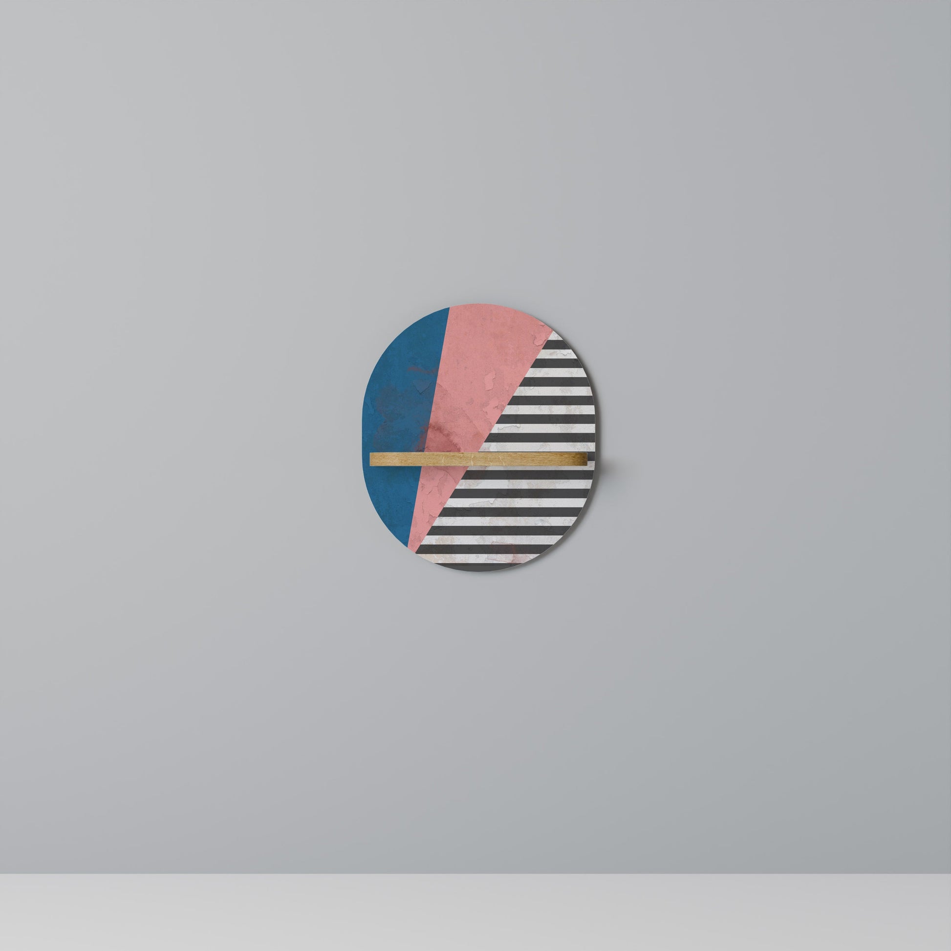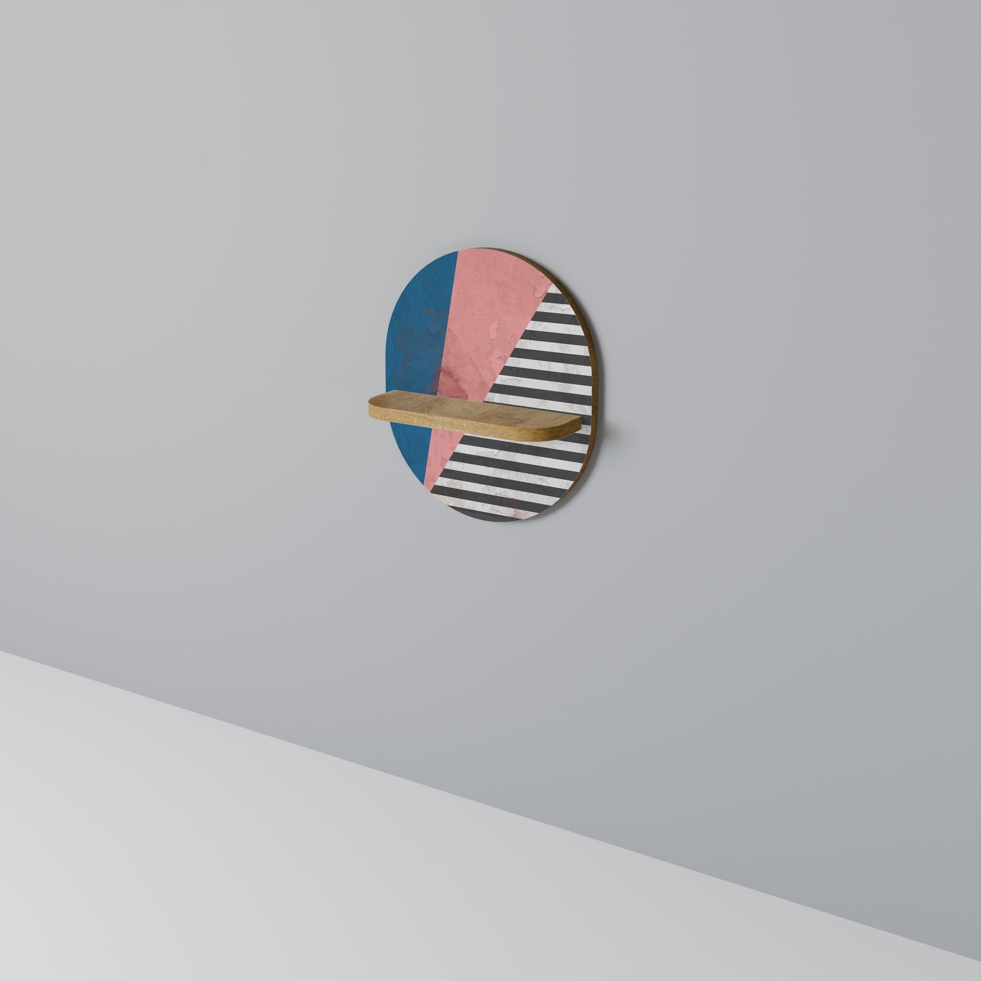 GLAMOROUS STRIPE Oval Art Shelf In Oak Effect