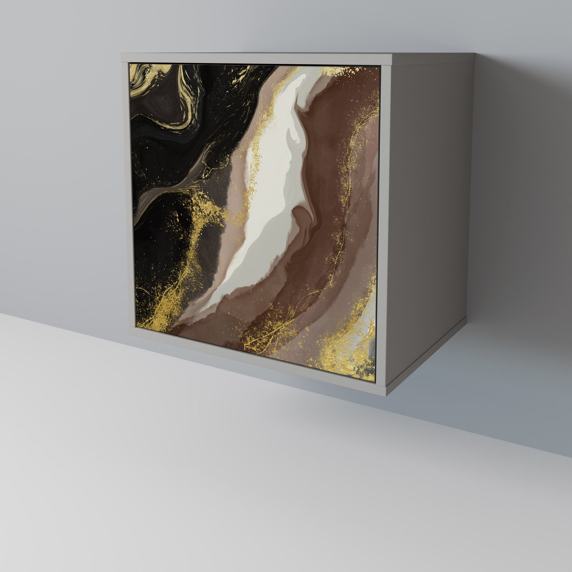 This compact yet remarkably elegant piece of furniture impresses with its minimalist design, perfectly fitting into both modern and classic interiors. The subdued grey color of the body gives the furniture a subtle yet distinctive character, while the fronts with a unique print add an artistic touch.