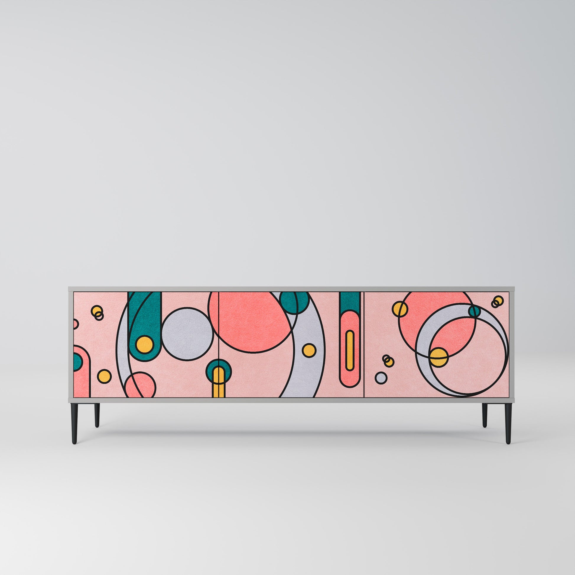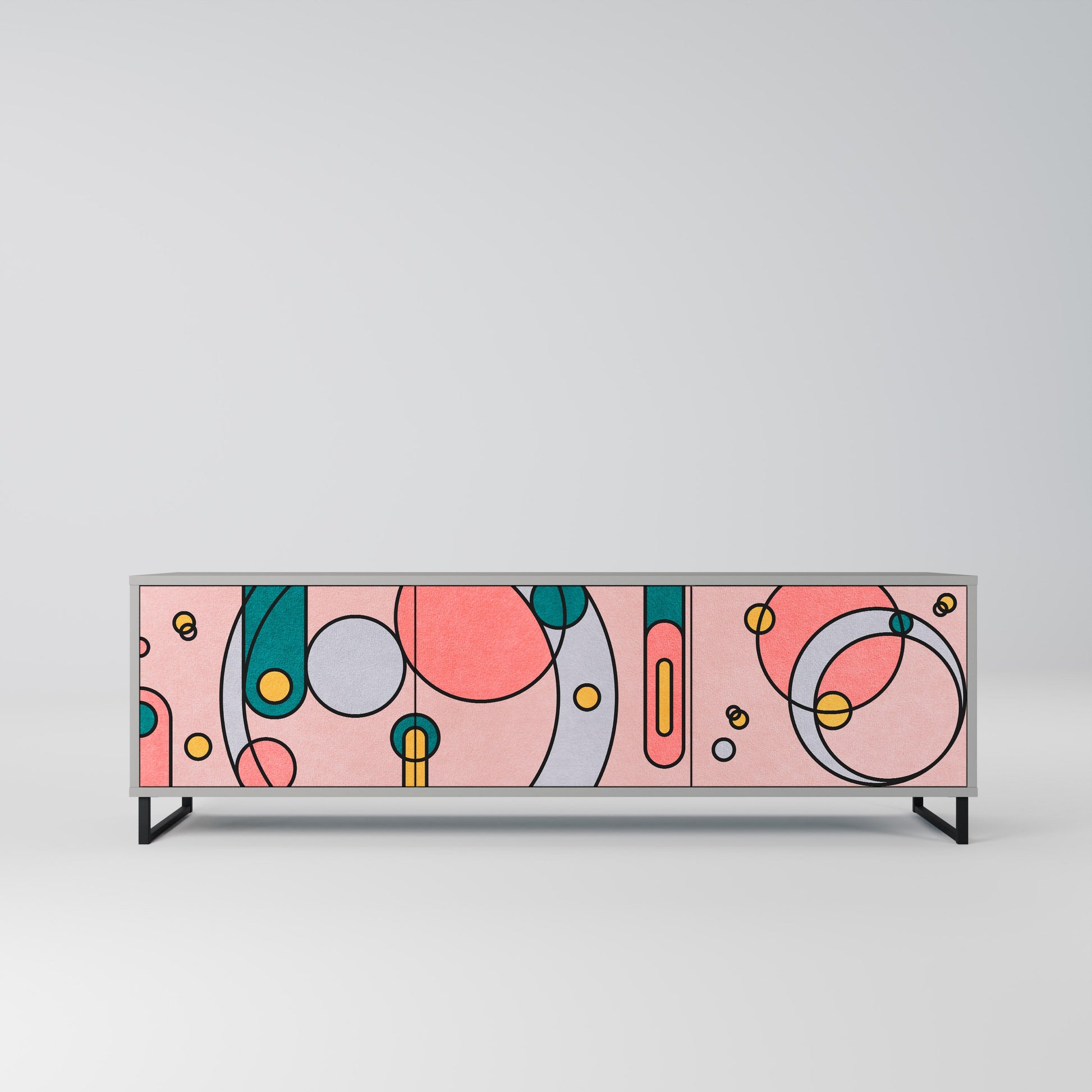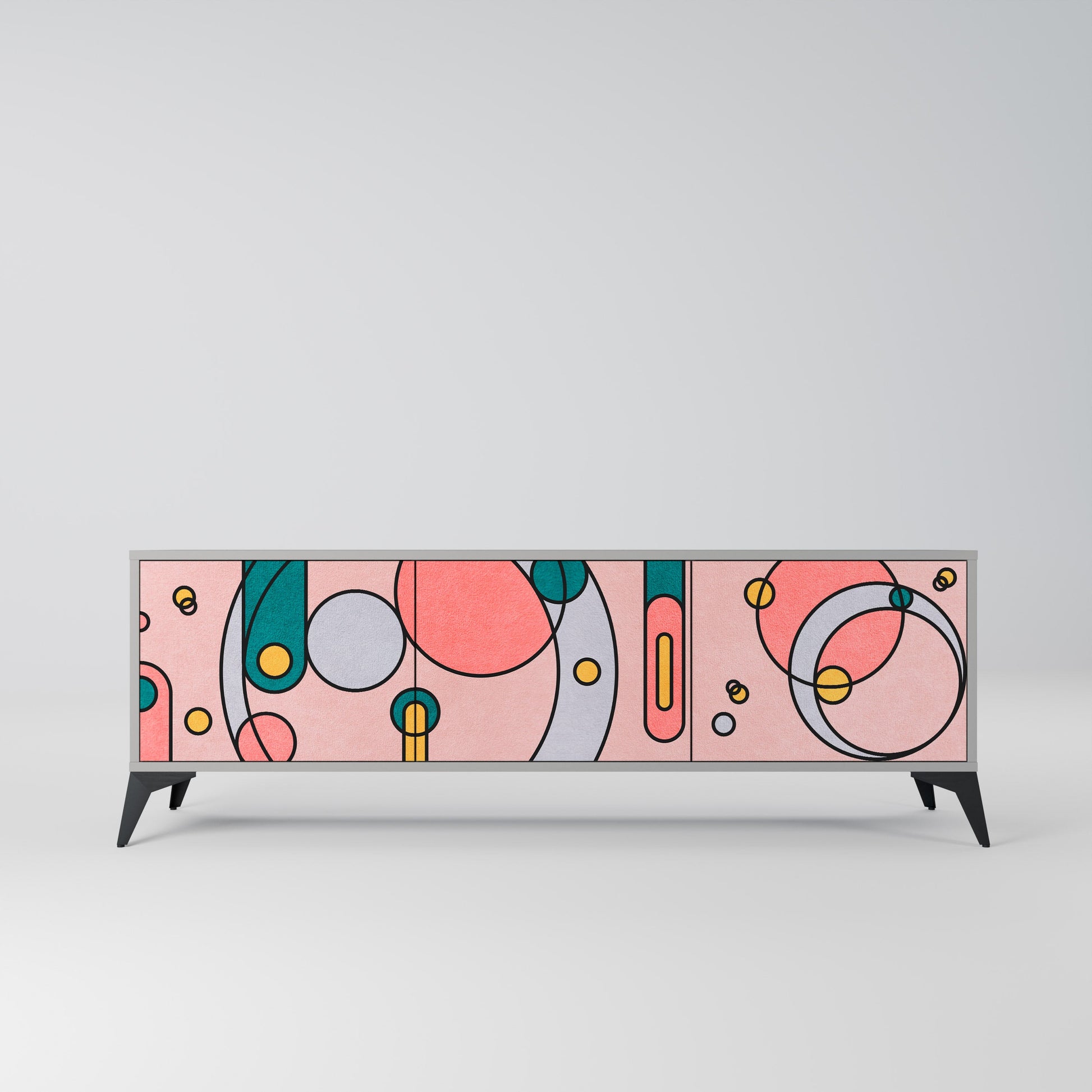 The grey body of the stand creates a refined, modern accent that pairs beautifully with industrial and minimalist arrangements. The fronts with a designer print add character and uniqueness, making this piece not only practical but also a standout decorative element.