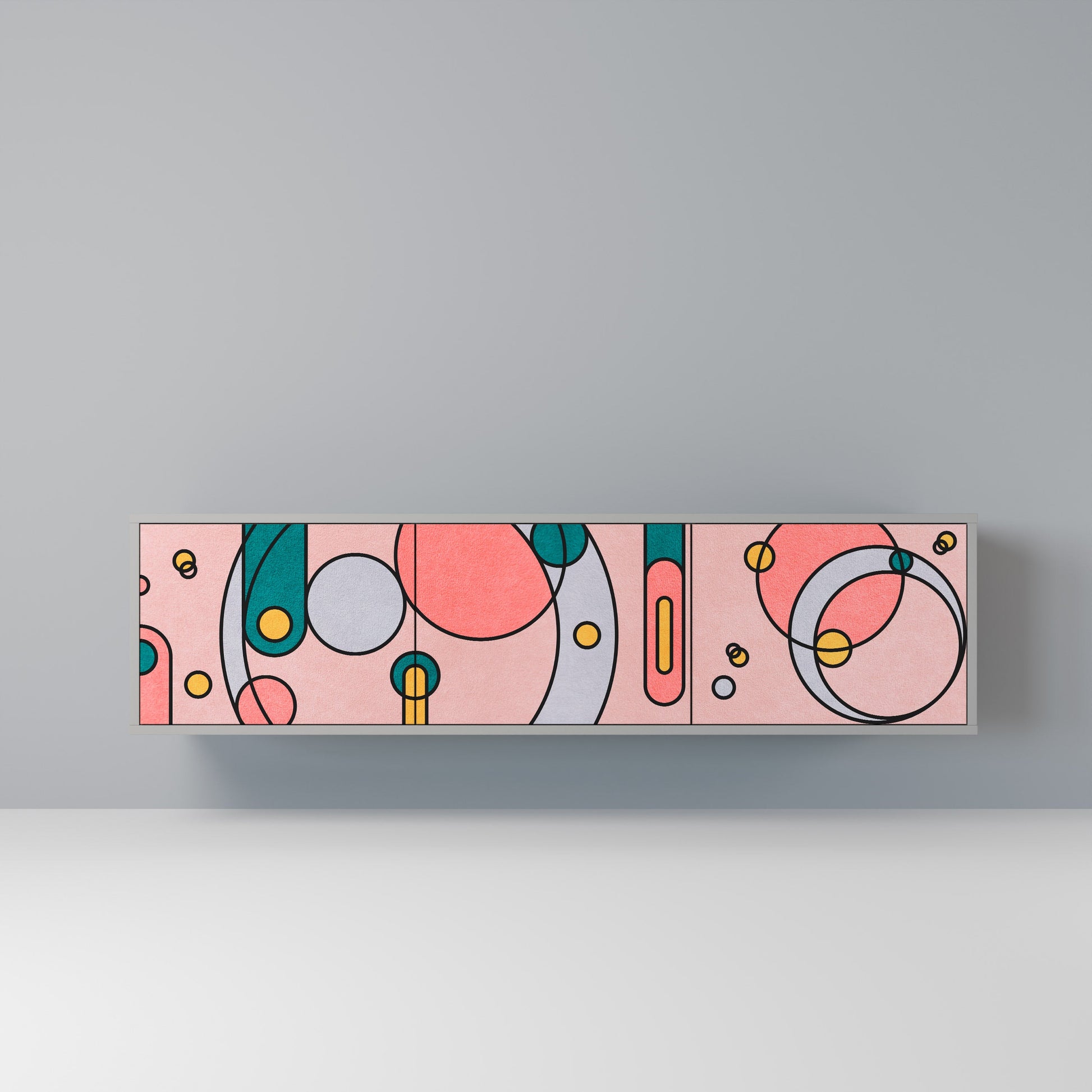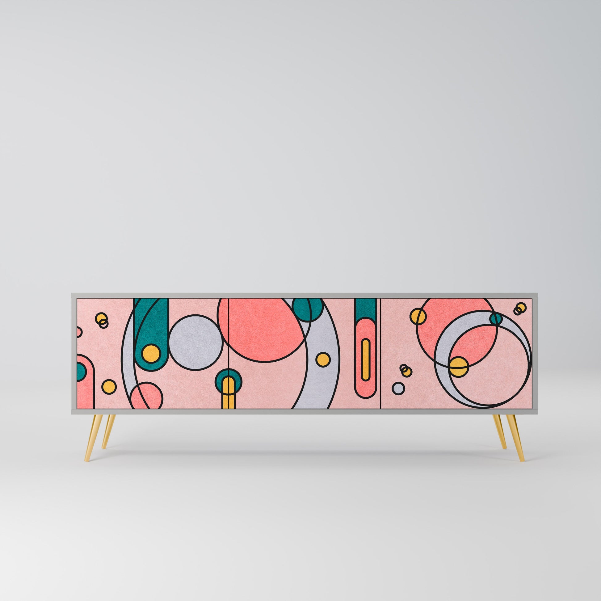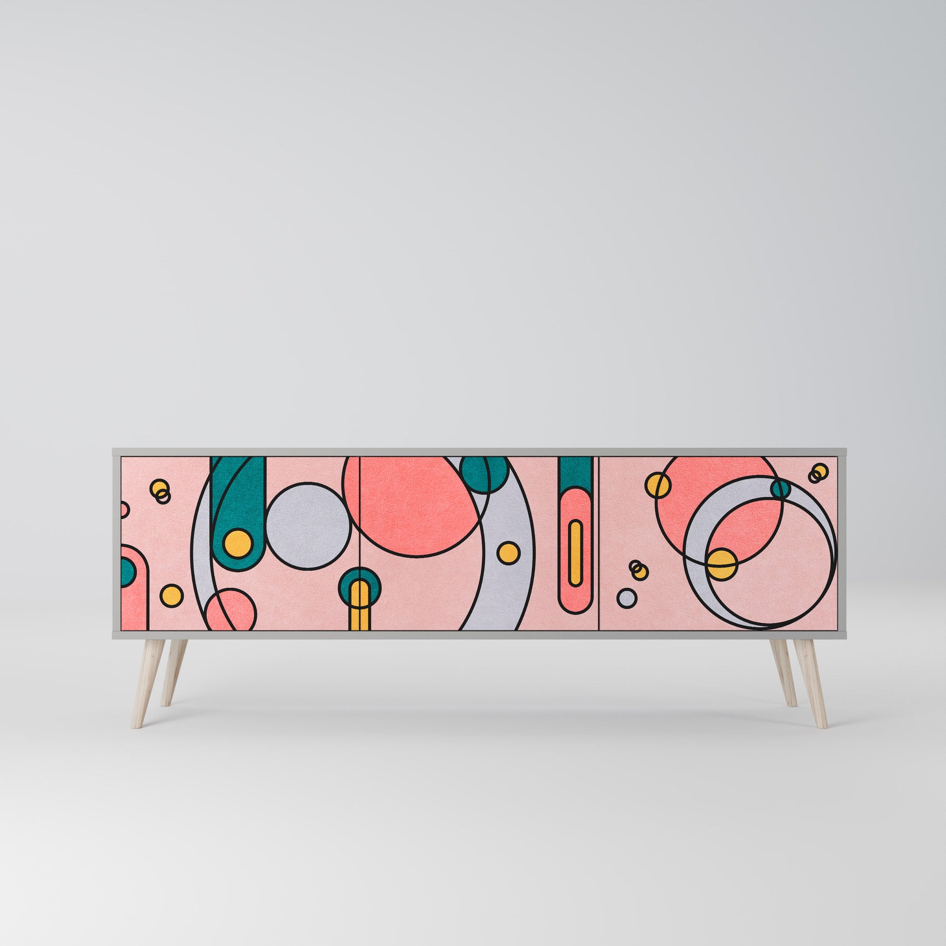 The grey body of the stand creates a refined, modern accent that pairs beautifully with industrial and minimalist arrangements. The fronts with a designer print add character and uniqueness, making this piece not only practical but also a standout decorative element.