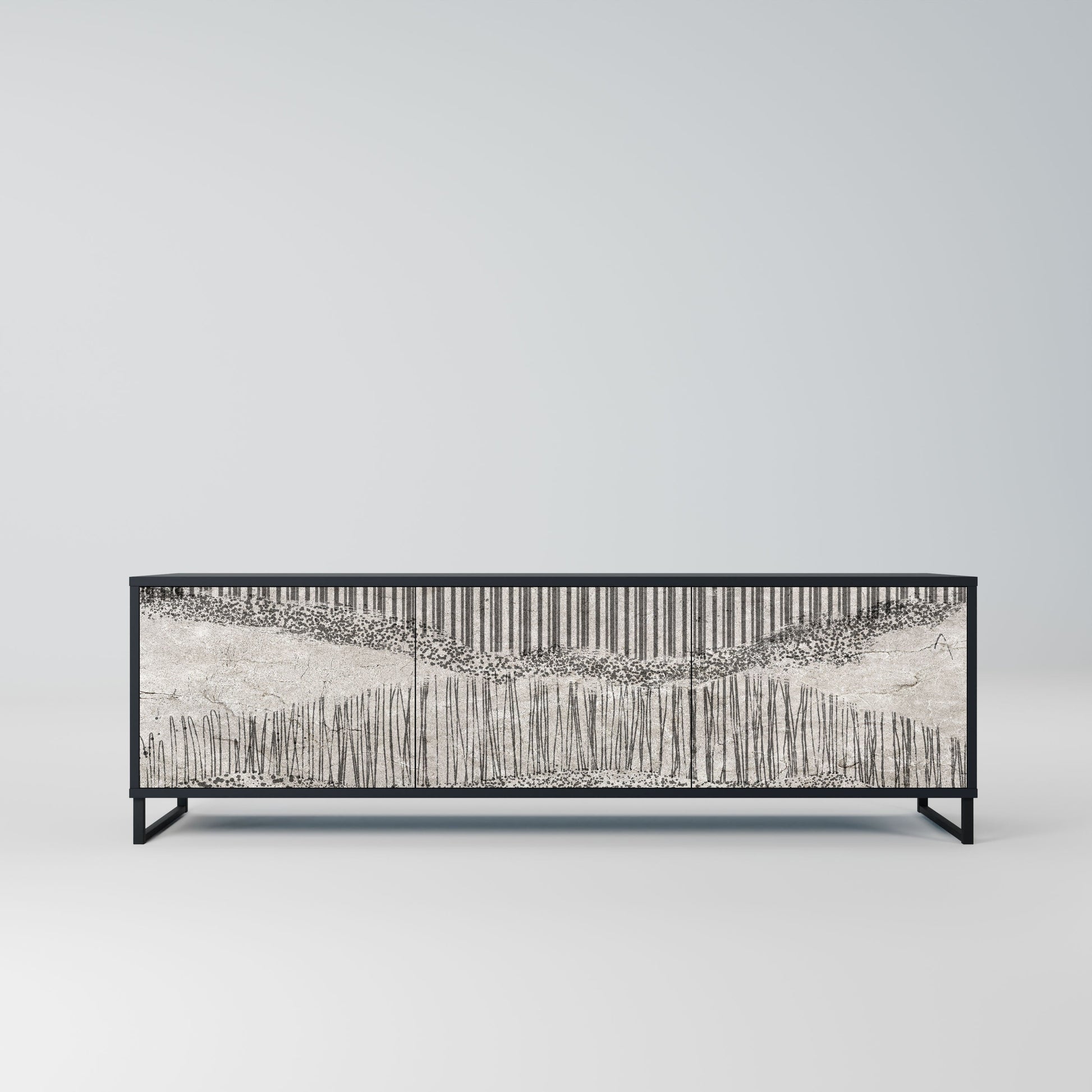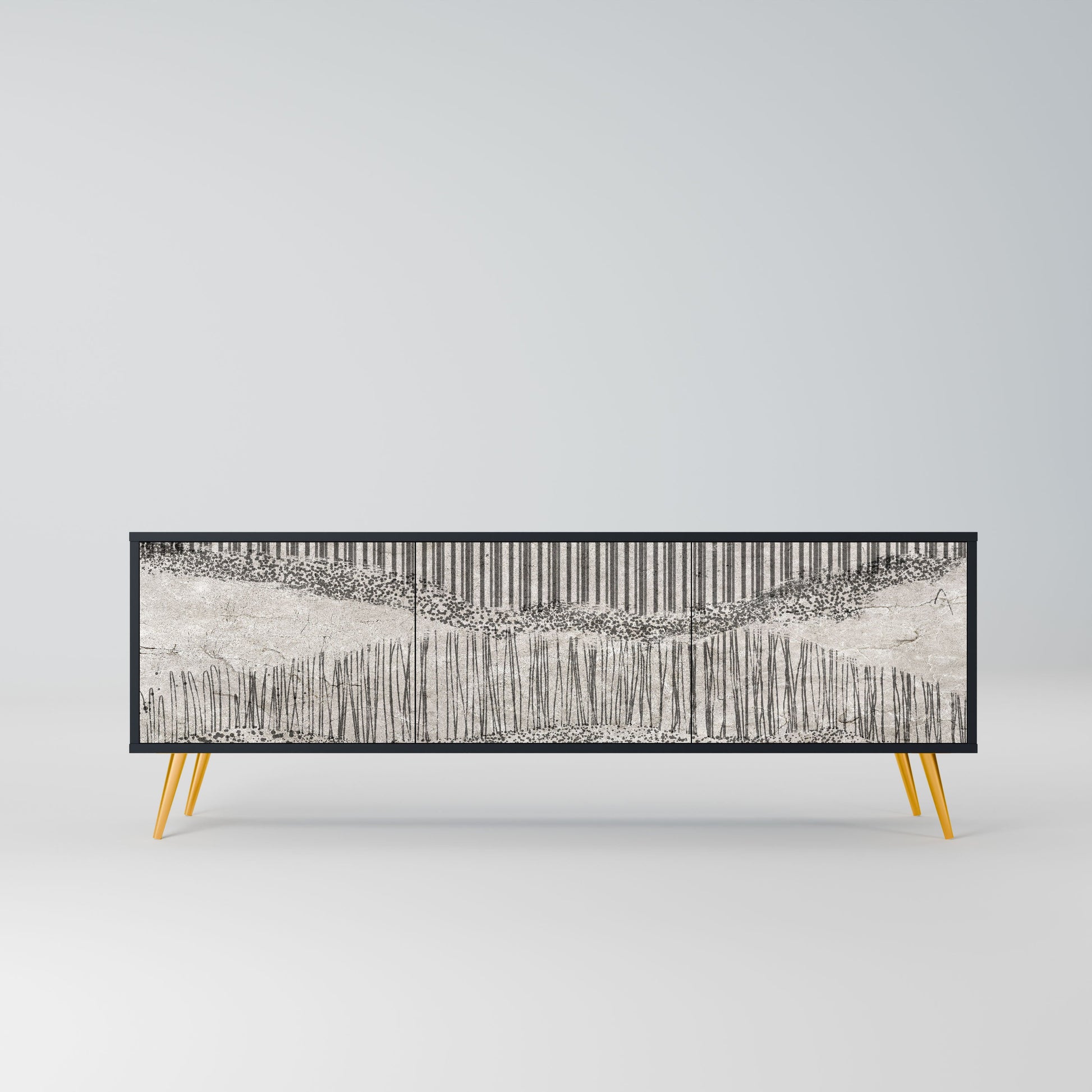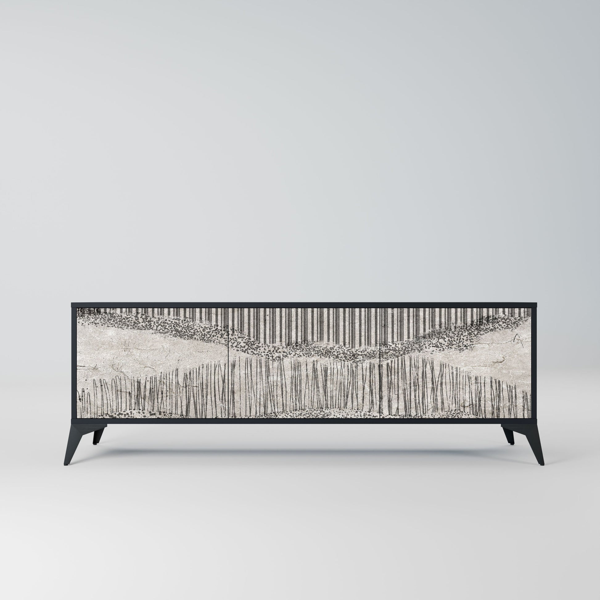 GRAIN LINES 3-Door TV Stand in Black Finish