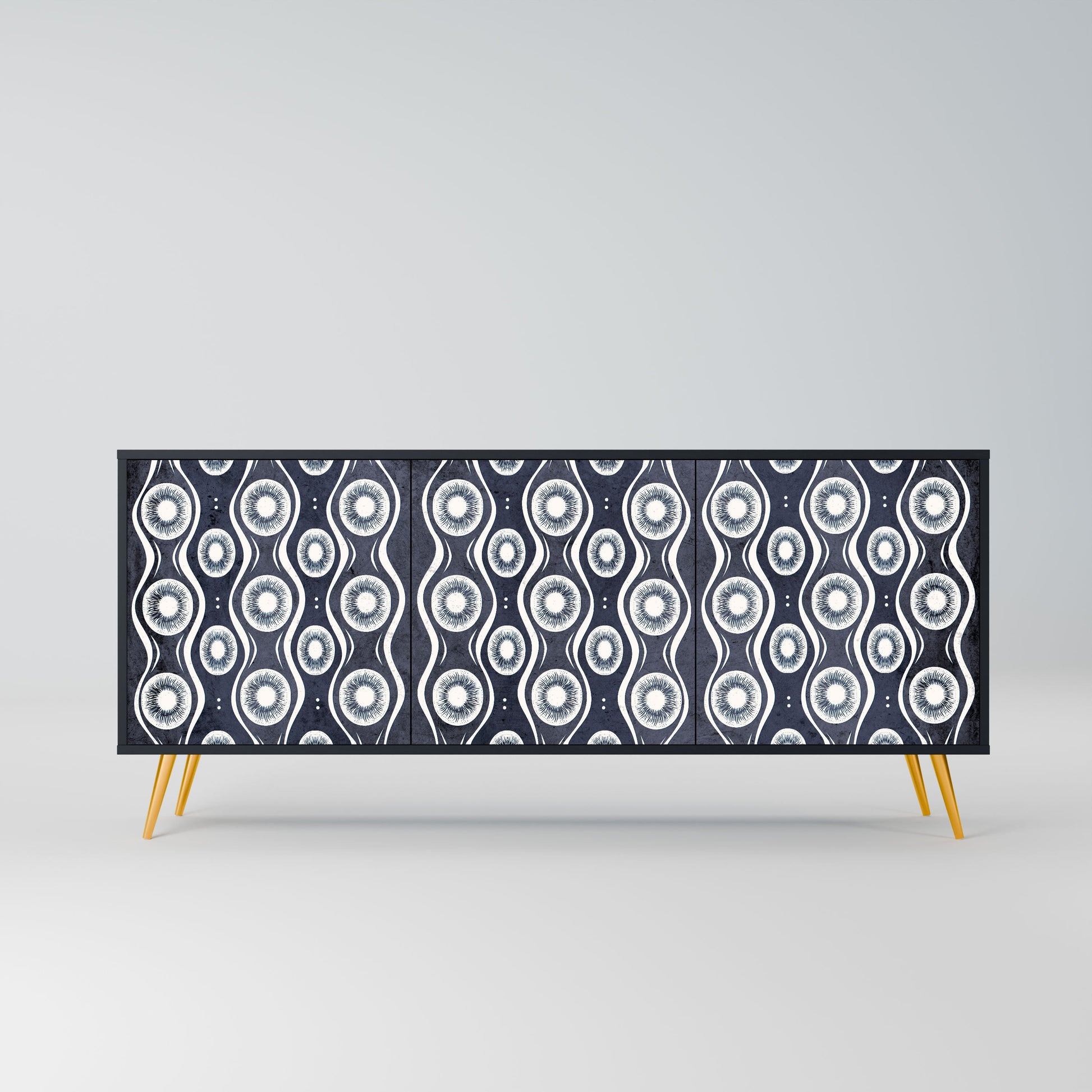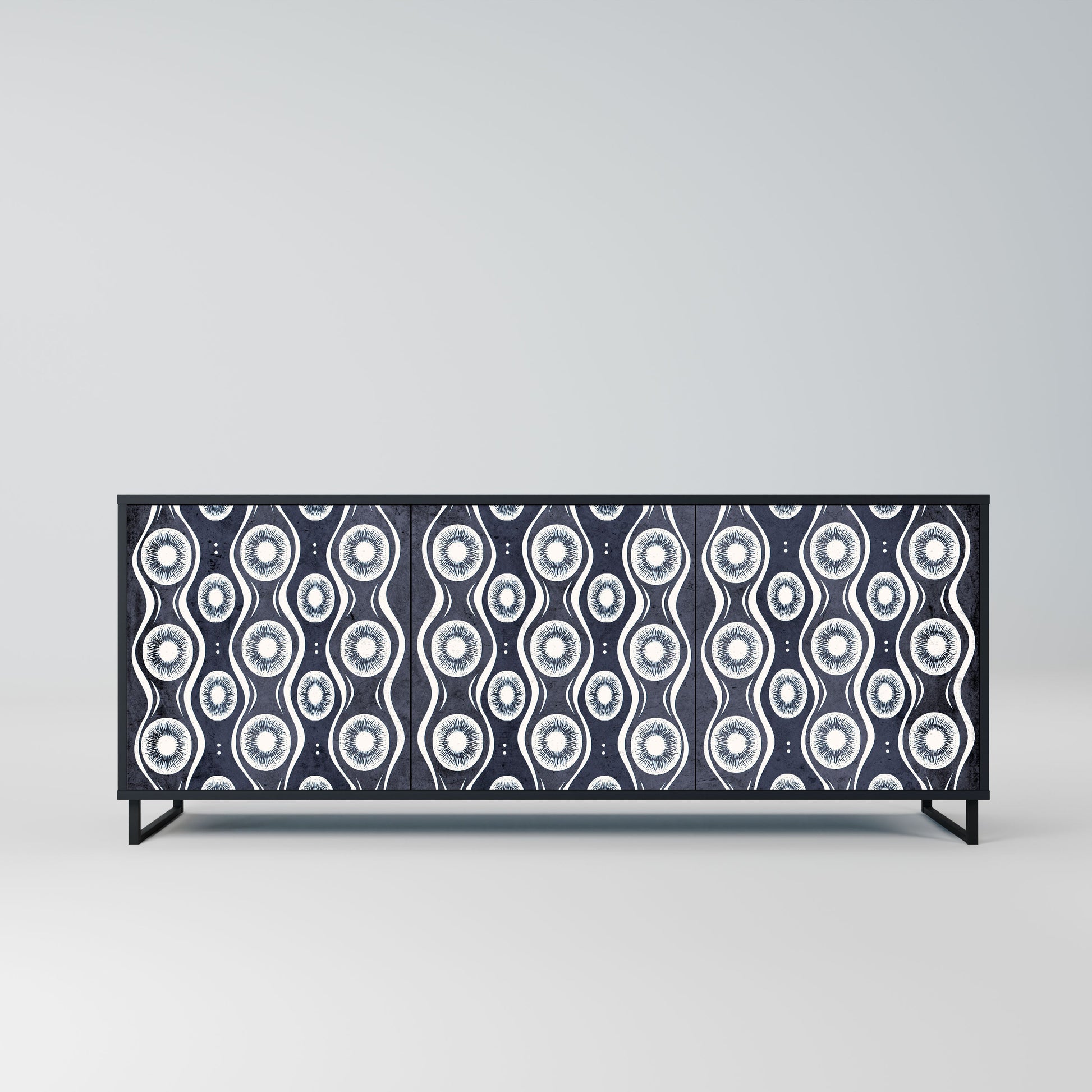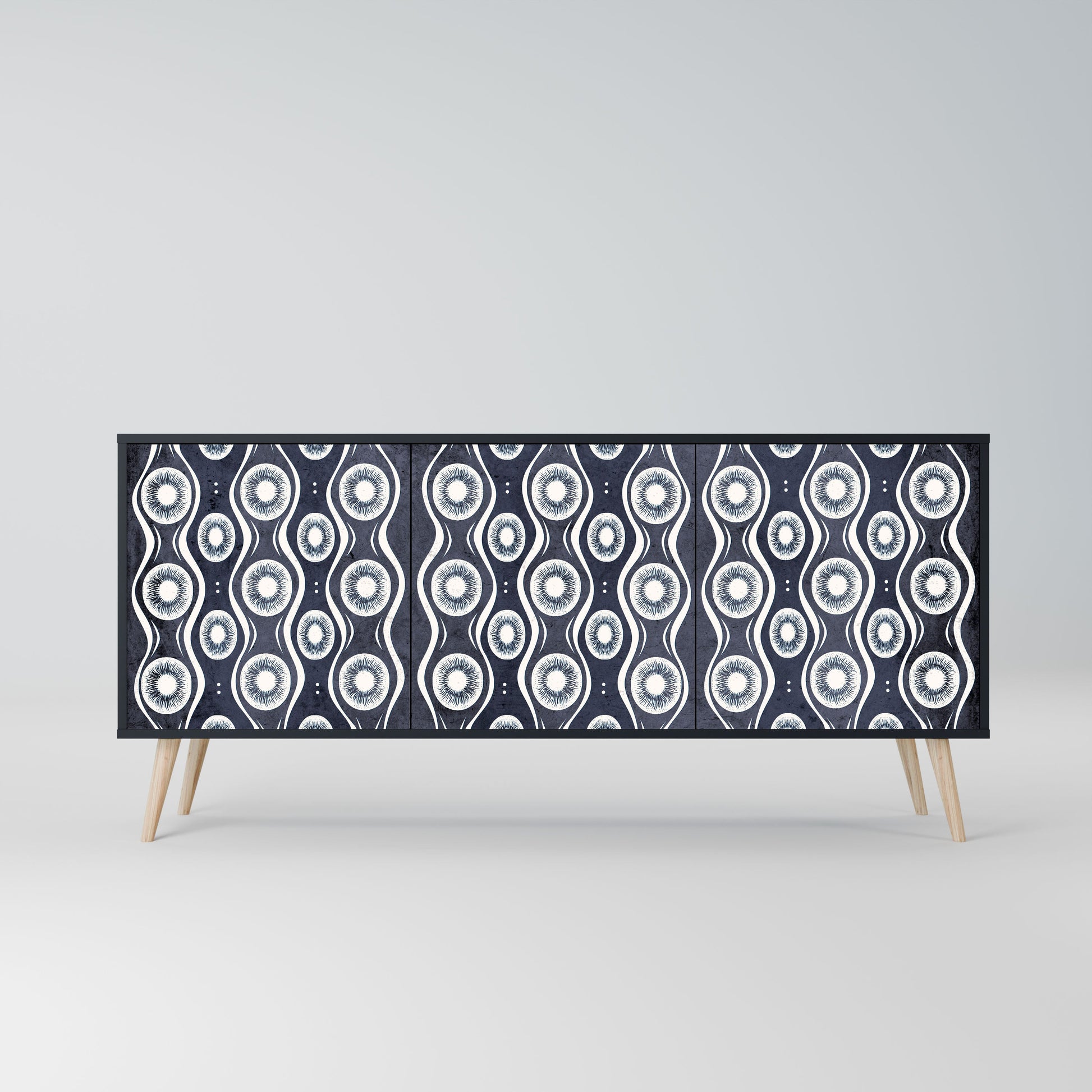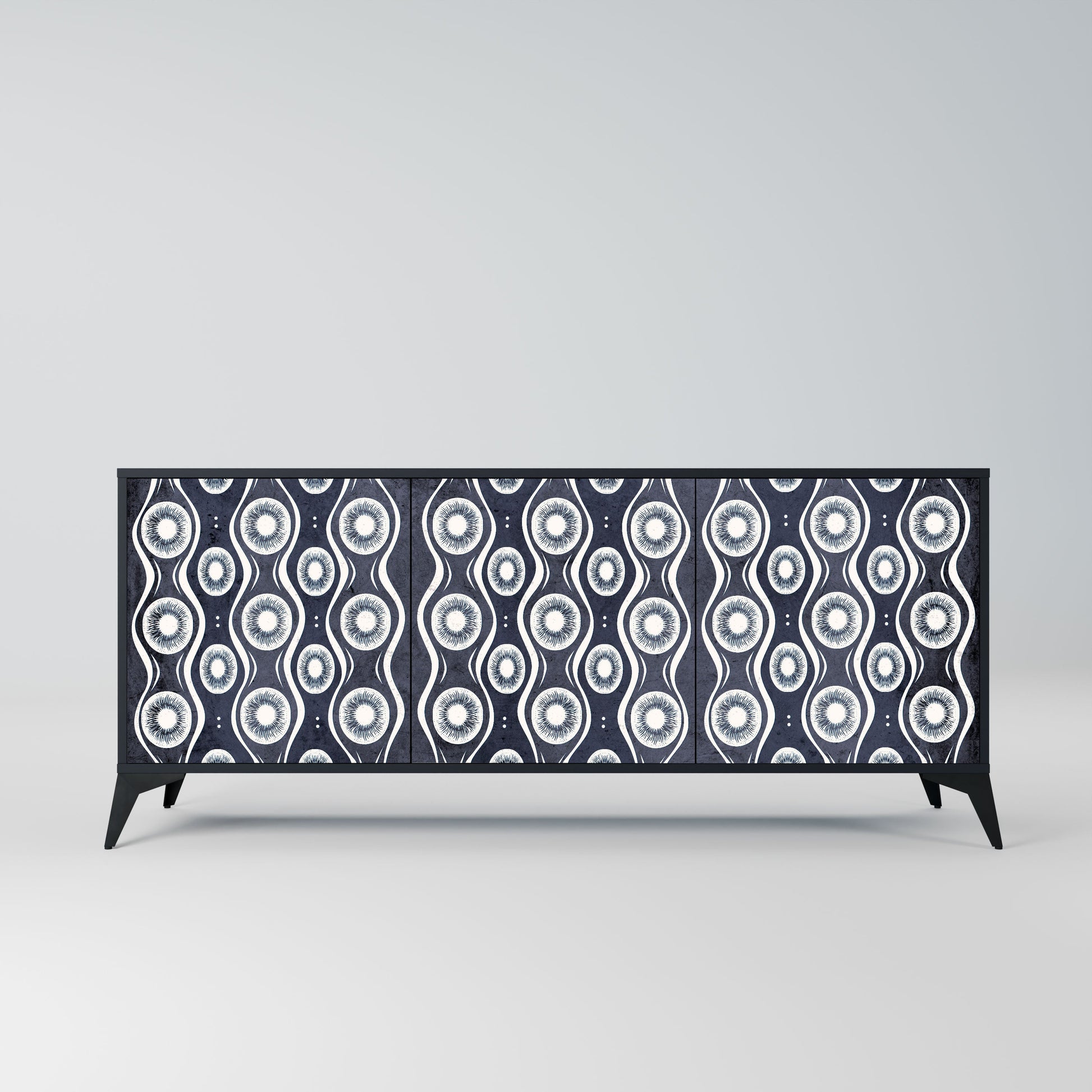 Elegance and functionality in a single piece of furniture – our 3-Door Sideboard with a black body is the perfect solution for lovers of stylish, modern interiors. The black body emphasizes the bold character of the furniture, while the fronts with a unique print add an artistic touch. It fits perfectly in the living room, bedroom, or office, complementing both modern and industrial arrangements.
