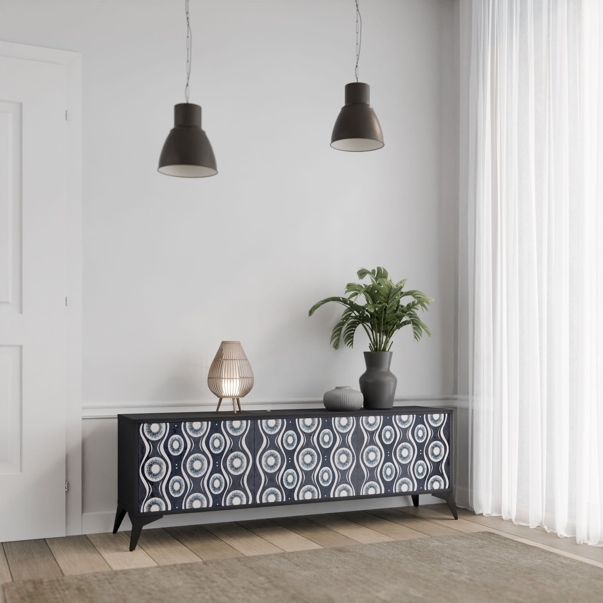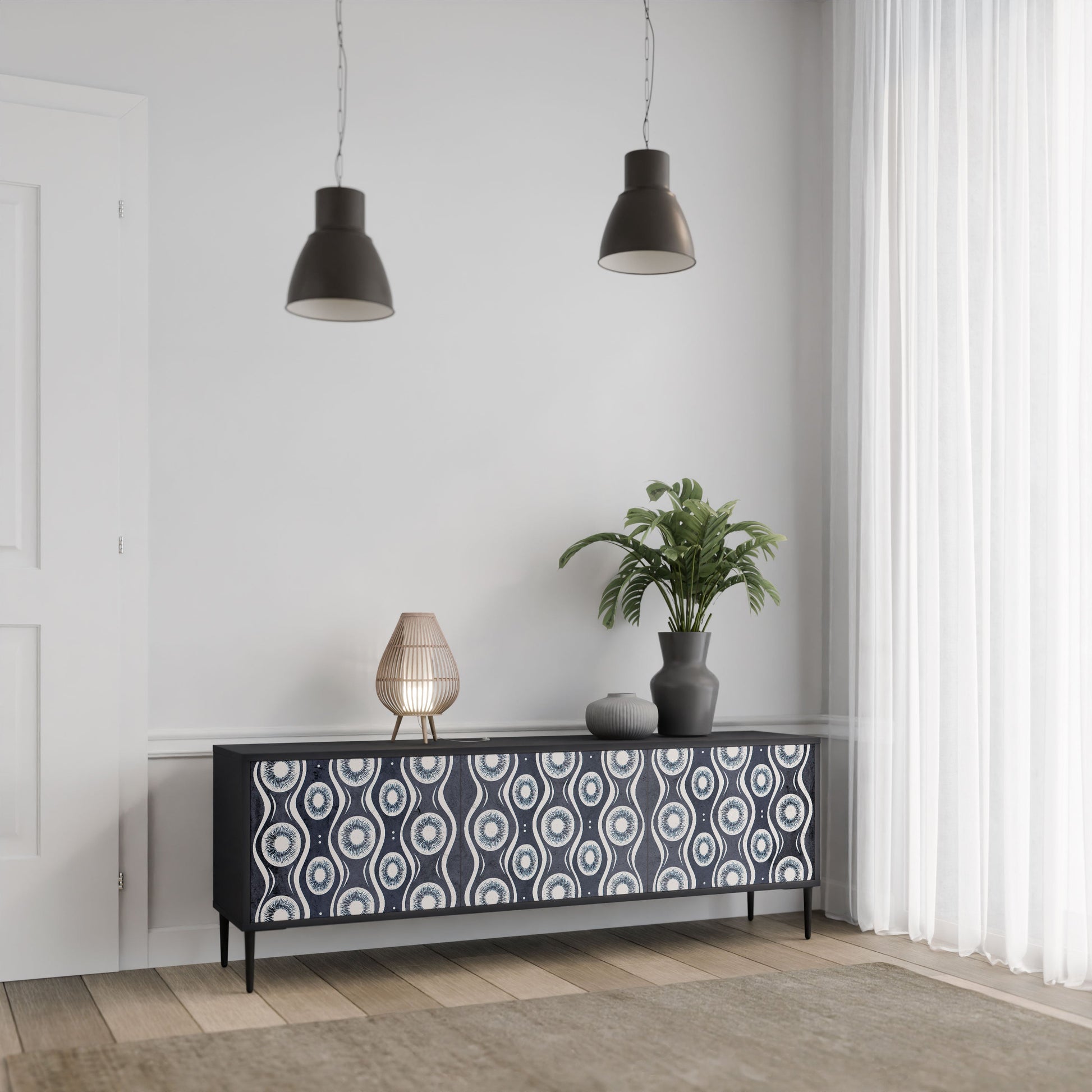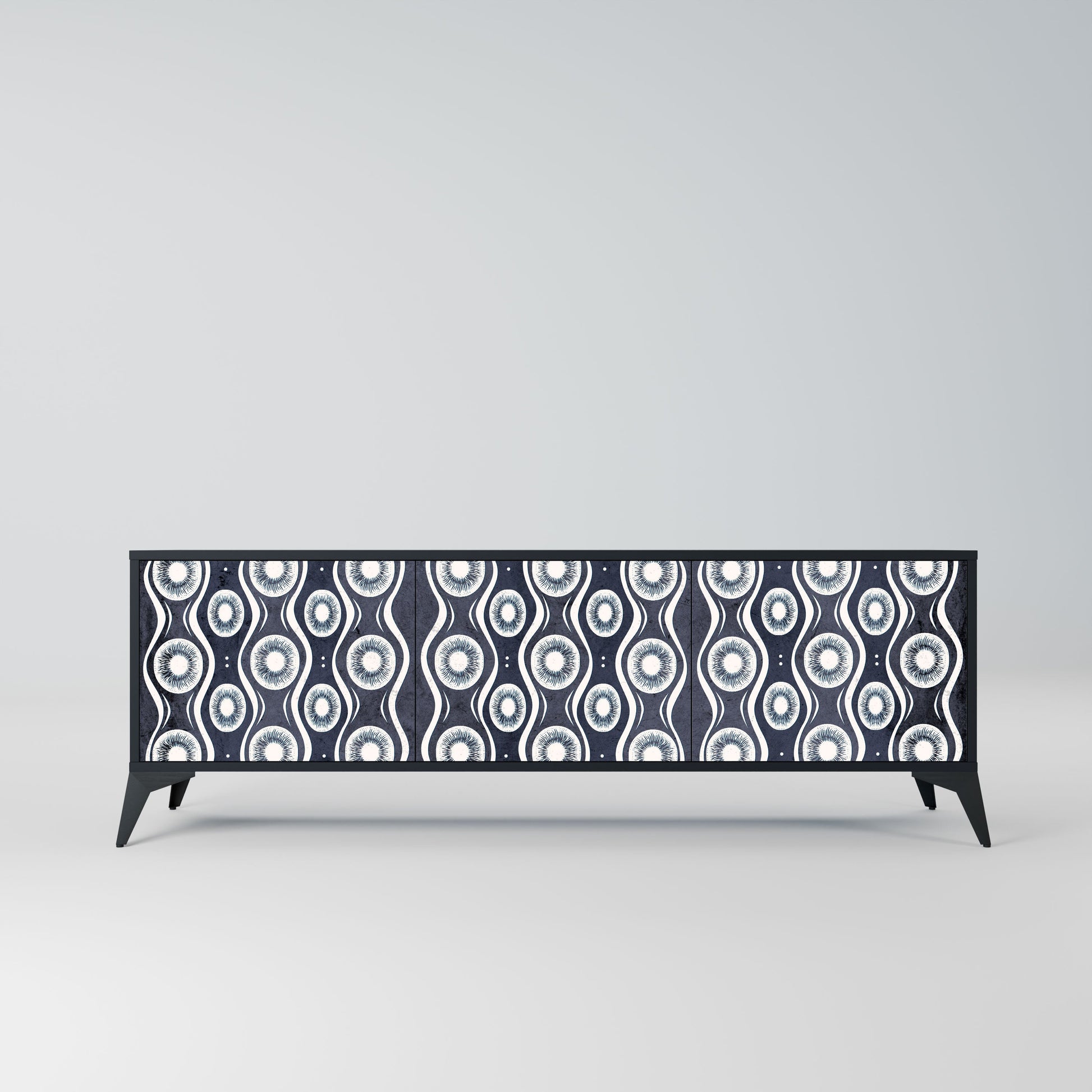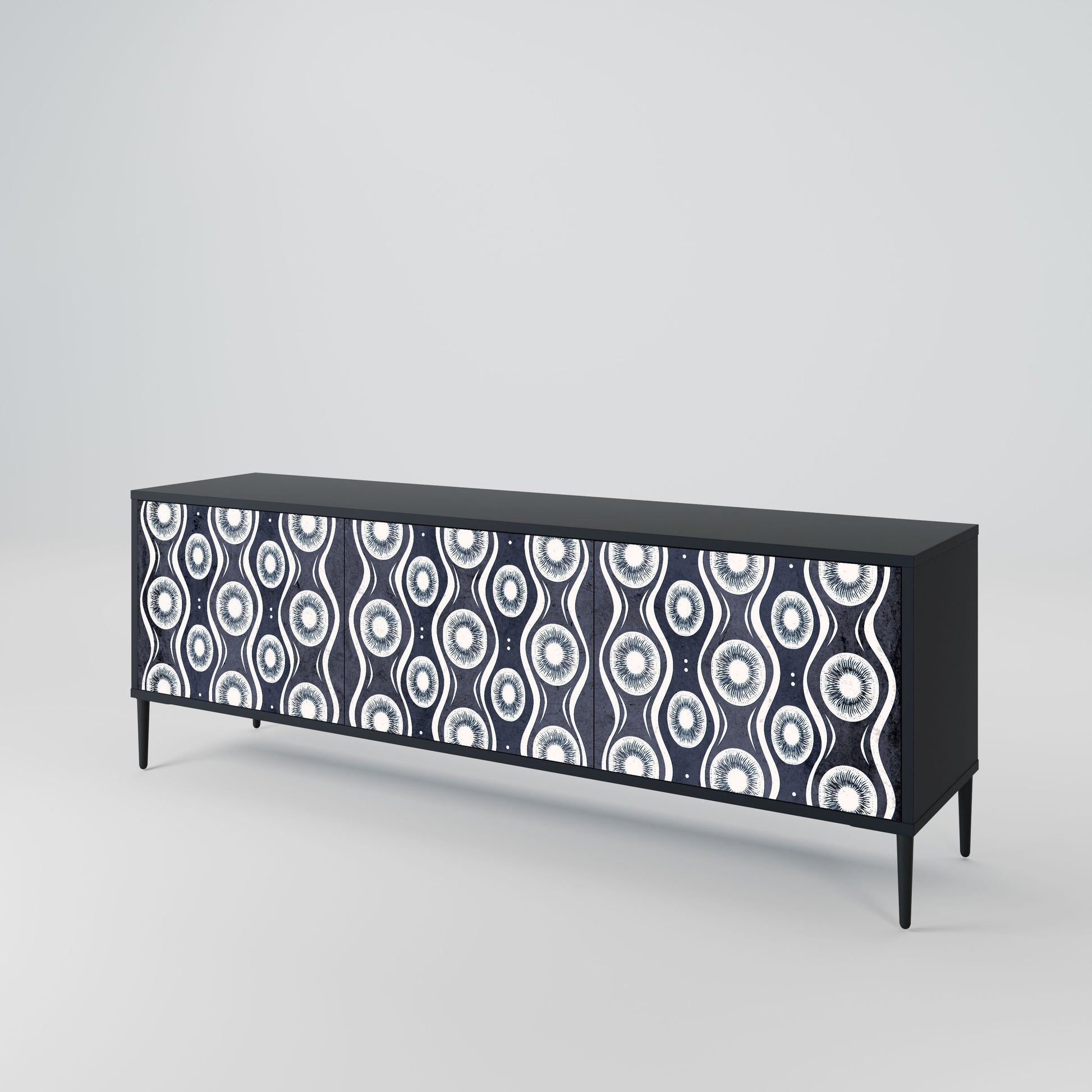 The black body of the stand creates a bold, modern accent that pairs beautifully with industrial and minimalist arrangements. The fronts with a designer print add character and uniqueness, making this piece not only practical but also a standout decorative element.