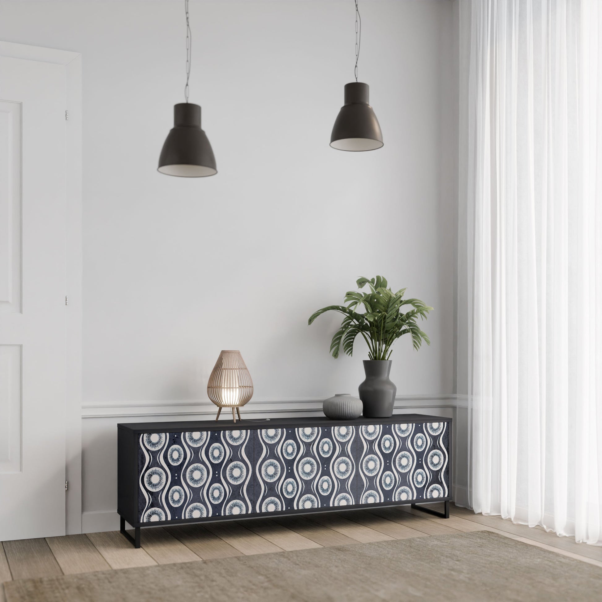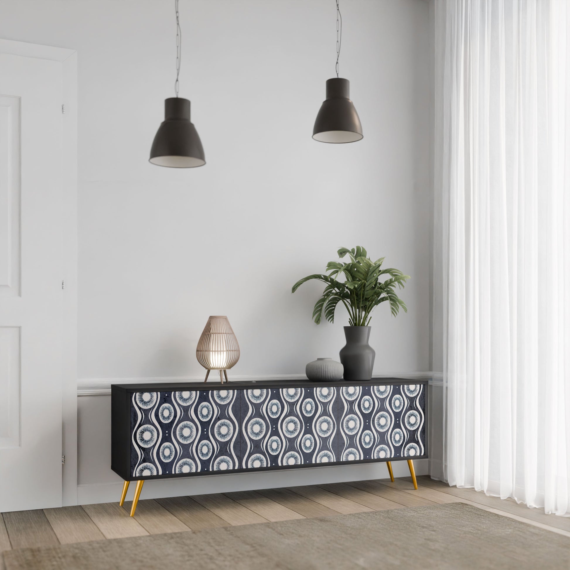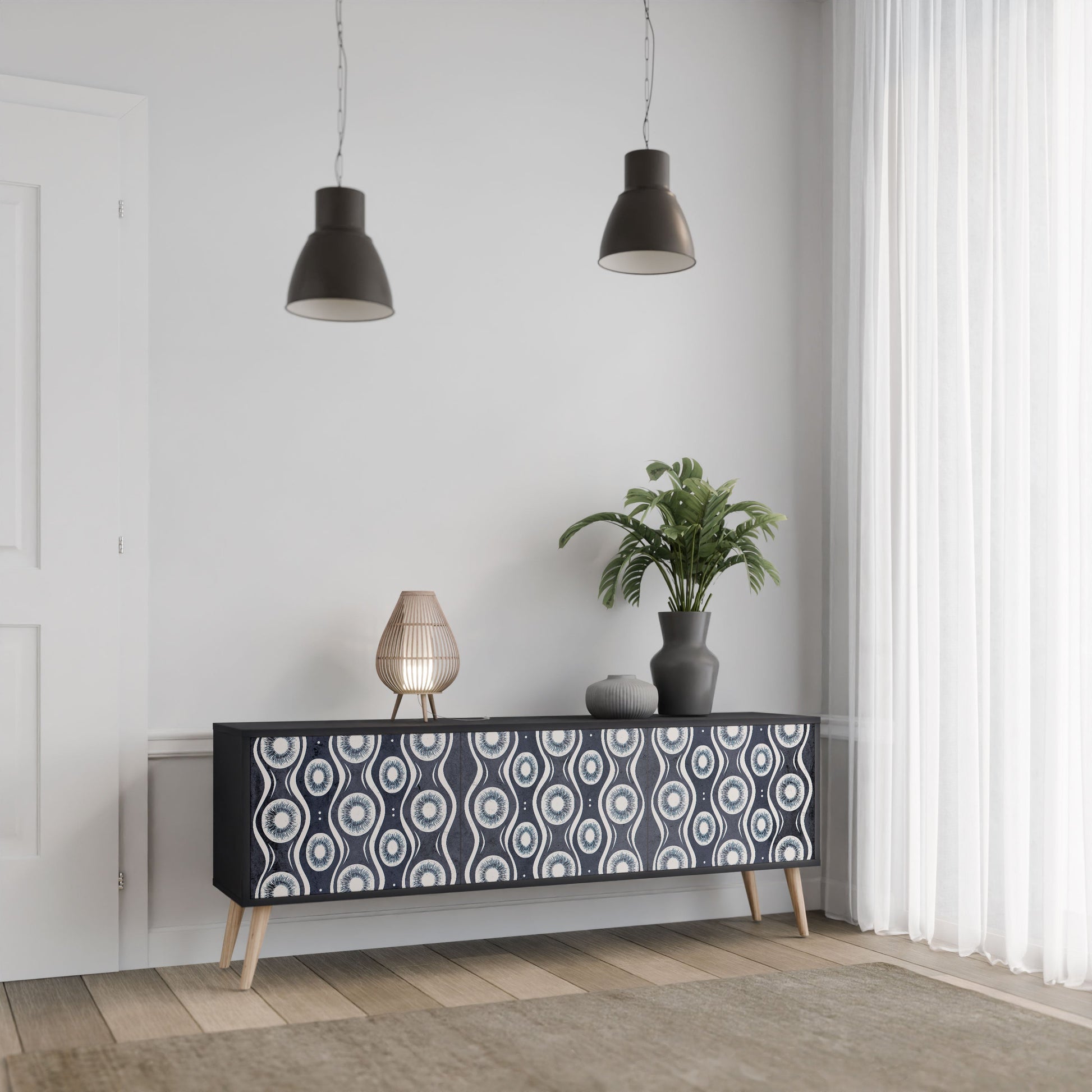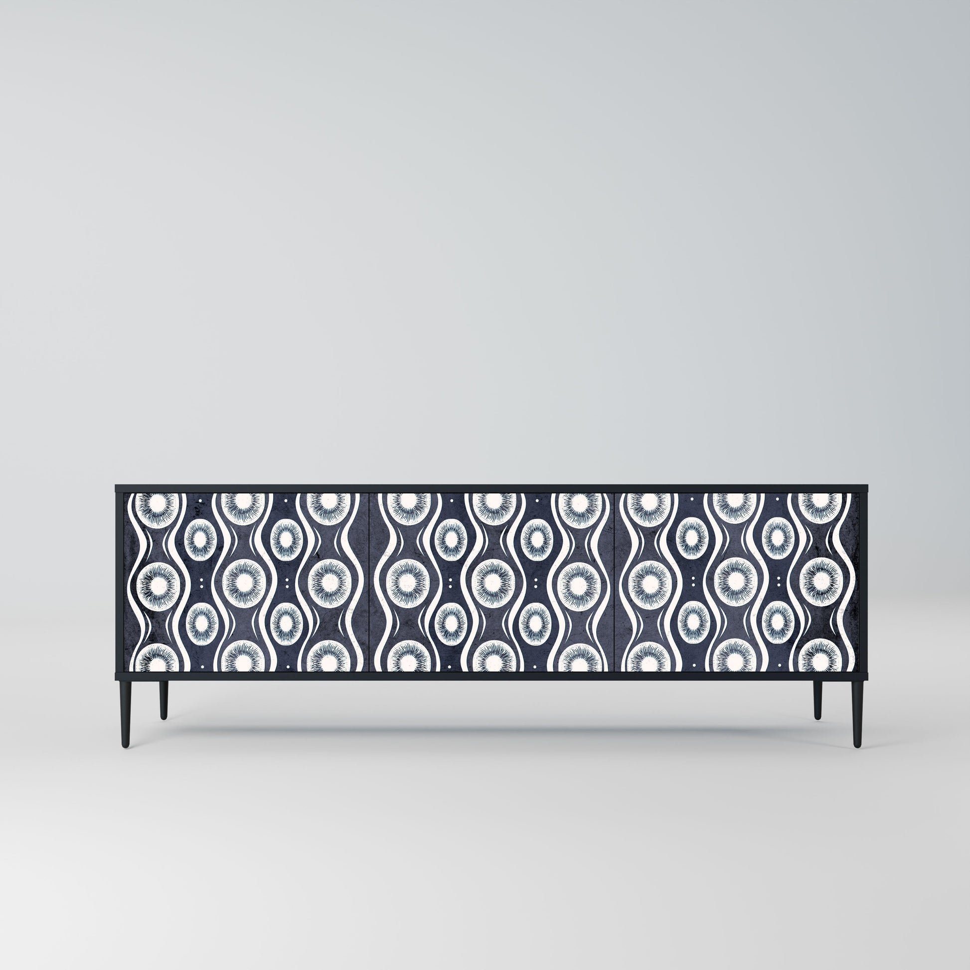 The black body of the stand creates a bold, modern accent that pairs beautifully with industrial and minimalist arrangements. The fronts with a designer print add character and uniqueness, making this piece not only practical but also a standout decorative element.