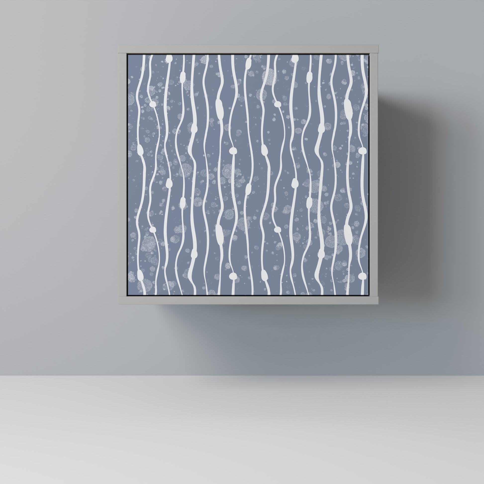 This compact yet remarkably elegant piece of furniture impresses with its minimalist design, perfectly fitting into both modern and classic interiors. The subdued grey color of the body gives the furniture a subtle yet distinctive character, while the fronts with a unique print add an artistic touch.
