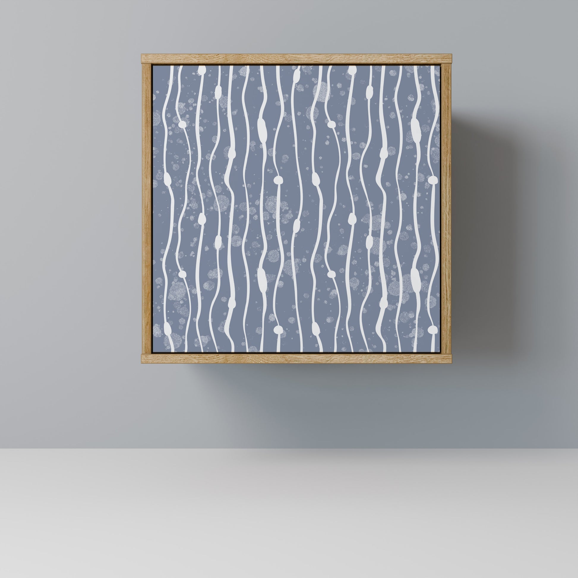The stylish front with a subtle print adds a modern touch, making the sideboard not only a practical but also a decorative element of the interior.