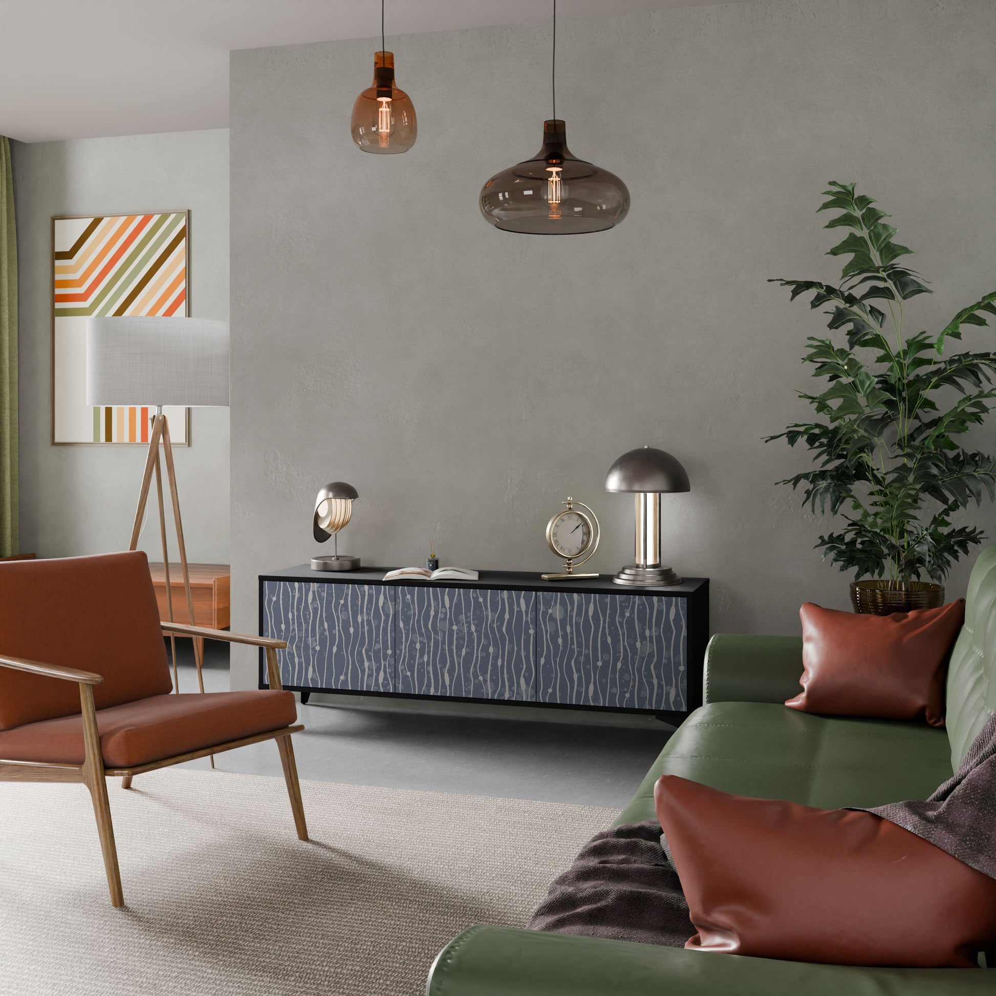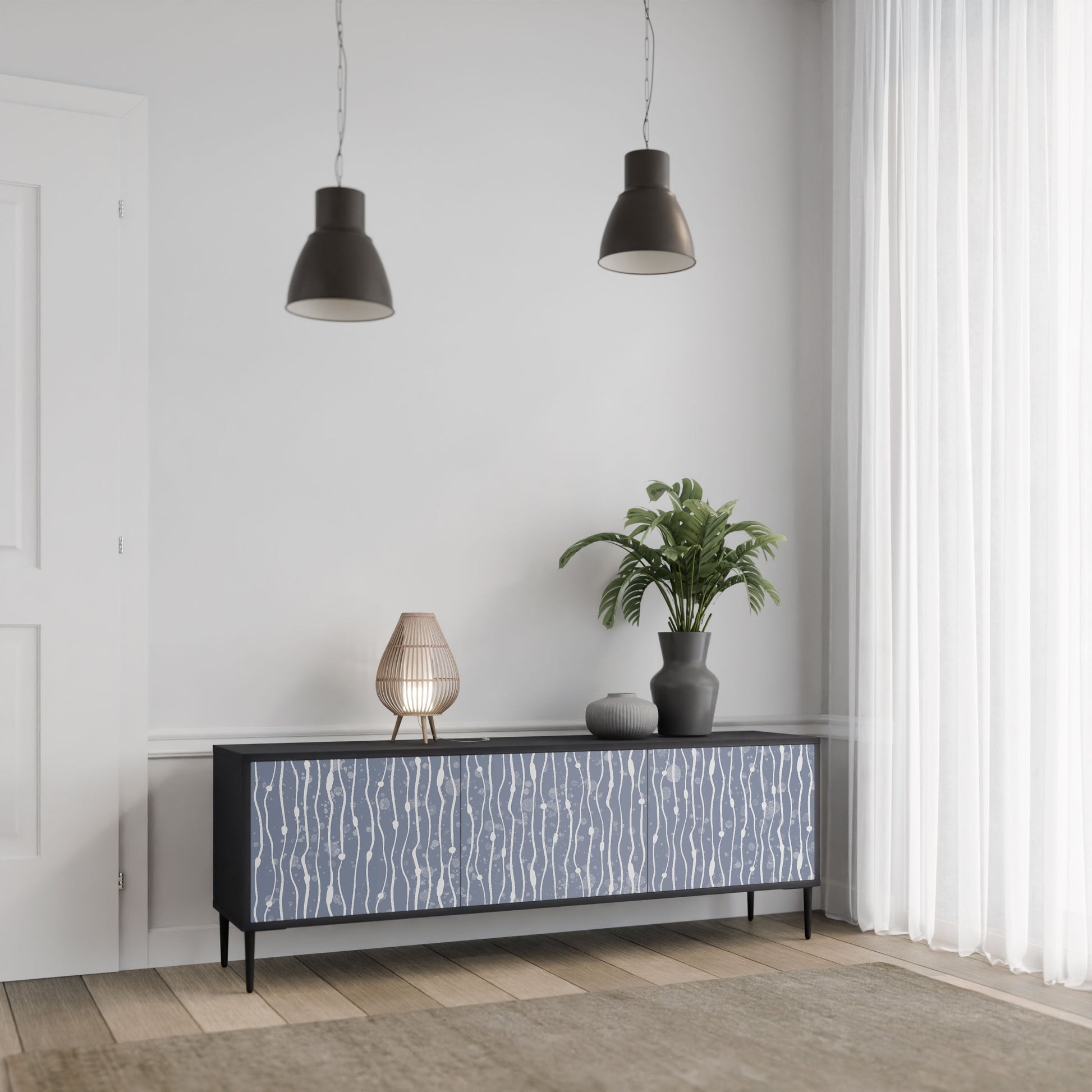The black body of the stand creates a bold, modern accent that pairs beautifully with industrial and minimalist arrangements. The fronts with a designer print add character and uniqueness, making this piece not only practical but also a standout decorative element.