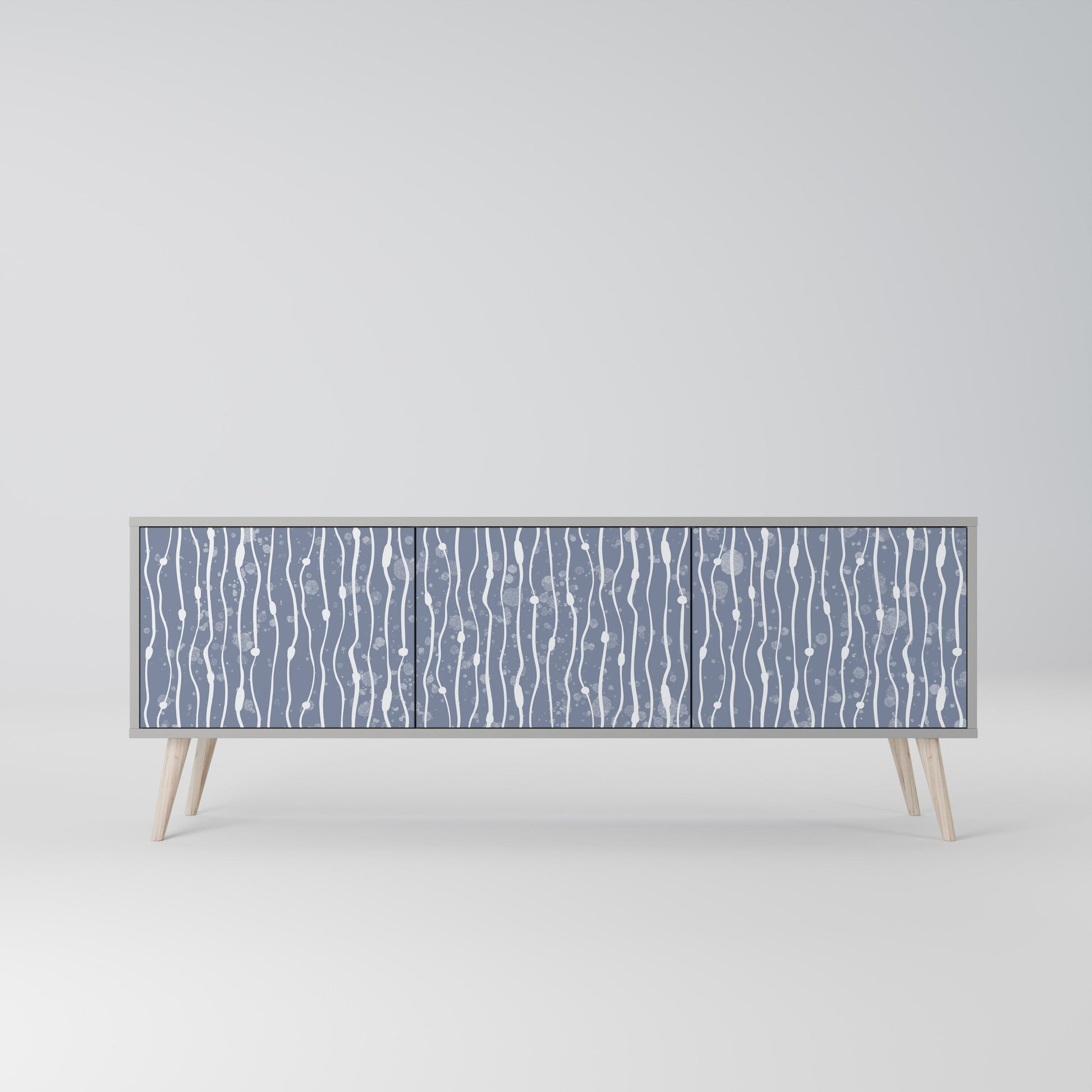 The grey body of the stand creates a refined, modern accent that pairs beautifully with industrial and minimalist arrangements. The fronts with a designer print add character and uniqueness, making this piece not only practical but also a standout decorative element.