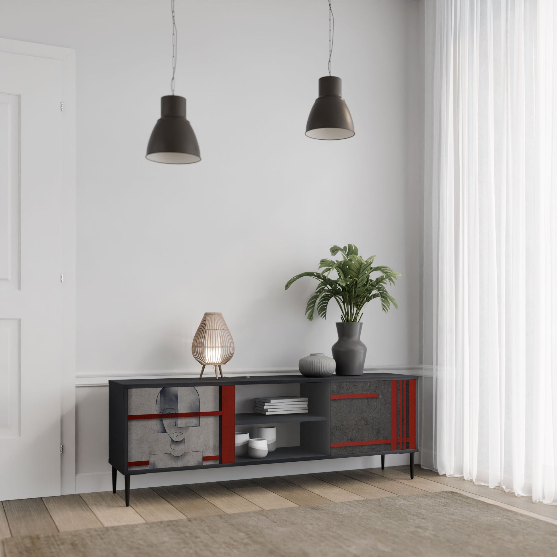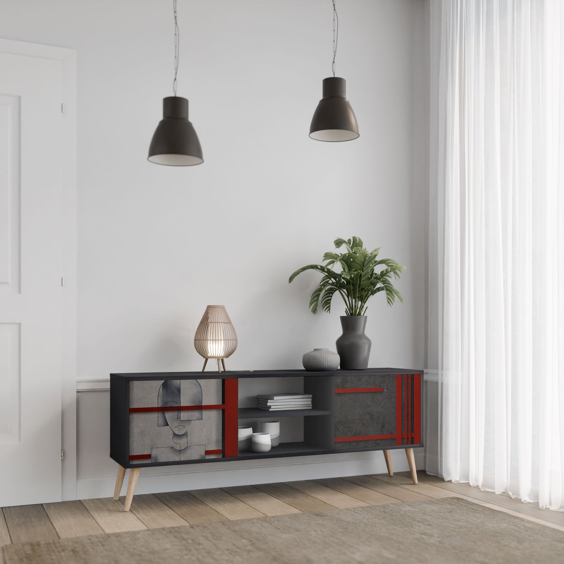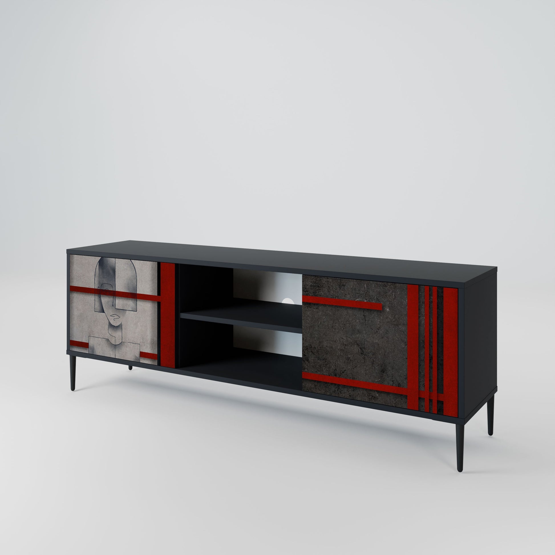 The black body gives the TV stand an elegant, modern look, while the fronts with an exceptional print draw attention, making it the focal point of any room. The spacious interior provides room for electronic devices, cables, remotes, and other accessories, helping you maintain order and organization.