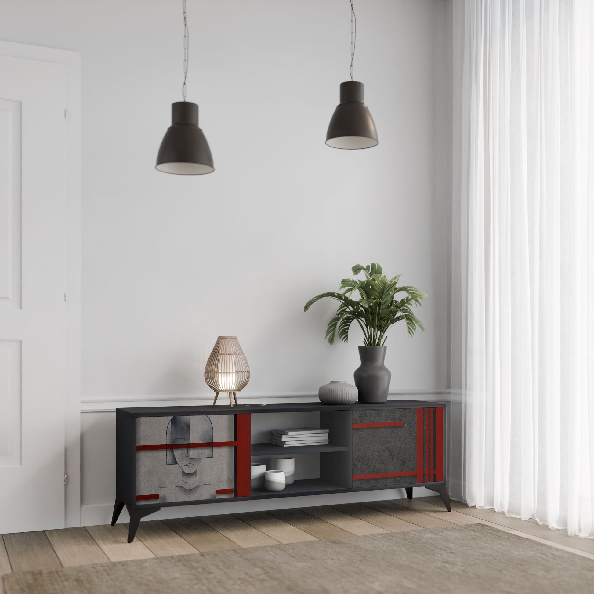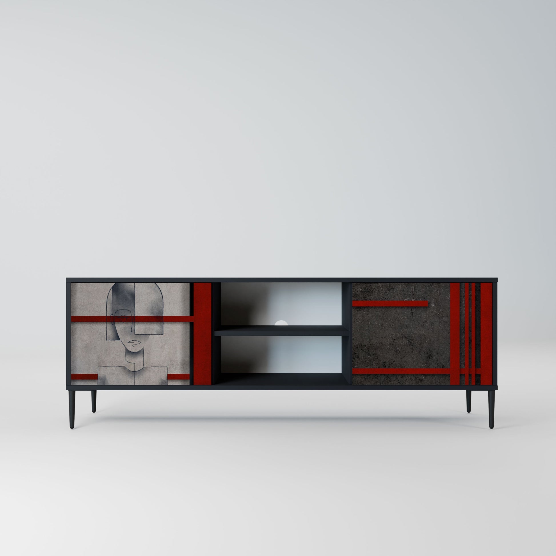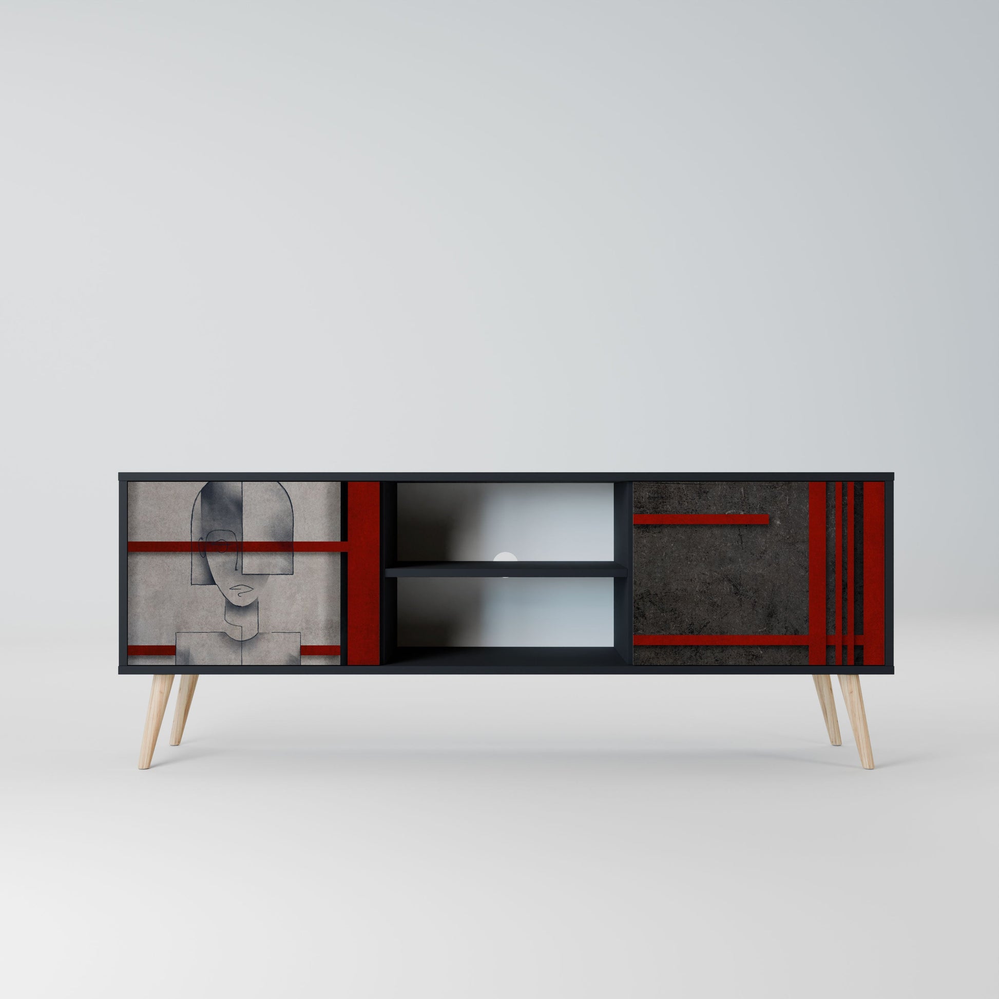 The black body gives the TV stand an elegant, modern look, while the fronts with an exceptional print draw attention, making it the focal point of any room. The spacious interior provides room for electronic devices, cables, remotes, and other accessories, helping you maintain order and organization.