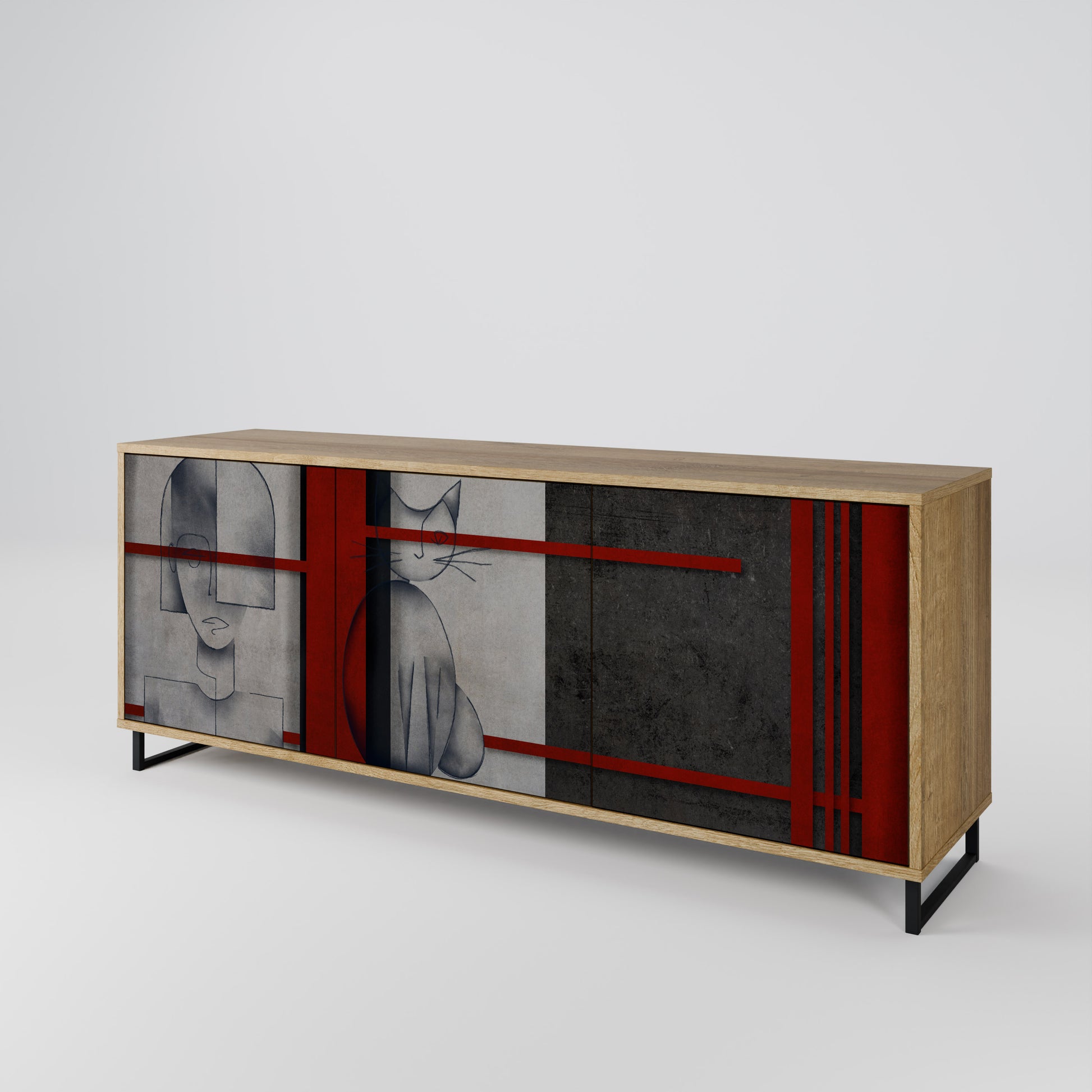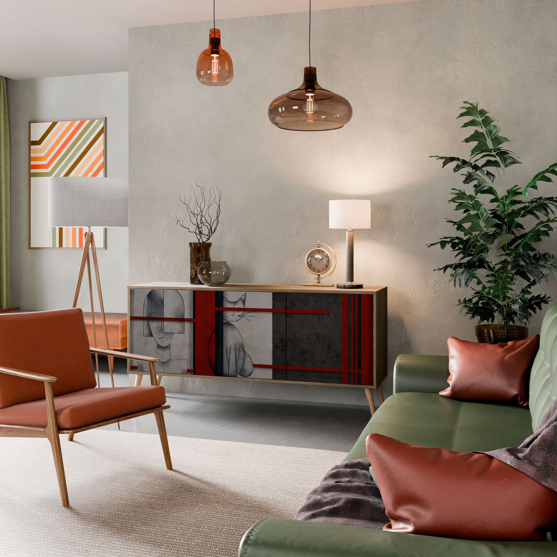Discover the elegance and natural beauty of wood with our 3-door sideboard in oak finish. This stylish piece combines the sturdiness of a wooden body with the aesthetic detail of printed front doors, creating a cohesive and attractive design. Perfect for both the living room and bedroom, this sideboard adds a touch of class and functionality to any interior.