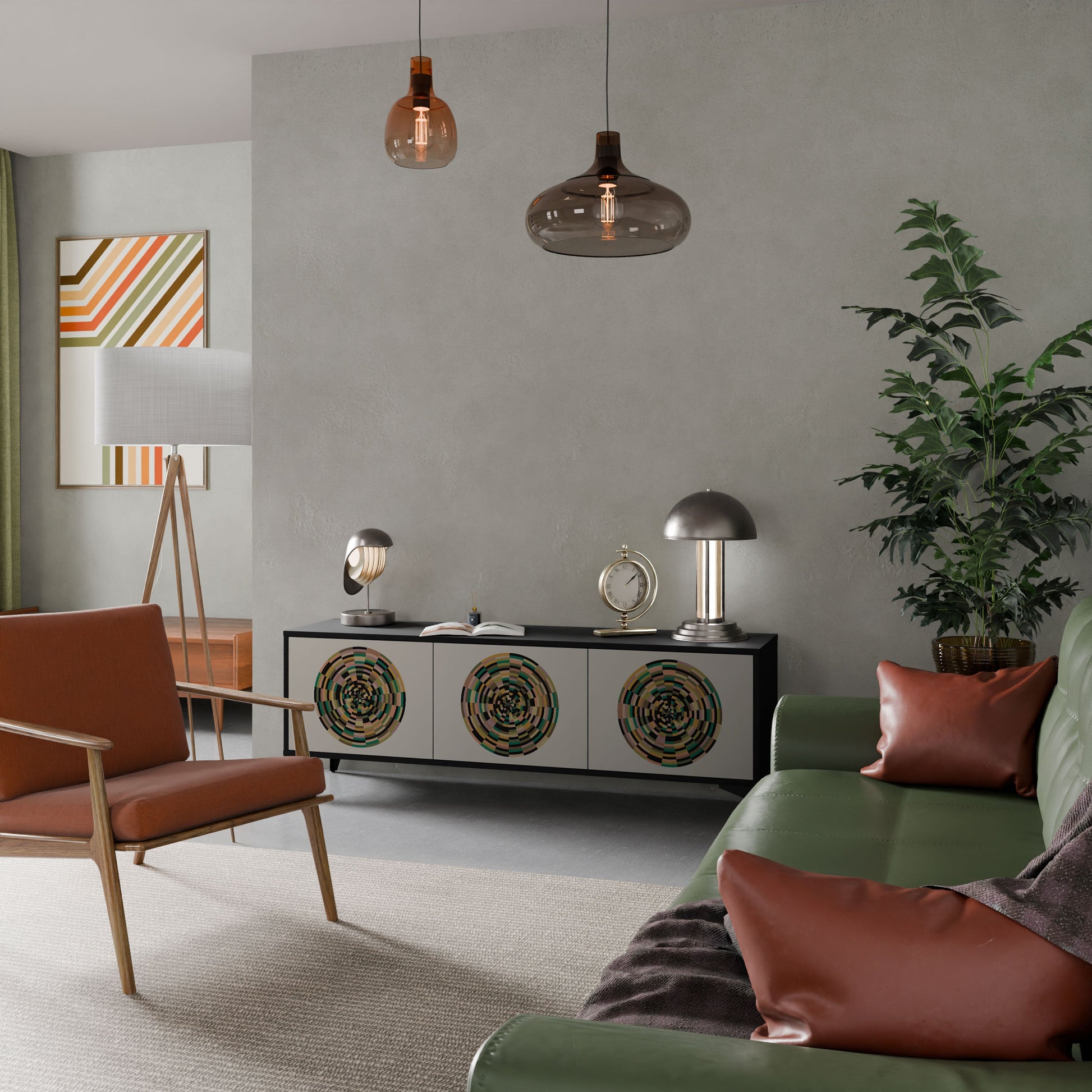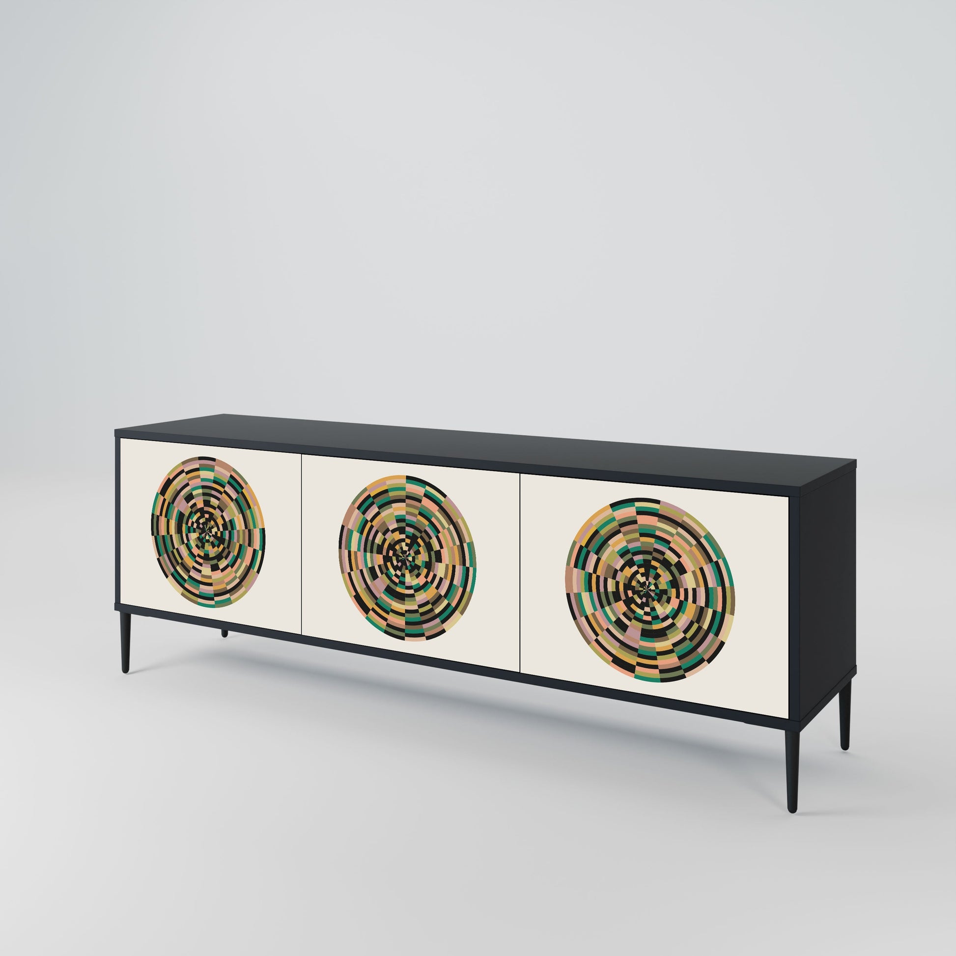 GREEN CIRCLES 3-Door TV Stand in Black Finish