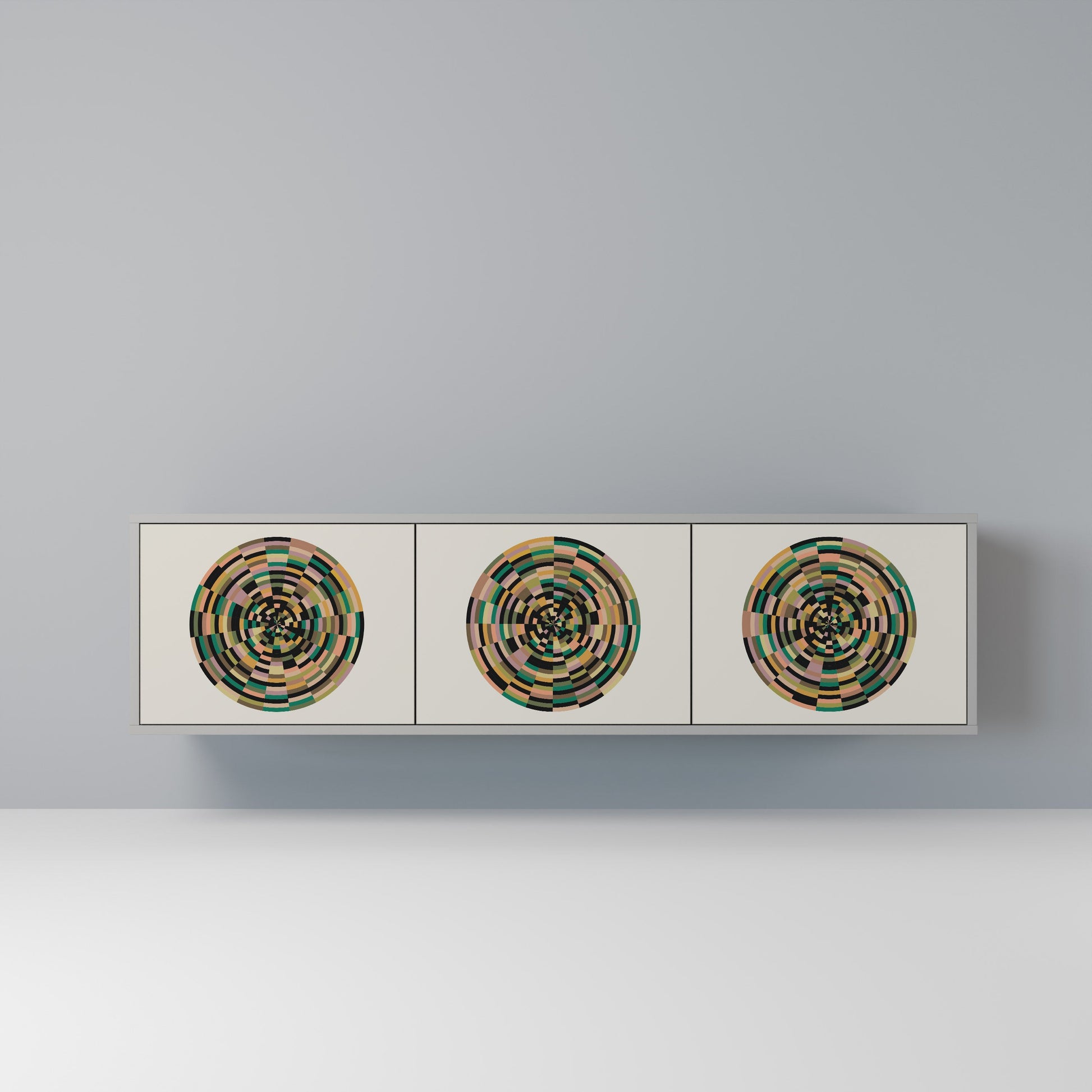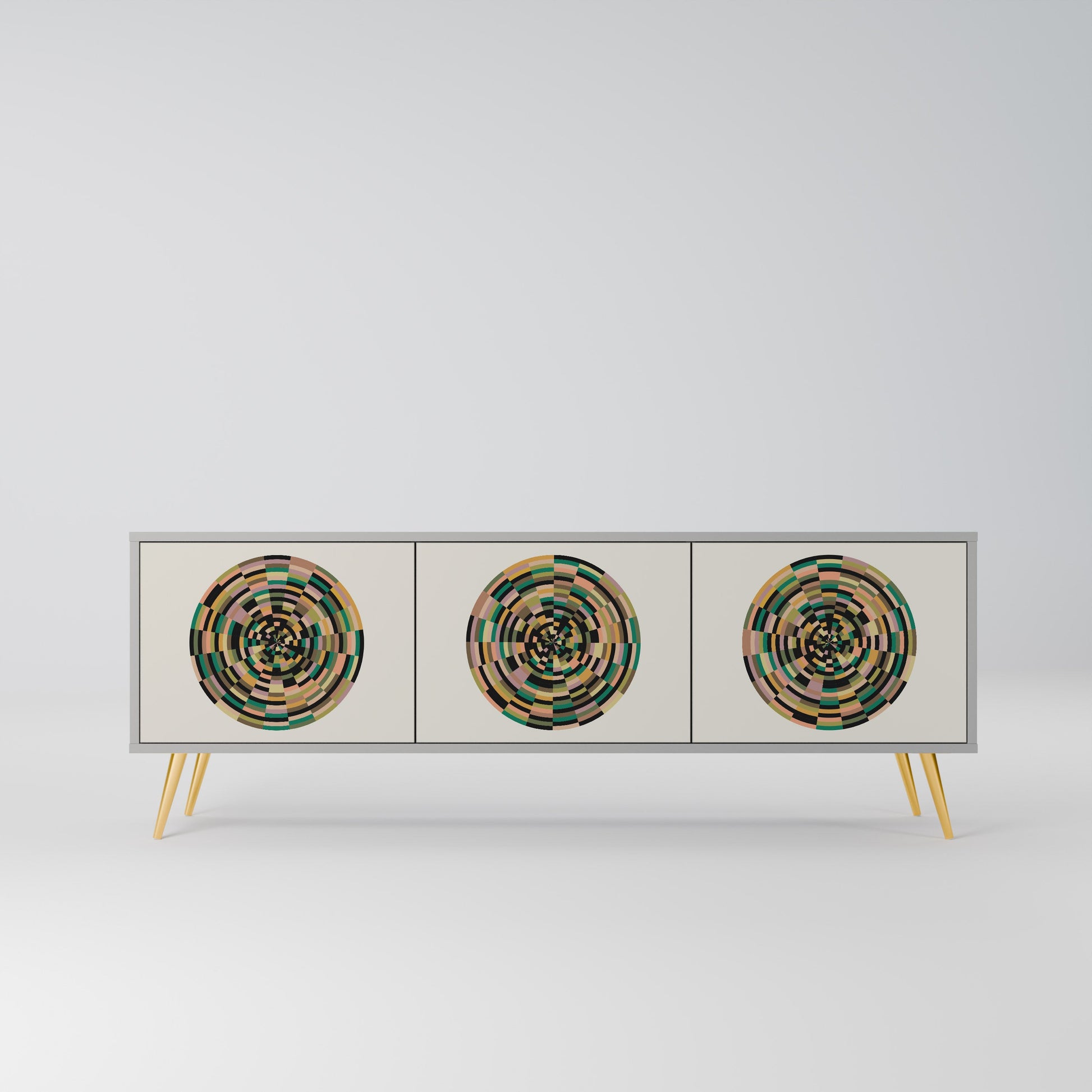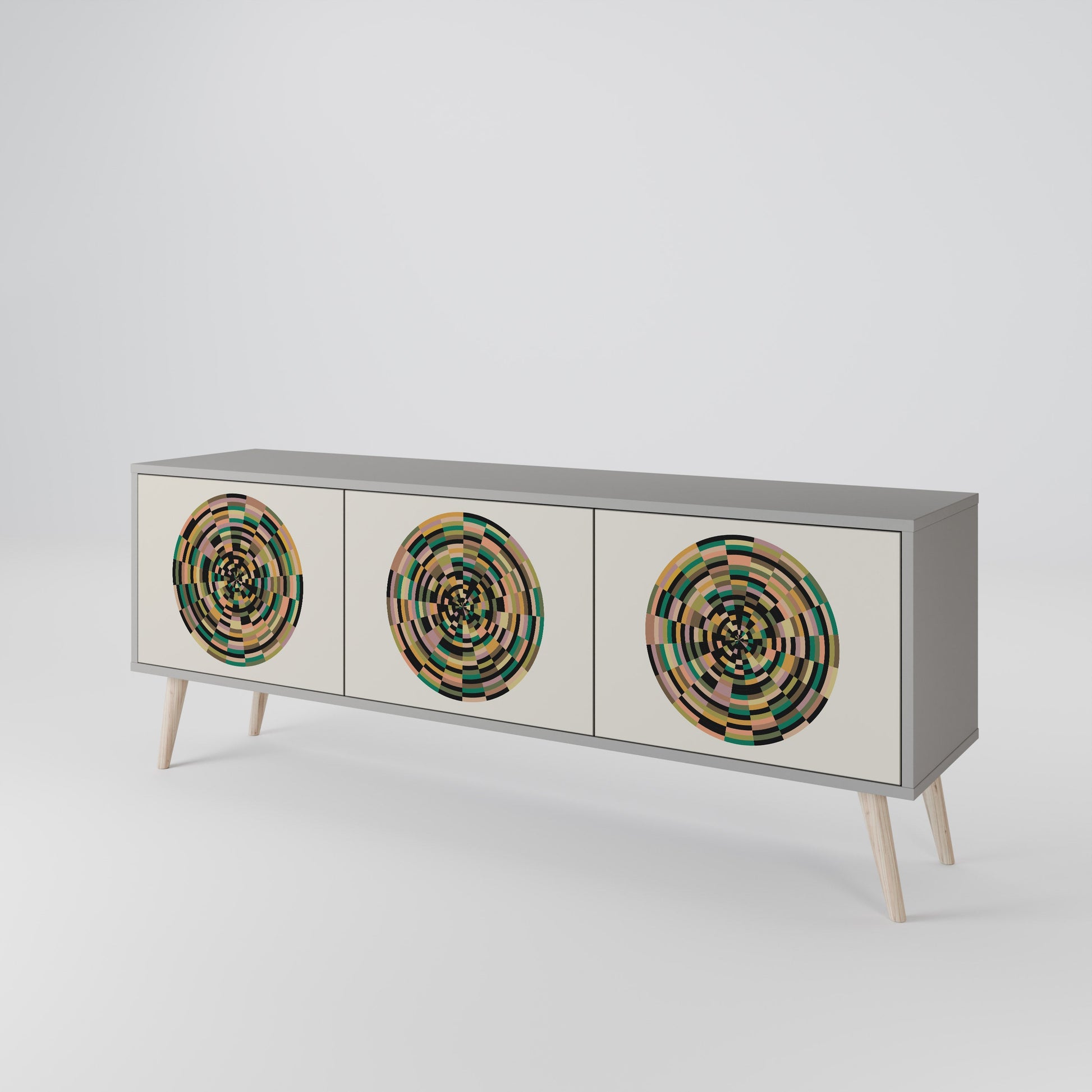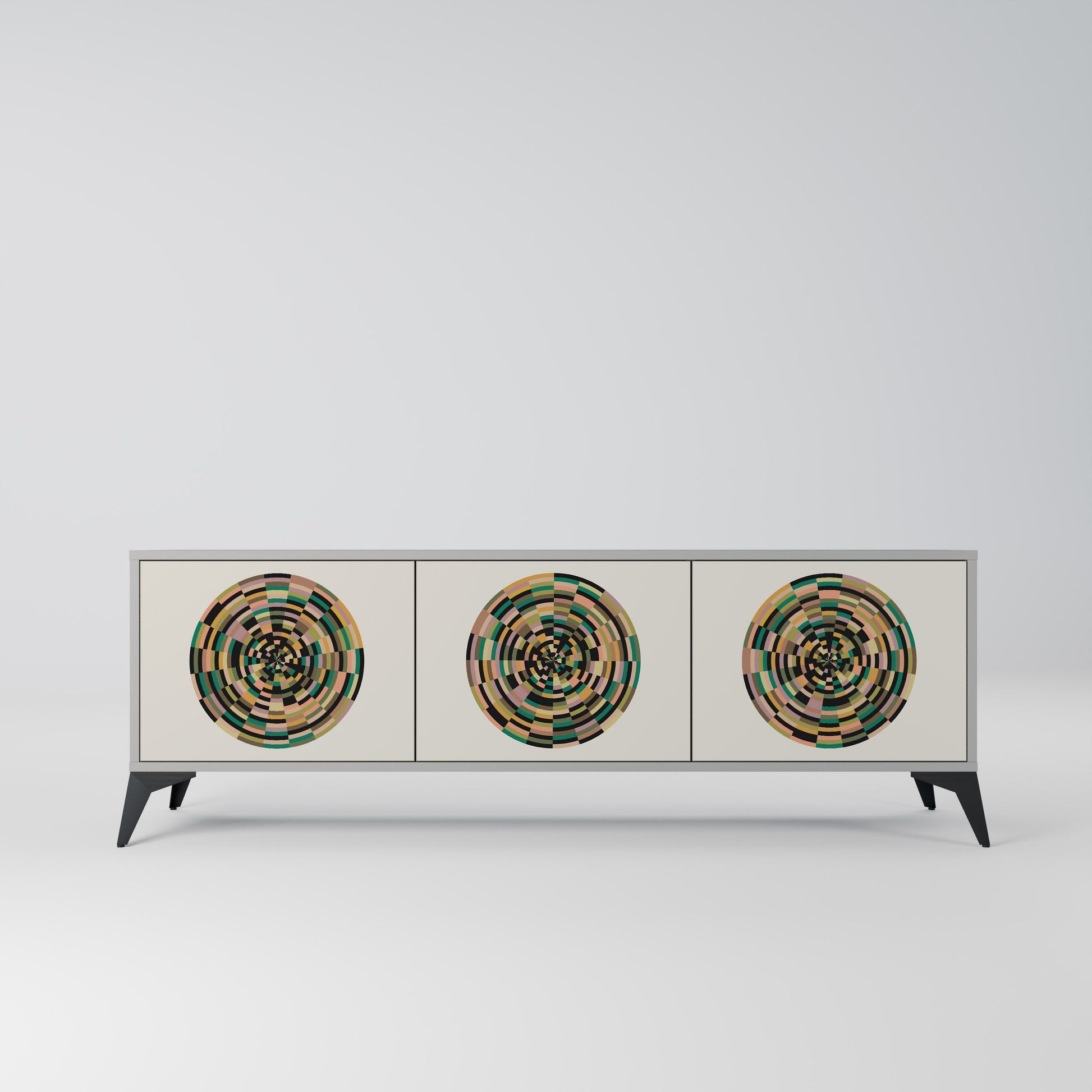 GREEN CIRCLES 3-Door TV Stand in Grey Finish