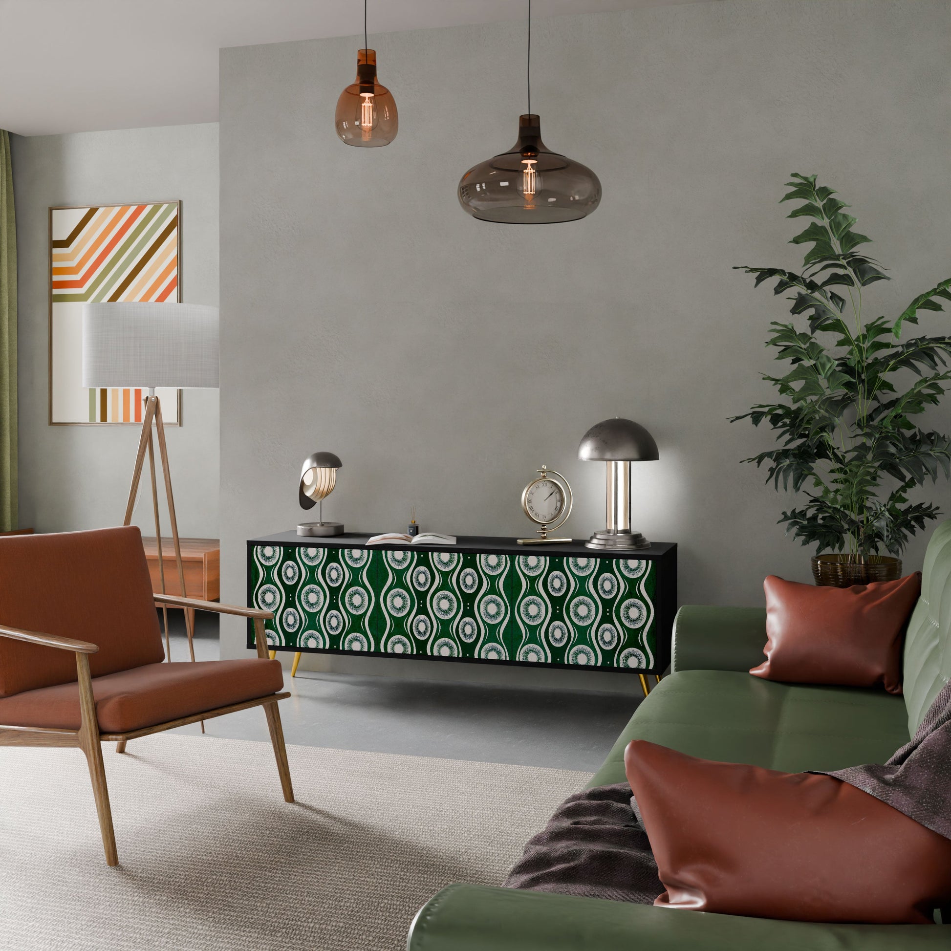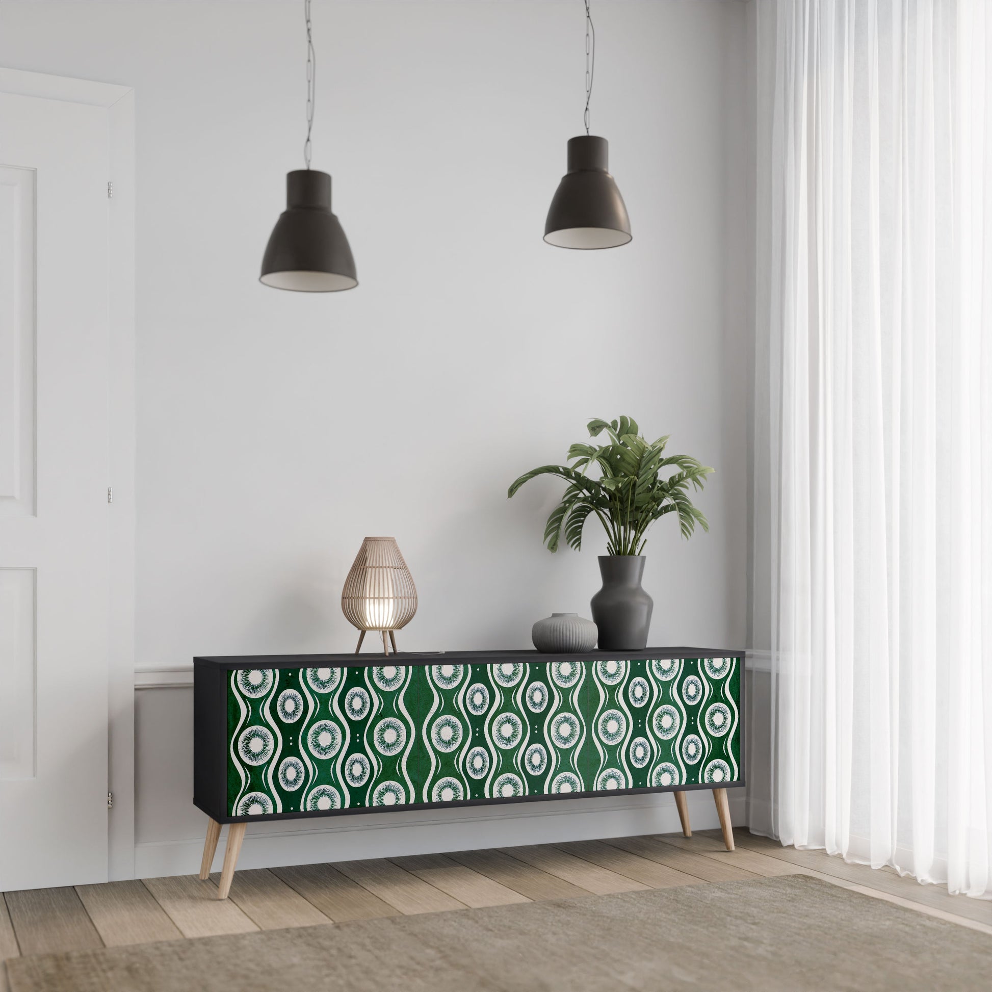 The black body of the stand creates a bold, modern accent that pairs beautifully with industrial and minimalist arrangements. The fronts with a designer print add character and uniqueness, making this piece not only practical but also a standout decorative element.