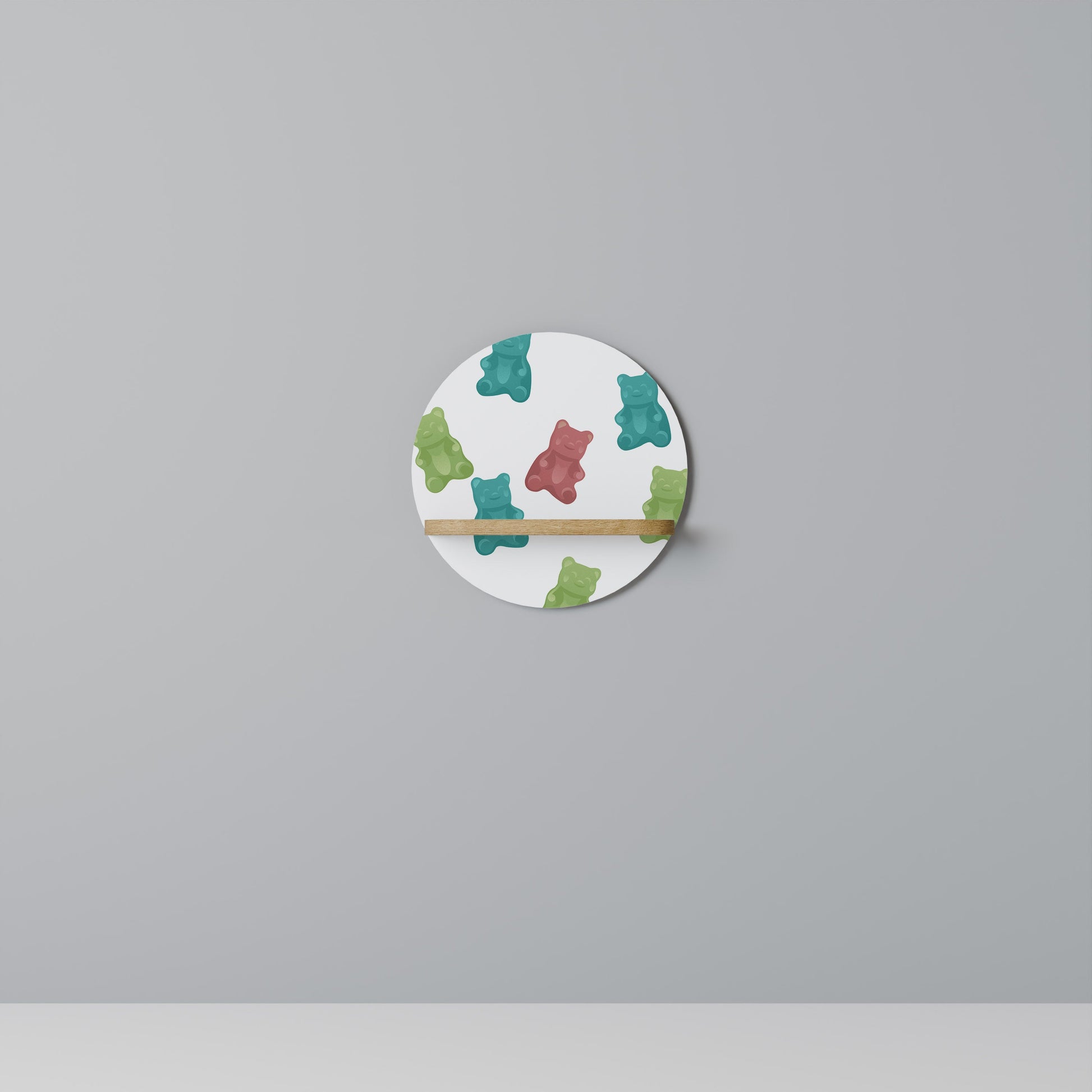 GUMMY BEARS Round Art Shelf In Oak Effect