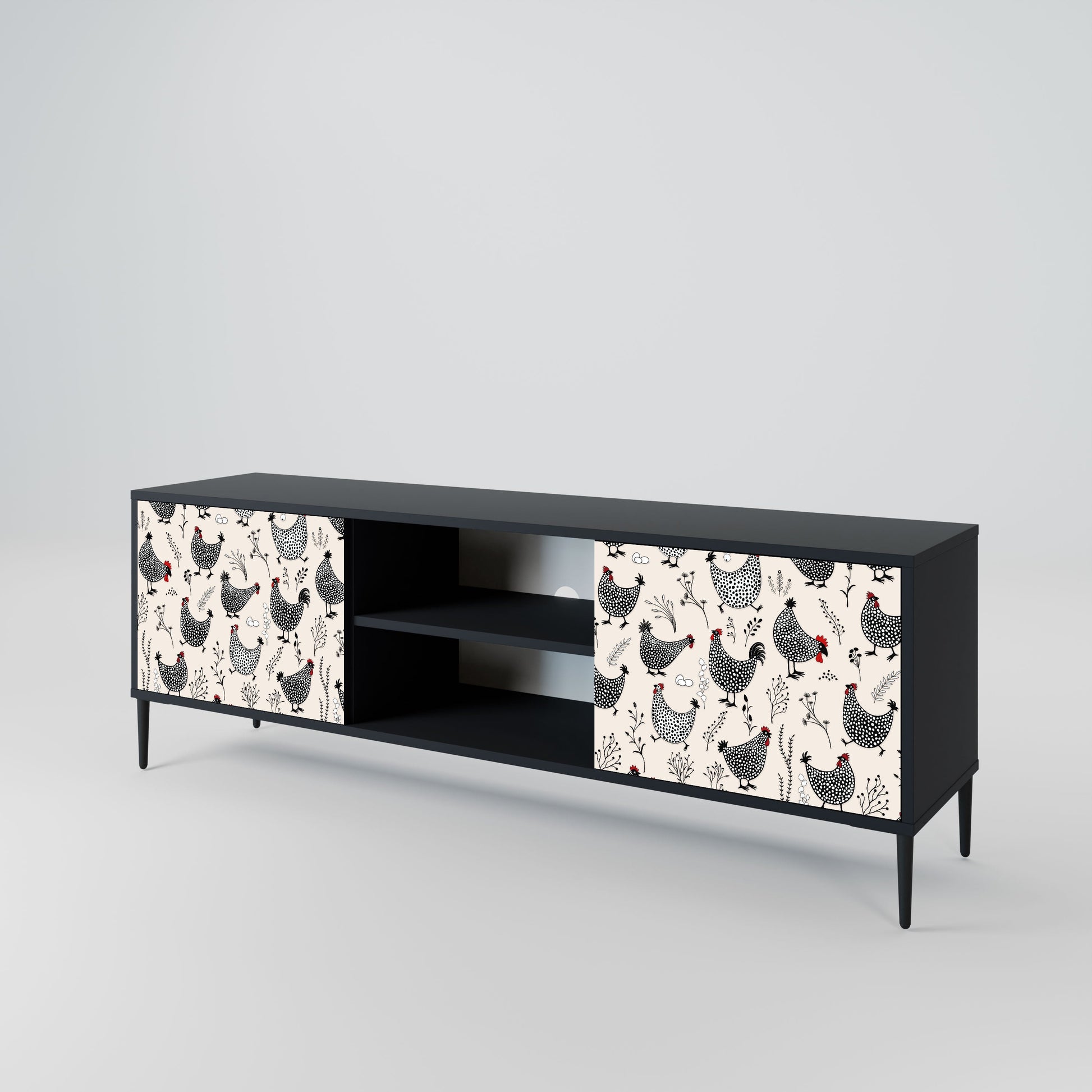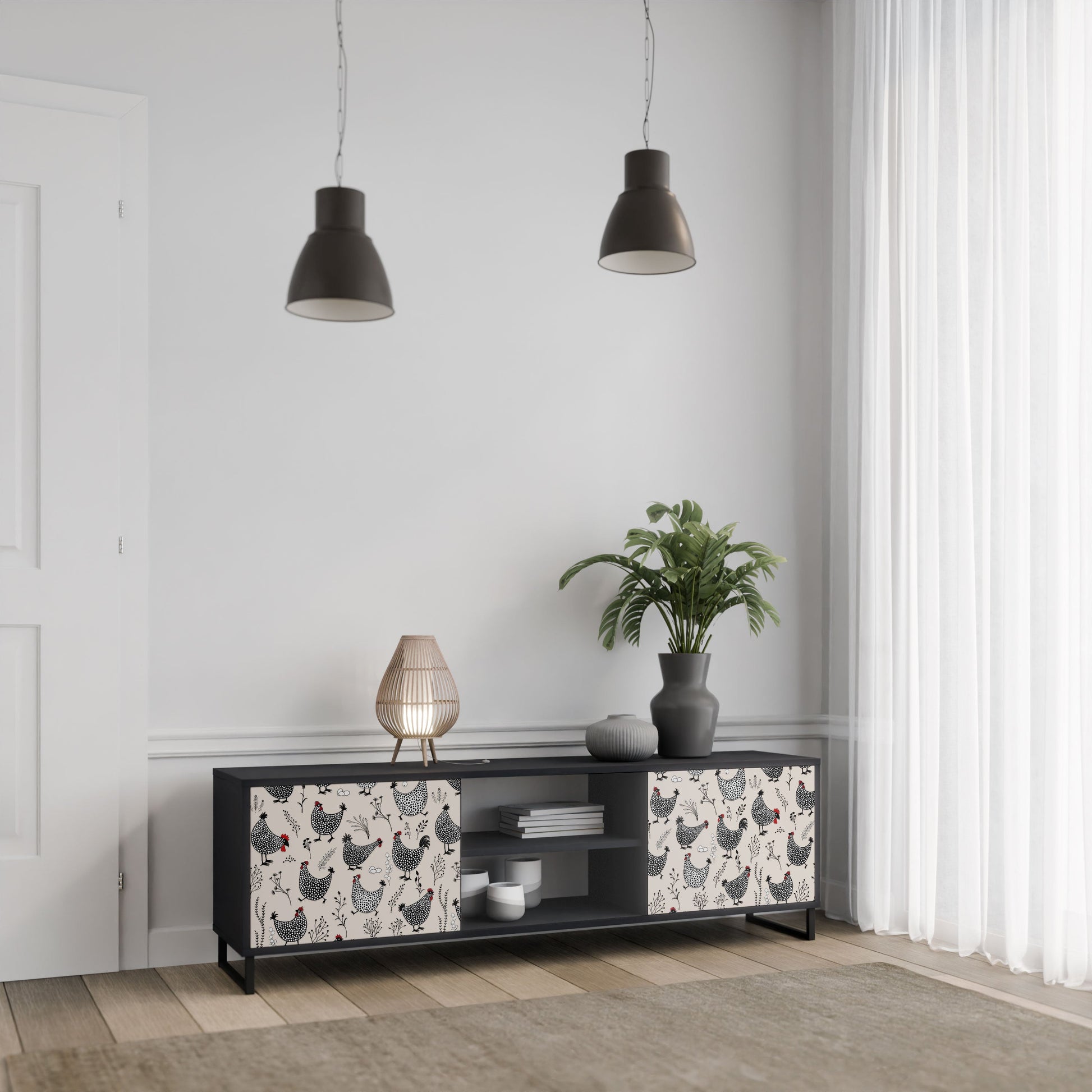The black body gives the TV stand an elegant, modern look, while the fronts with an exceptional print draw attention, making it the focal point of any room. The spacious interior provides room for electronic devices, cables, remotes, and other accessories, helping you maintain order and organization.
