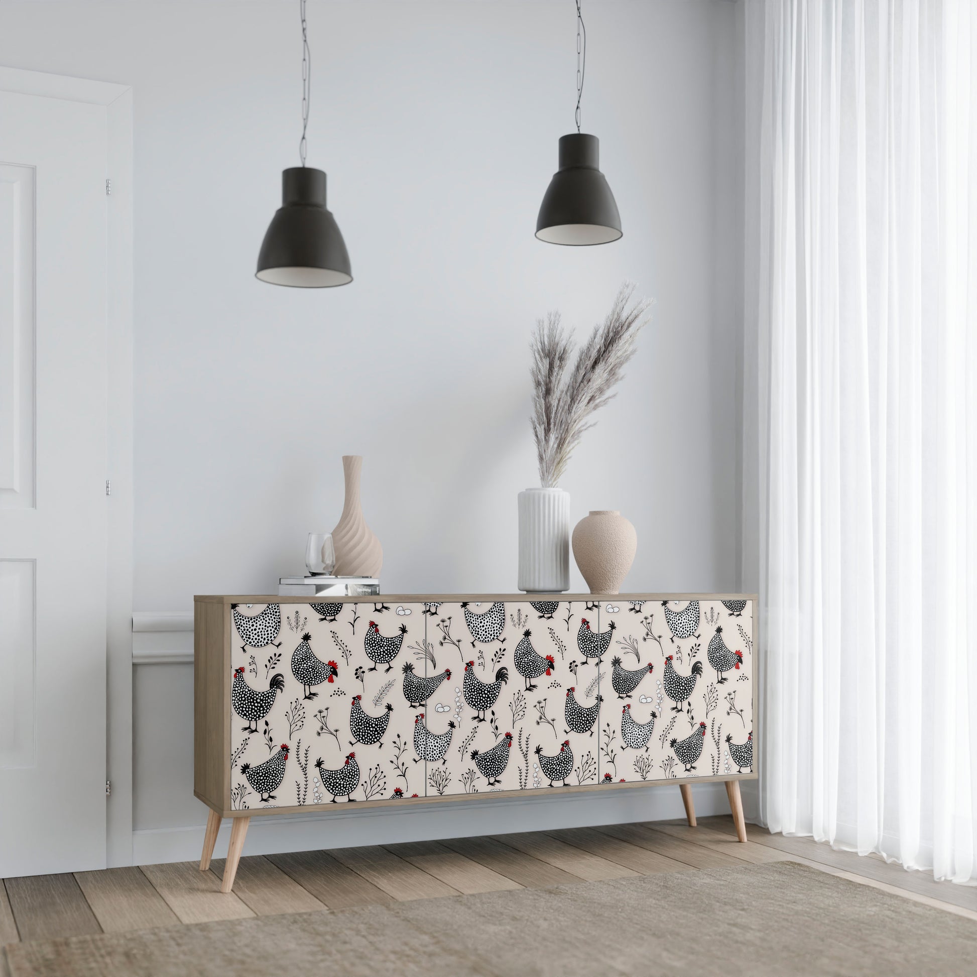 HAPPY HENS 3-Door Sideboard in Oak Effect