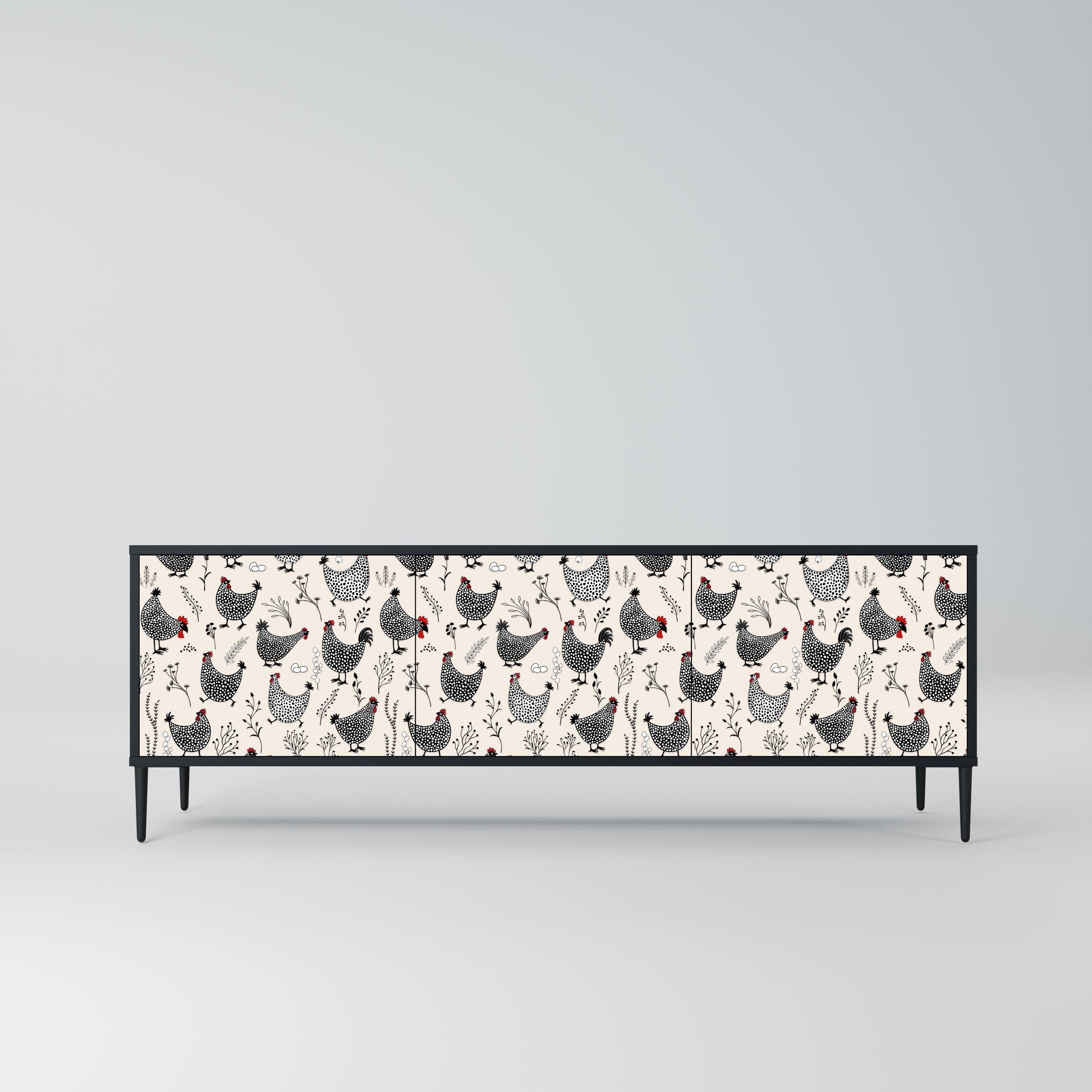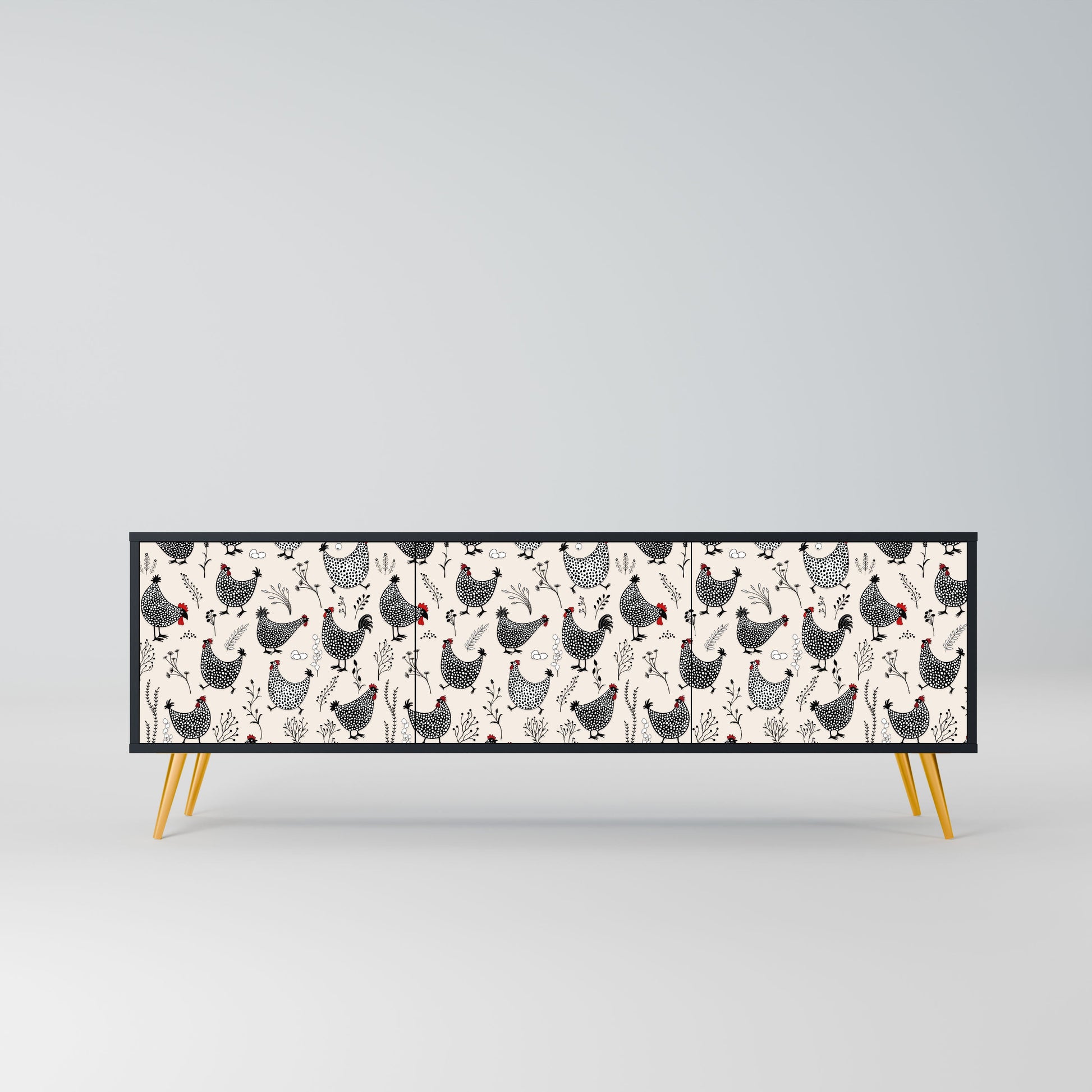 HAPPY HENS 3-Door TV Stand in Black Finish