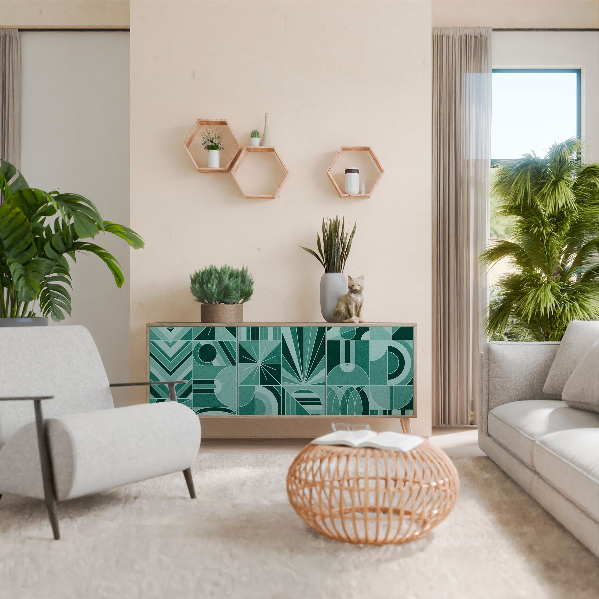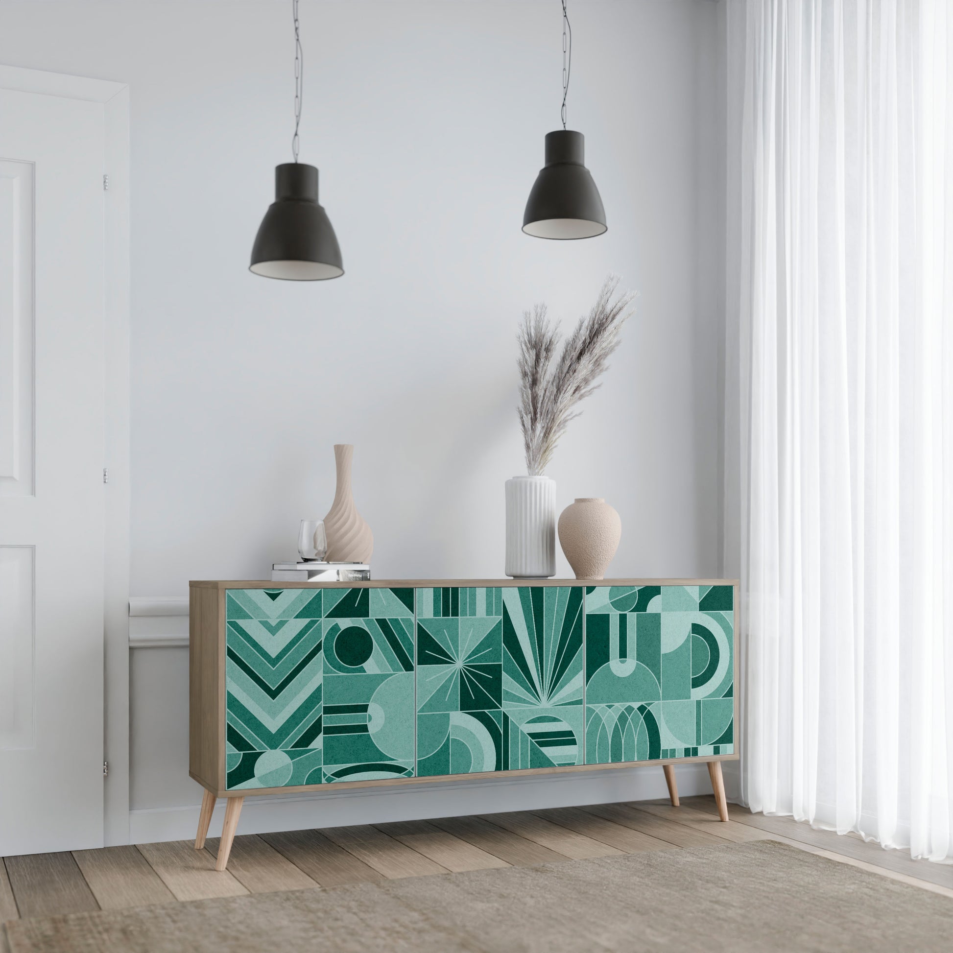 HARMONIC GRID 3-Door Sideboard in Oak Effect