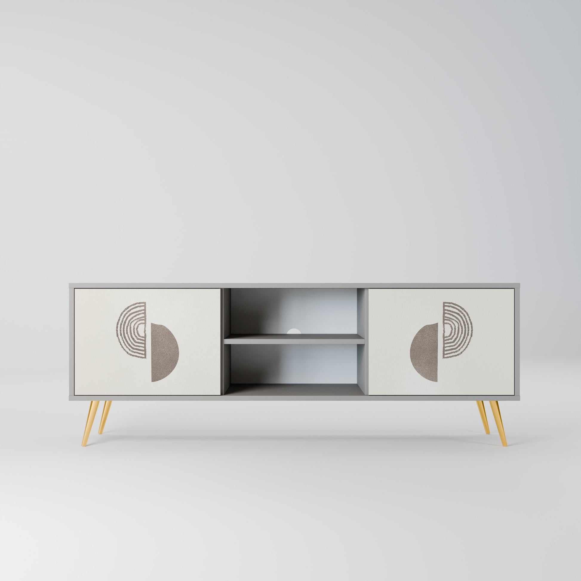 The grey body lends the TV stand a contemporary, refined look, while the fronts with an exceptional print capture attention, becoming the focal point of any room. The spacious interior provides room for electronic devices, cables, remotes, and other accessories, helping you maintain order and organization.