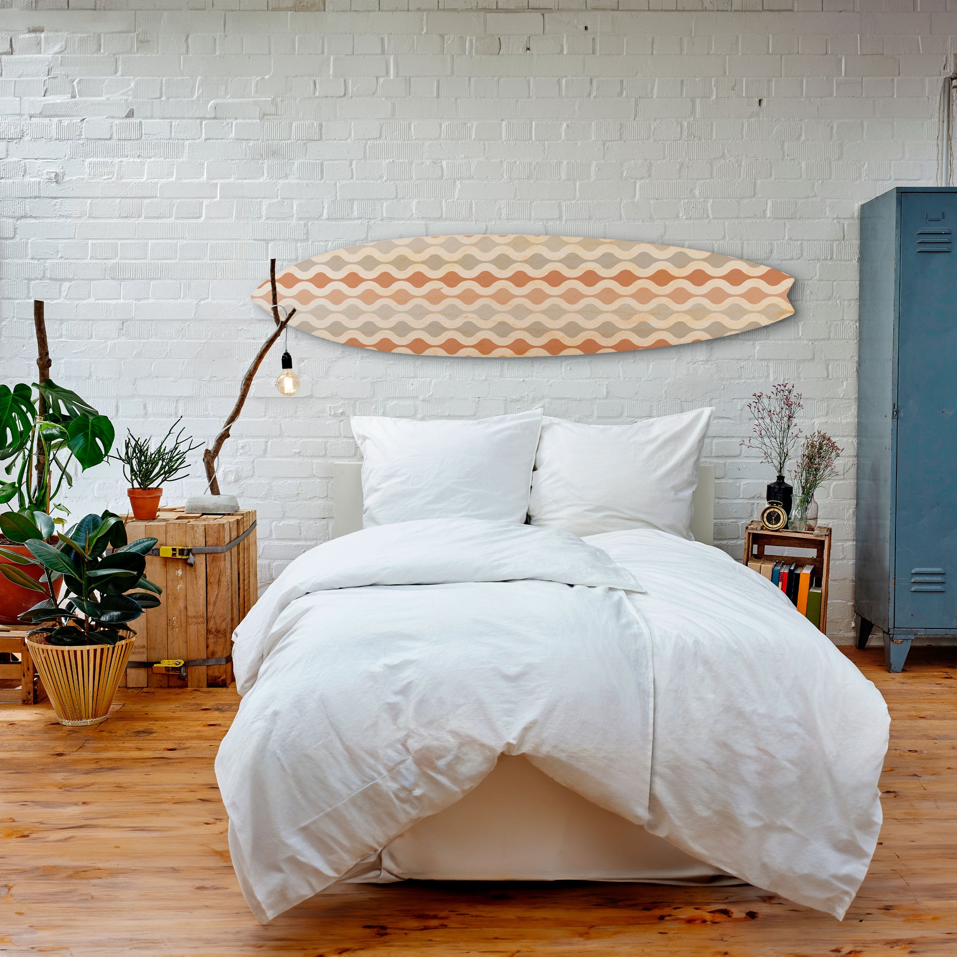 The modern print gives the surfboard a bold yet elegant look, while the subtle matte finish enhances its decorative quality. This surfboard is an excellent choice for living rooms, bedrooms, hallways, offices, and commercial spaces, where it draws attention and adds an individual, stylish touch to the interior.