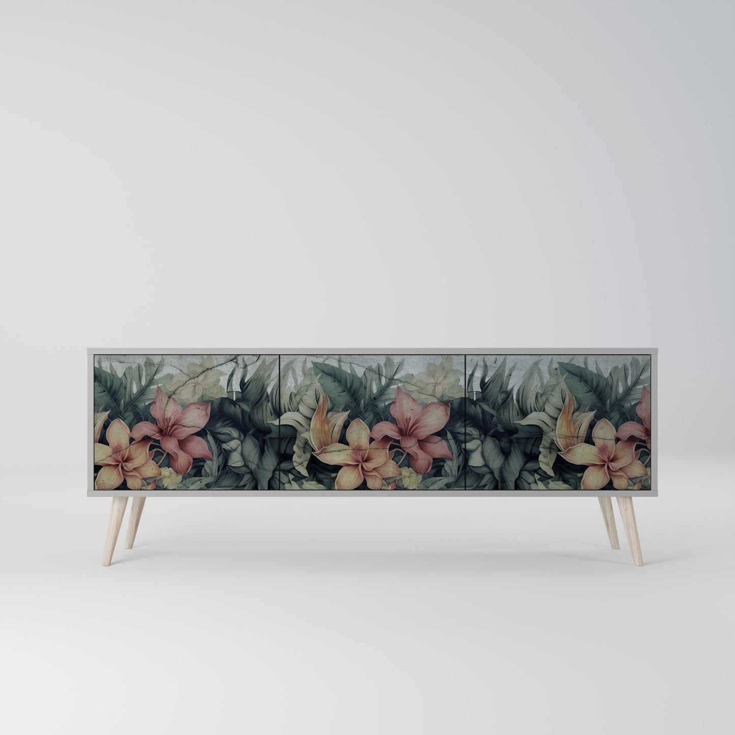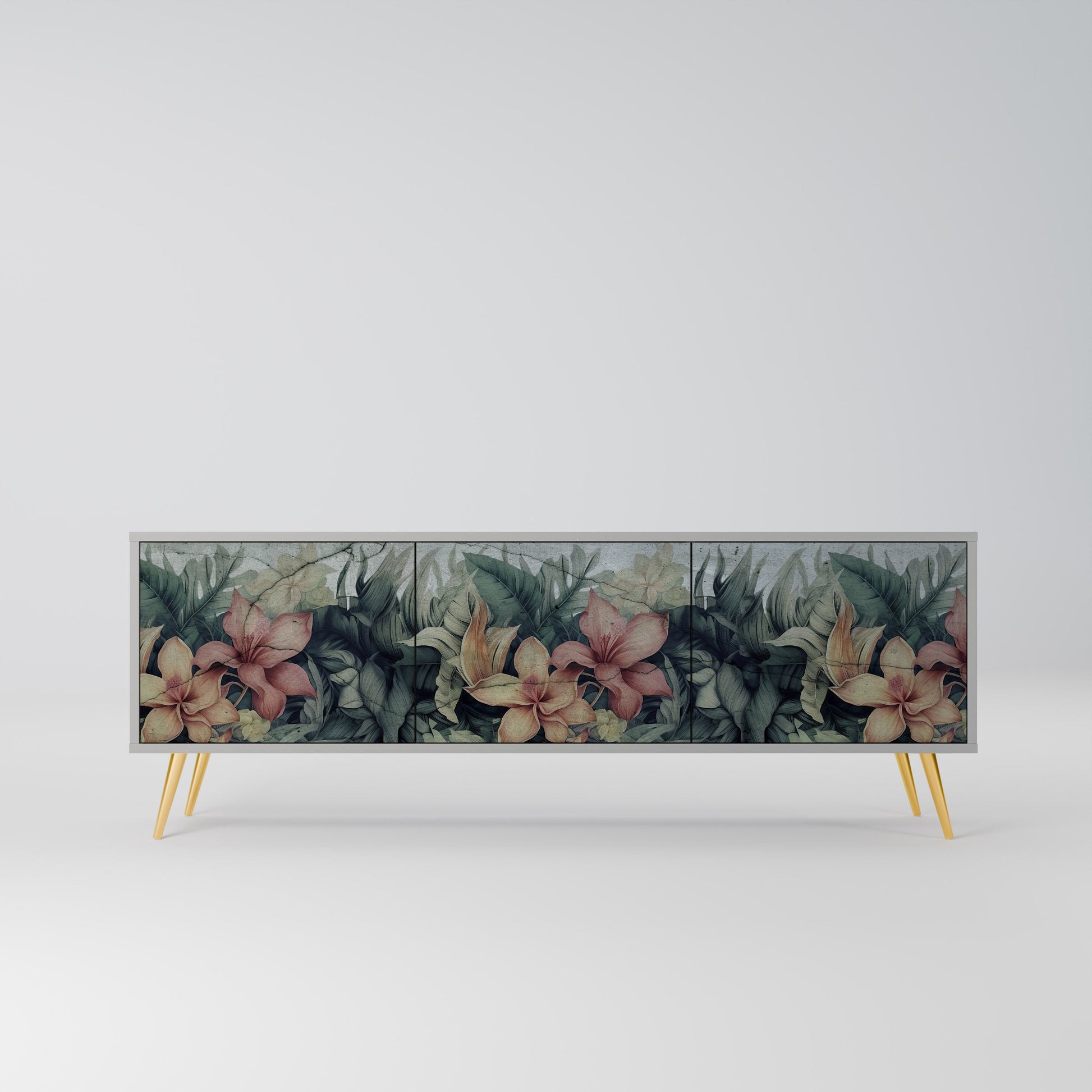 HEAVENLY BLOOM 3-Door TV Stand in Grey Finish