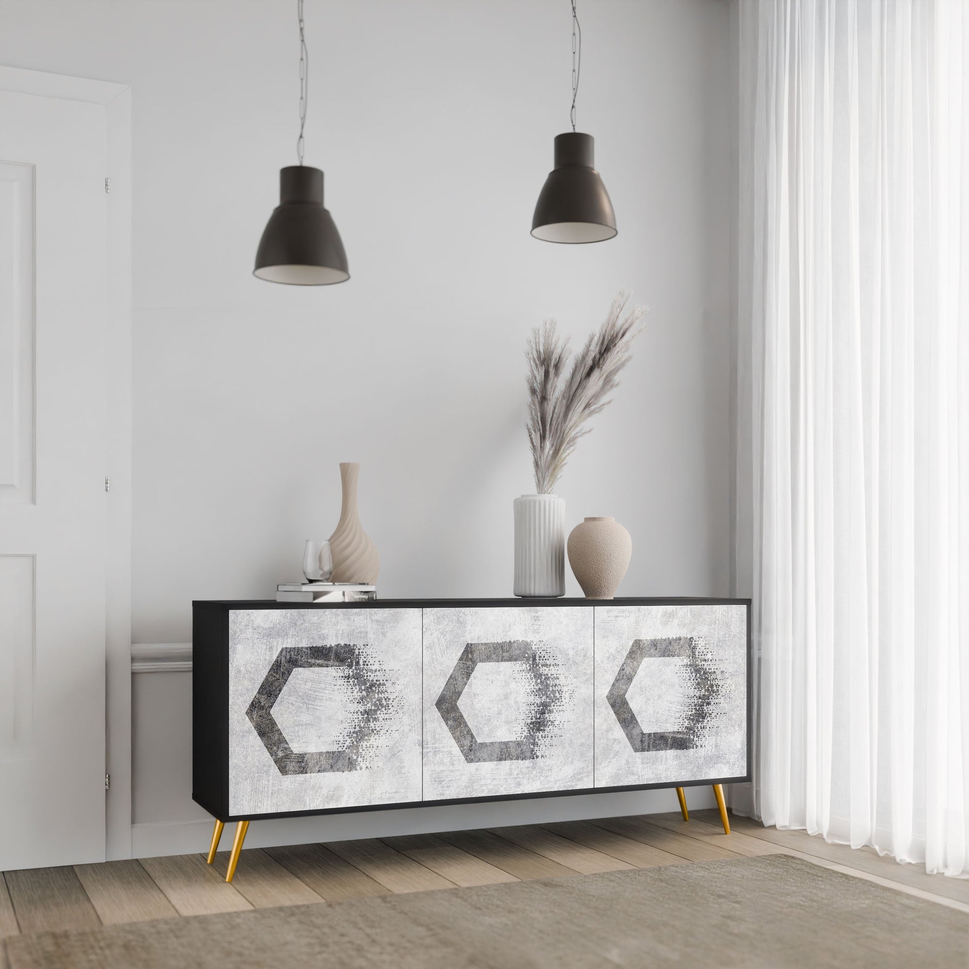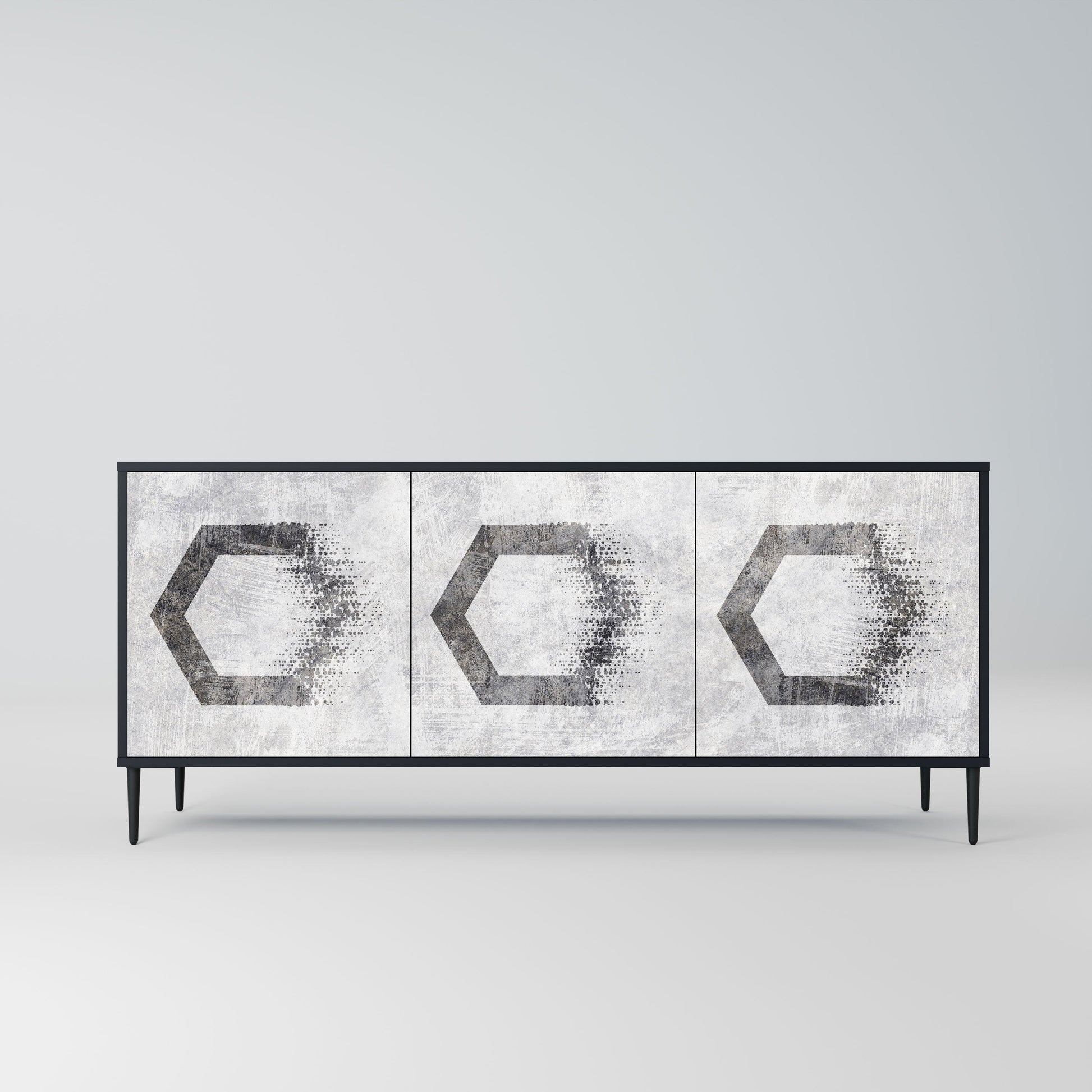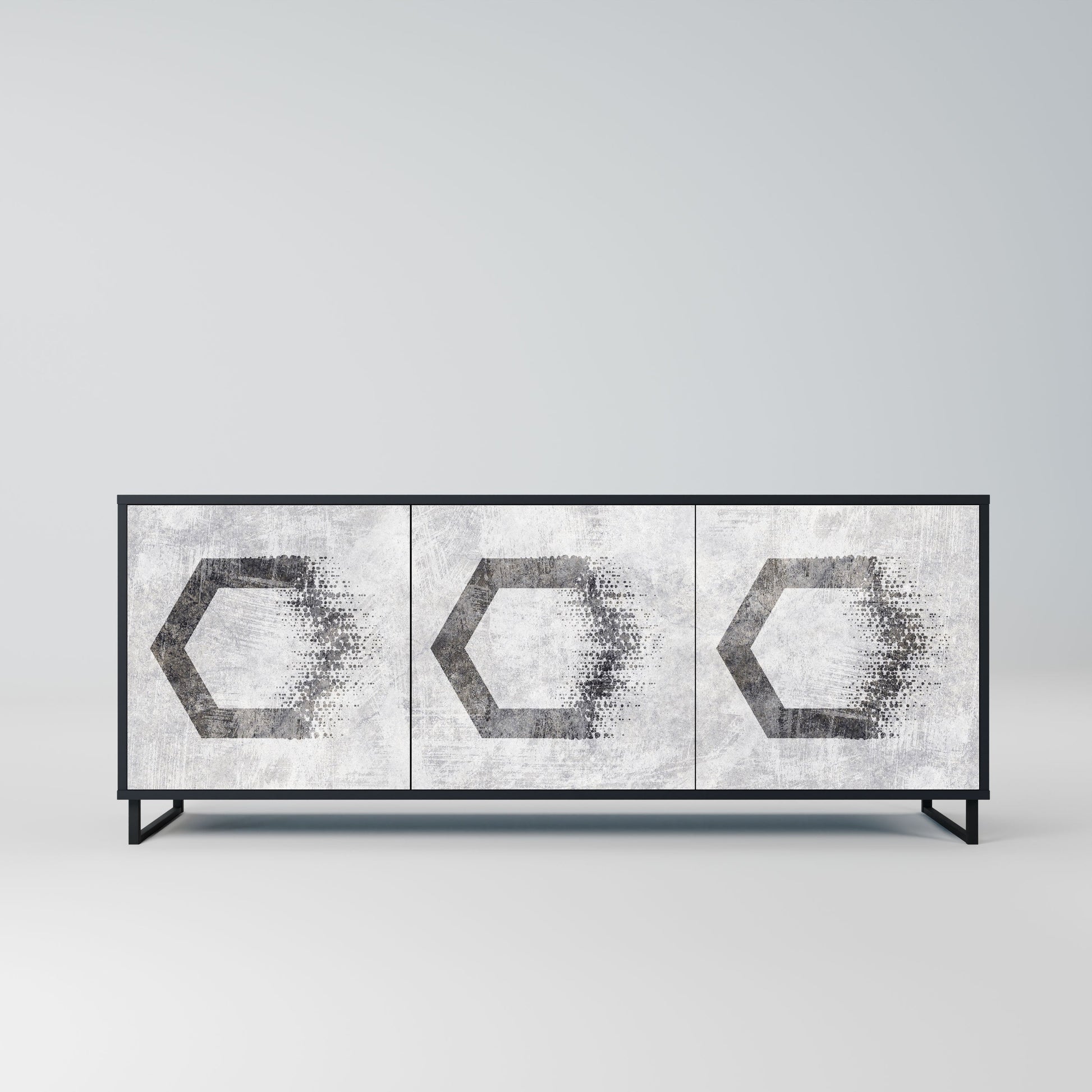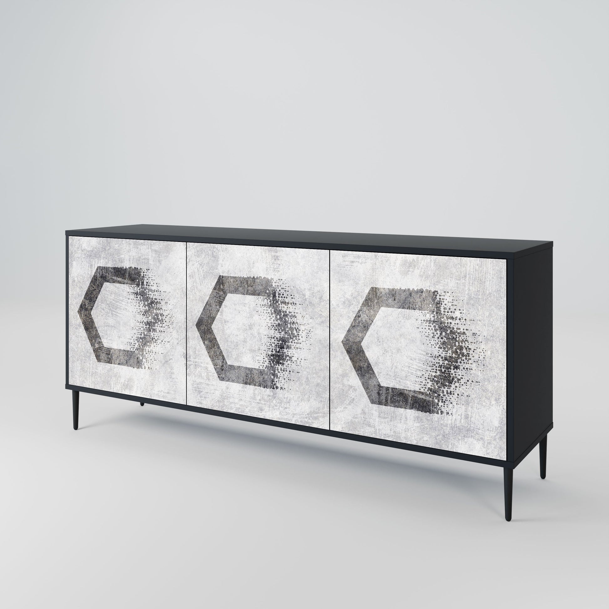 HEXAGONAL FIGURES 3-Door Sideboard in Black Finish