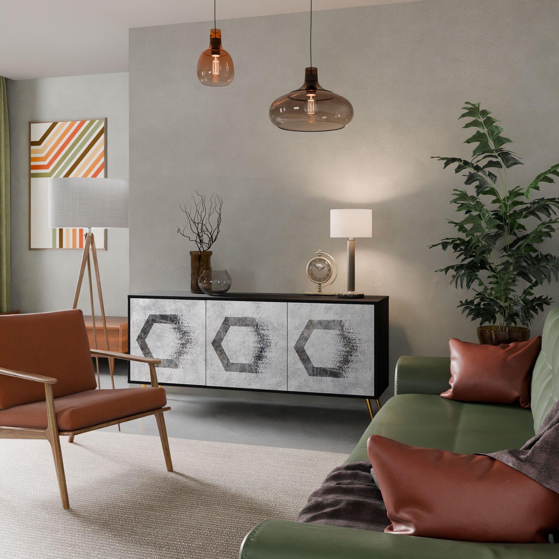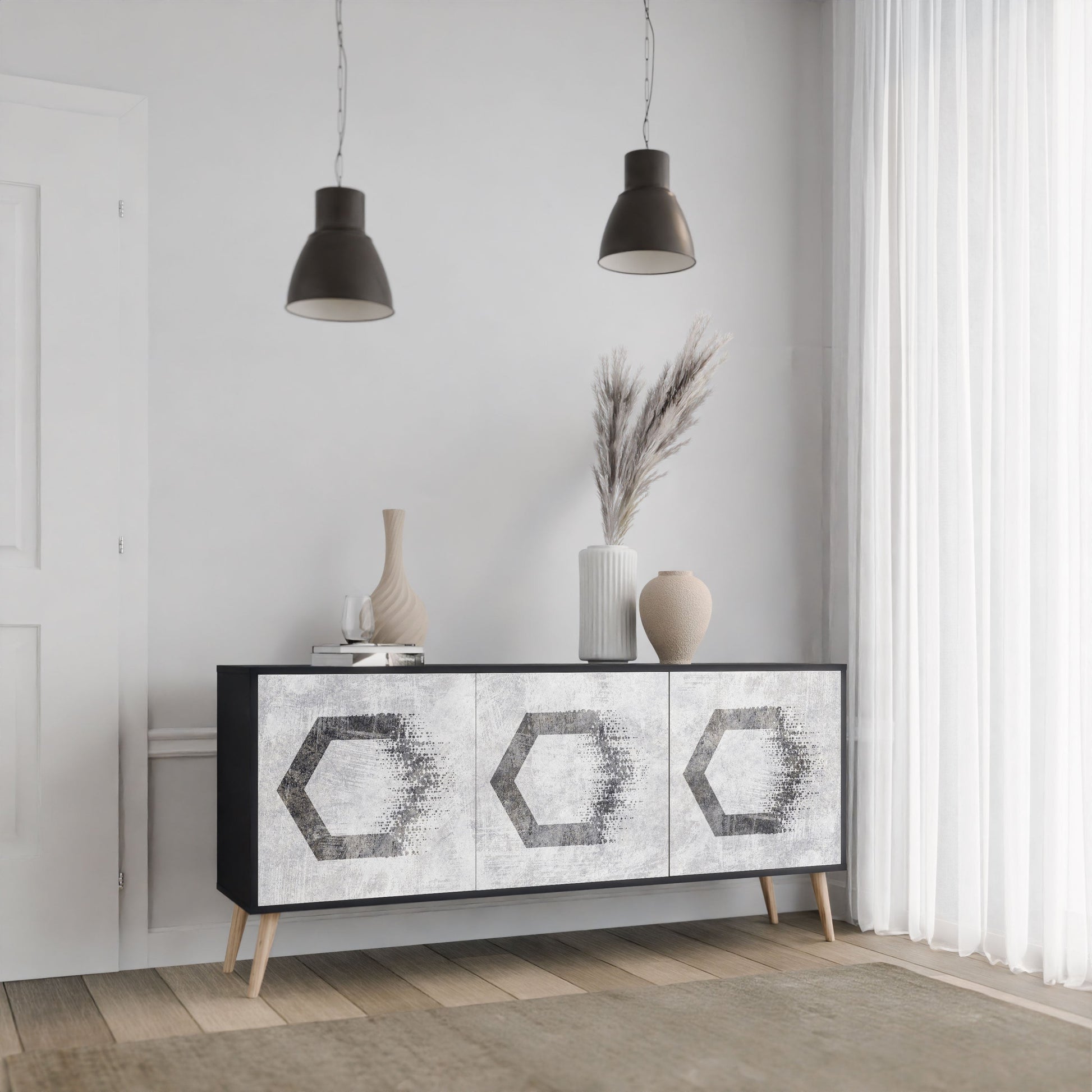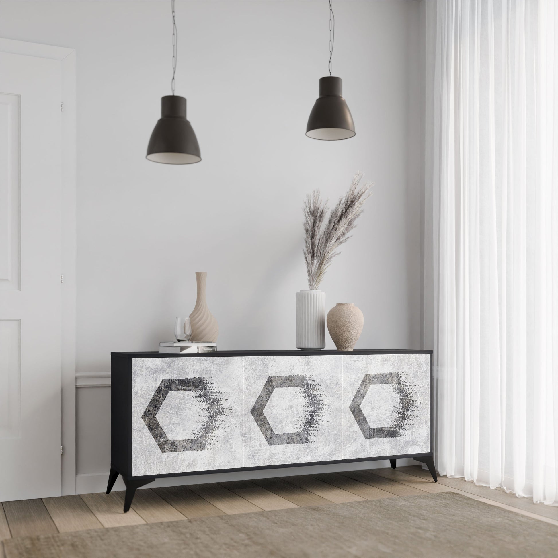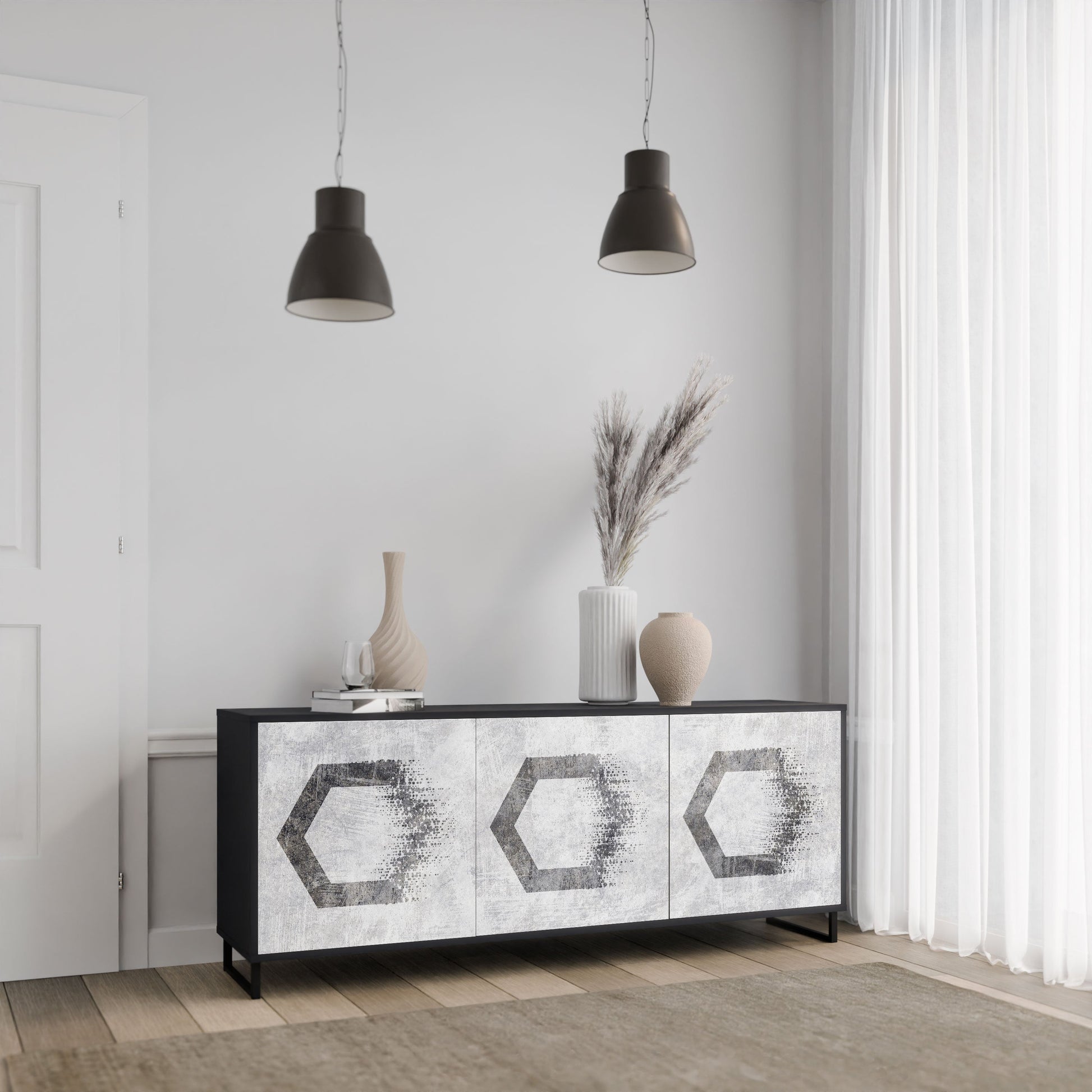 HEXAGONAL FIGURES 3-Door Sideboard in Black Finish