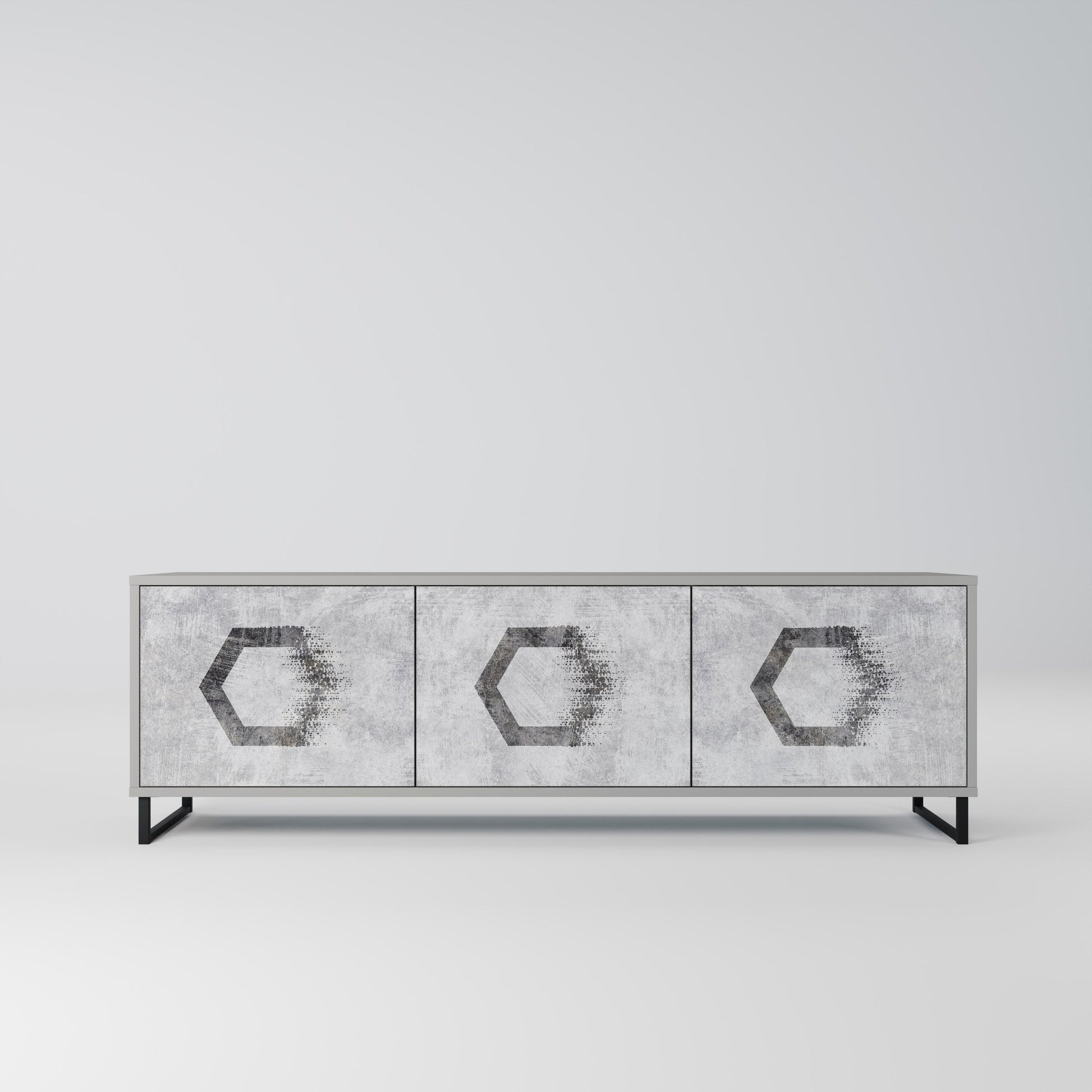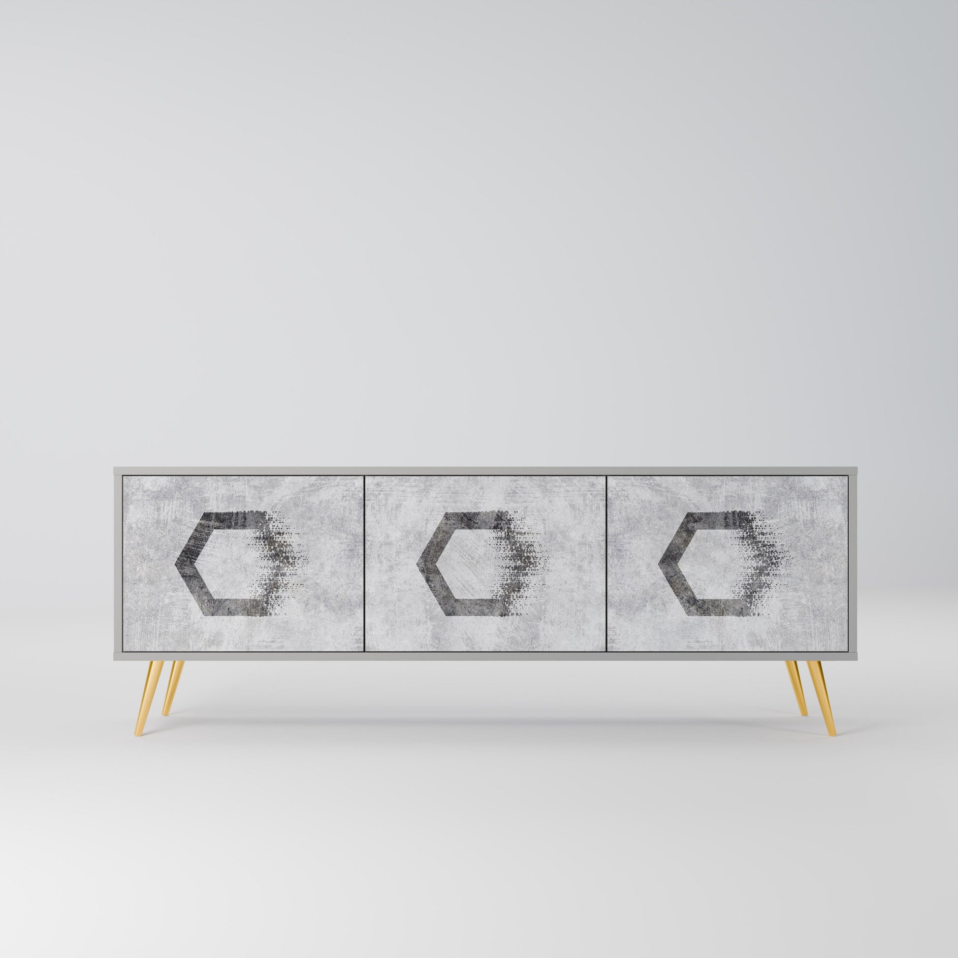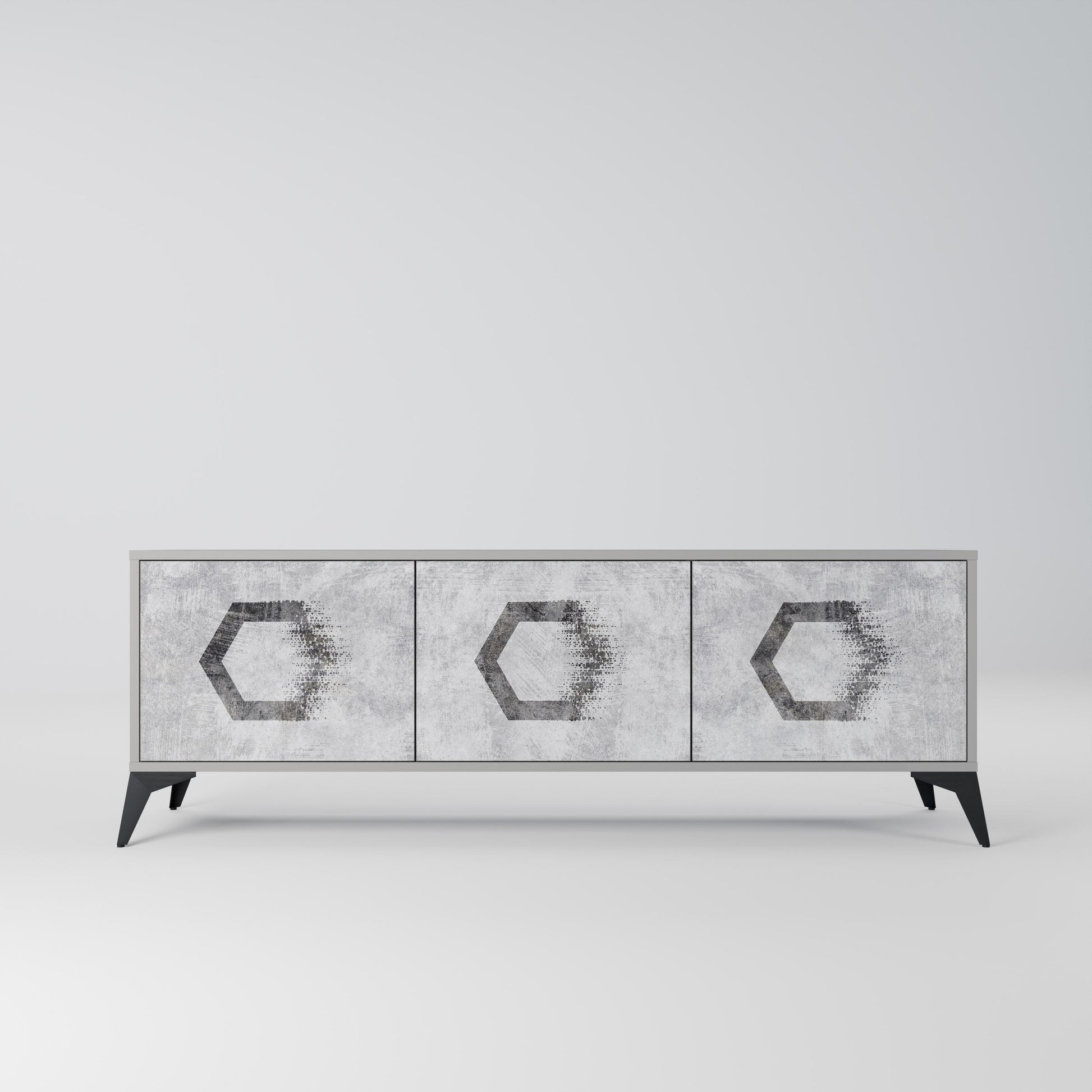 HEXAGONAL FIGURES 3-Door TV Stand in Grey Finish