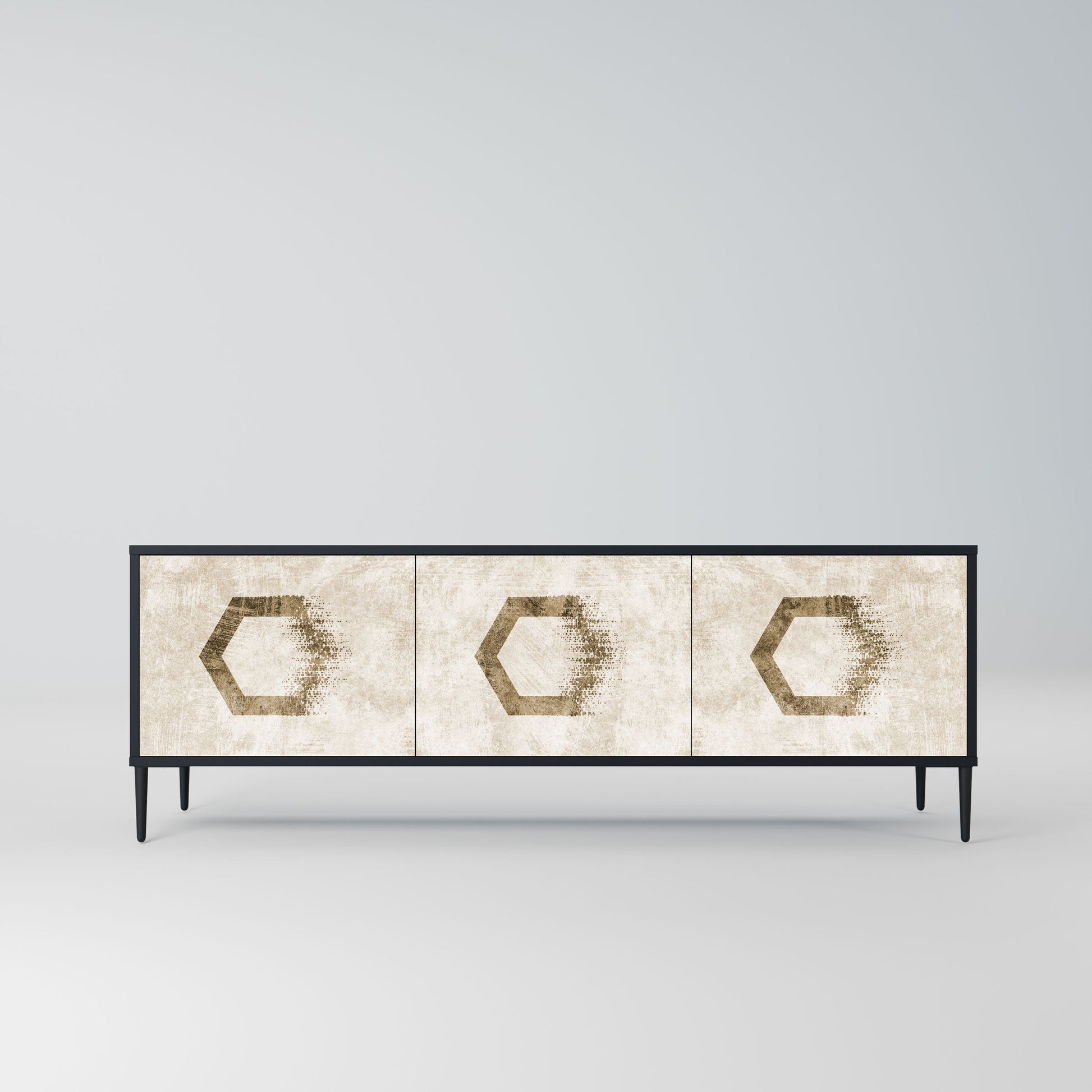 HEXAGONAL SHAPES 3-Door TV Stand in Black Finish