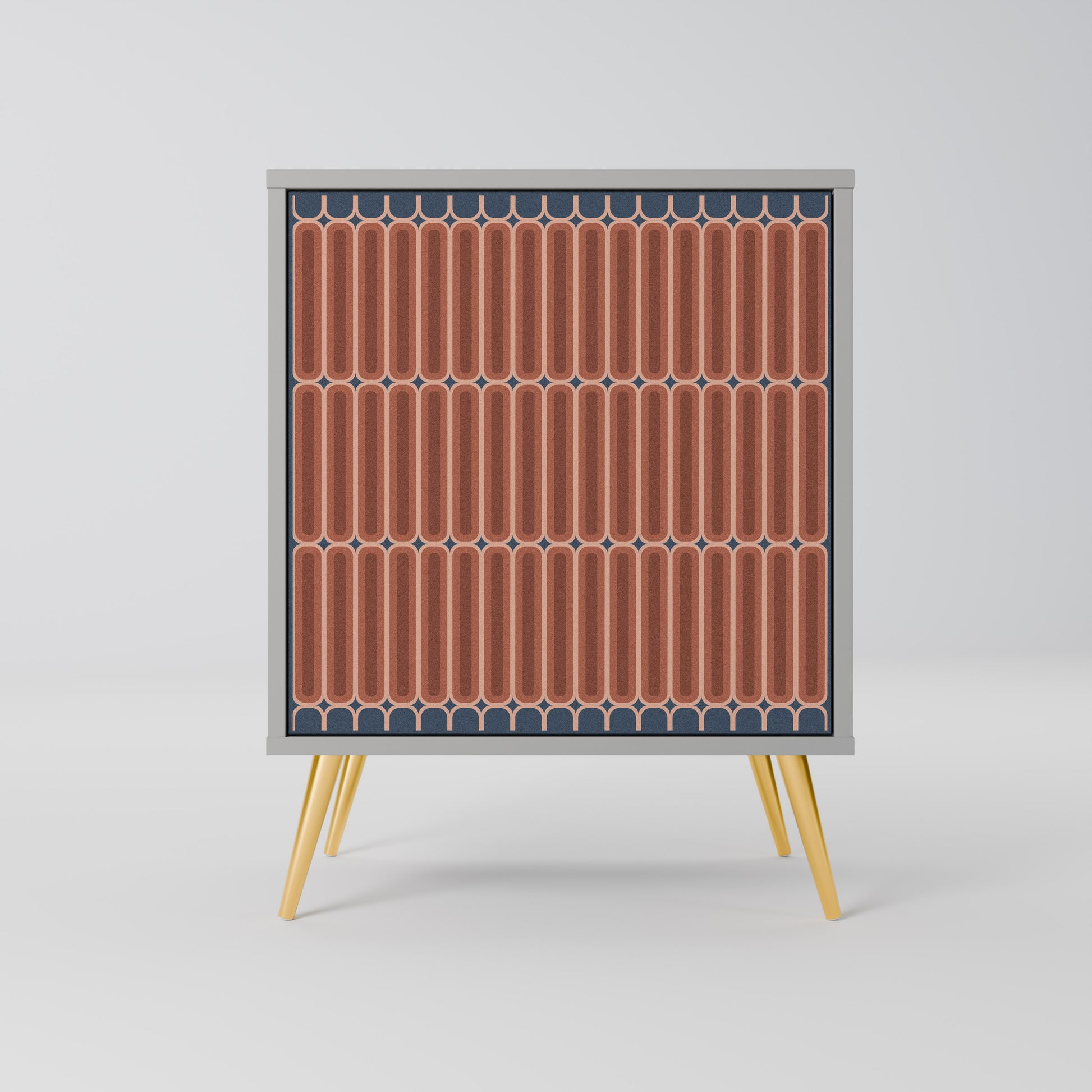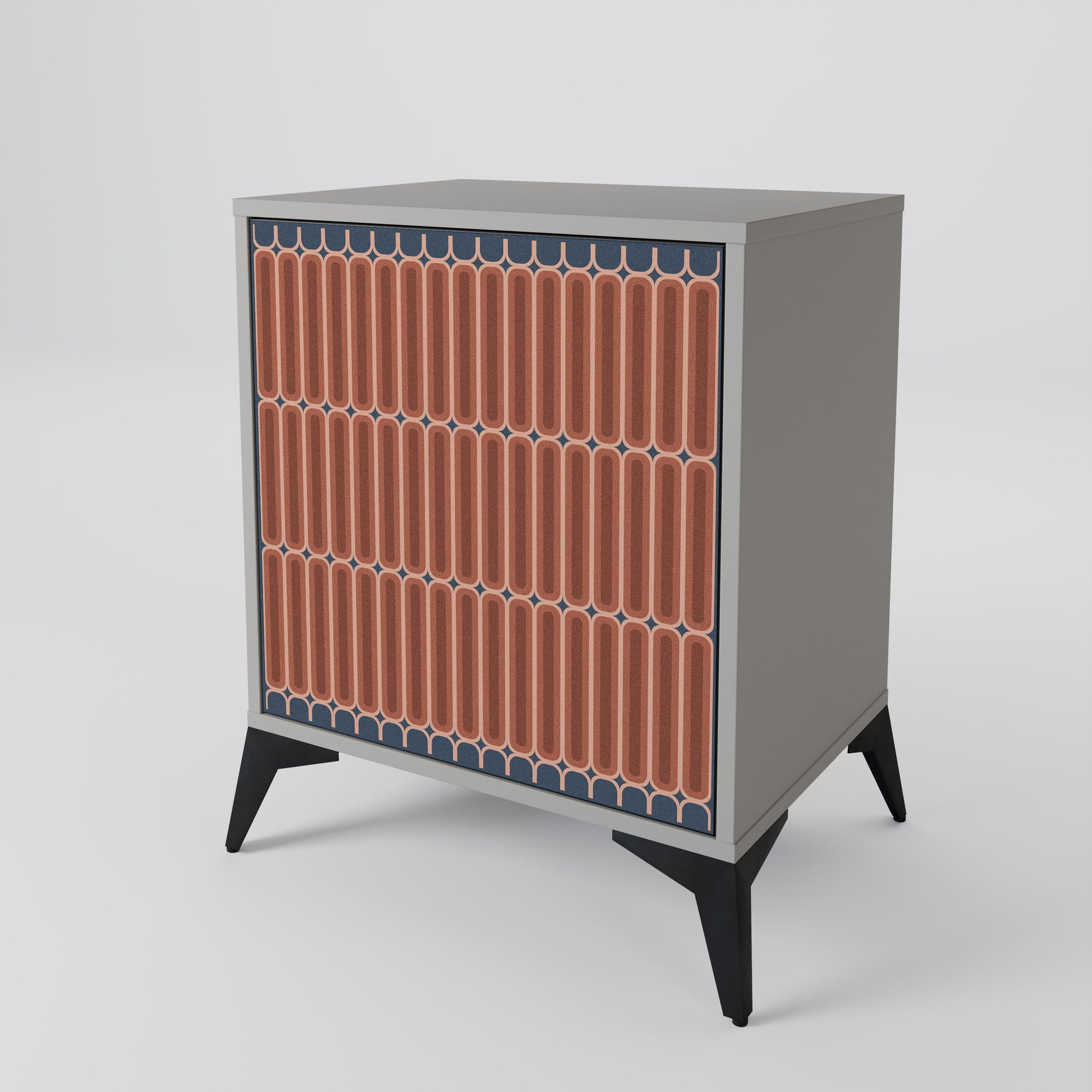 This compact yet remarkably elegant piece of furniture impresses with its minimalist design, perfectly fitting into both modern and classic interiors. The subdued grey color of the body gives the furniture a subtle yet distinctive character, while the fronts with a unique print add an artistic touch.