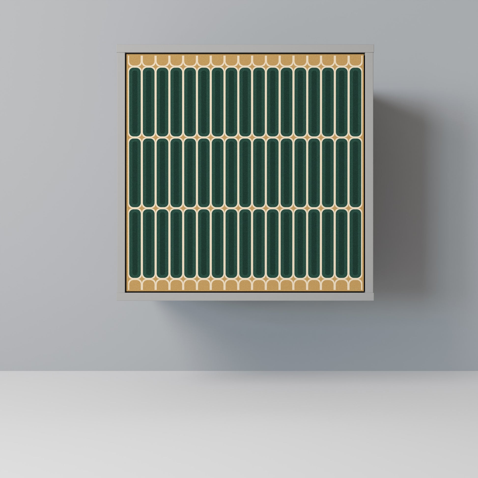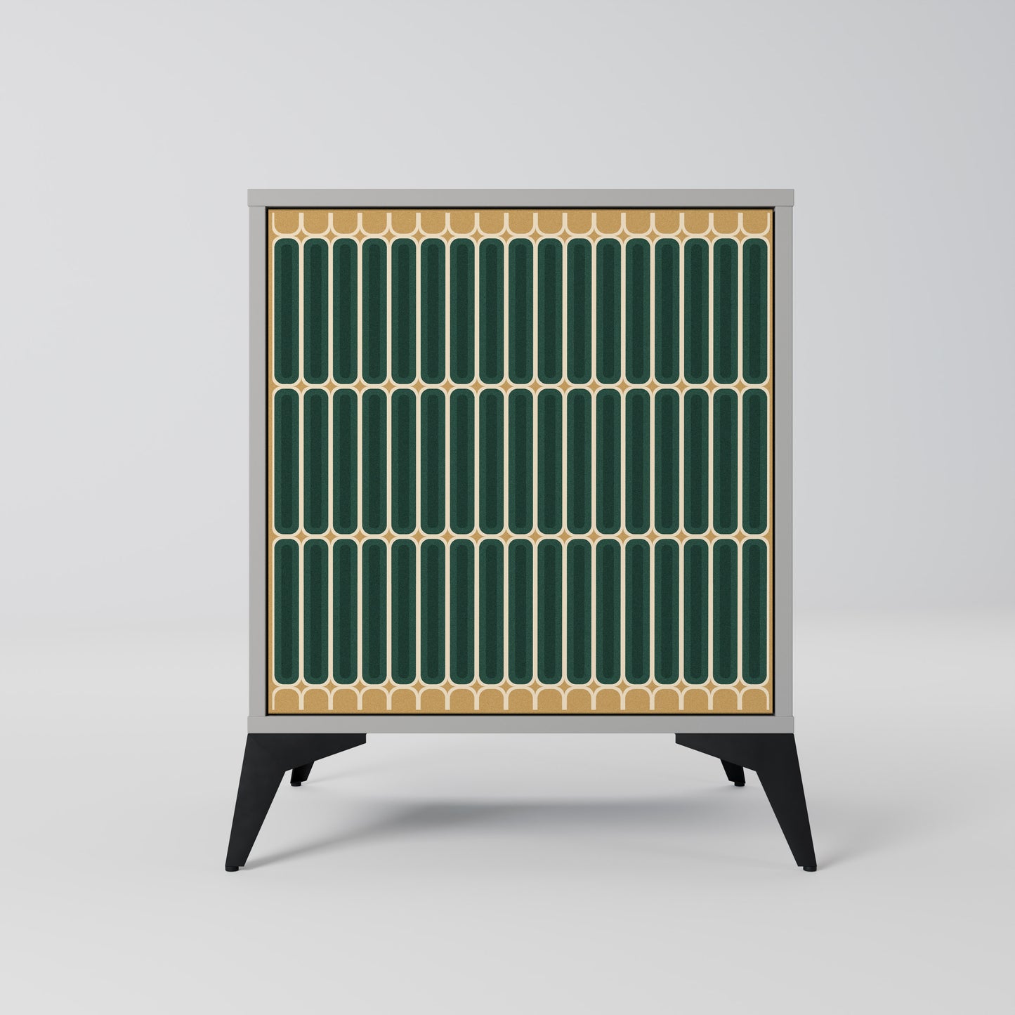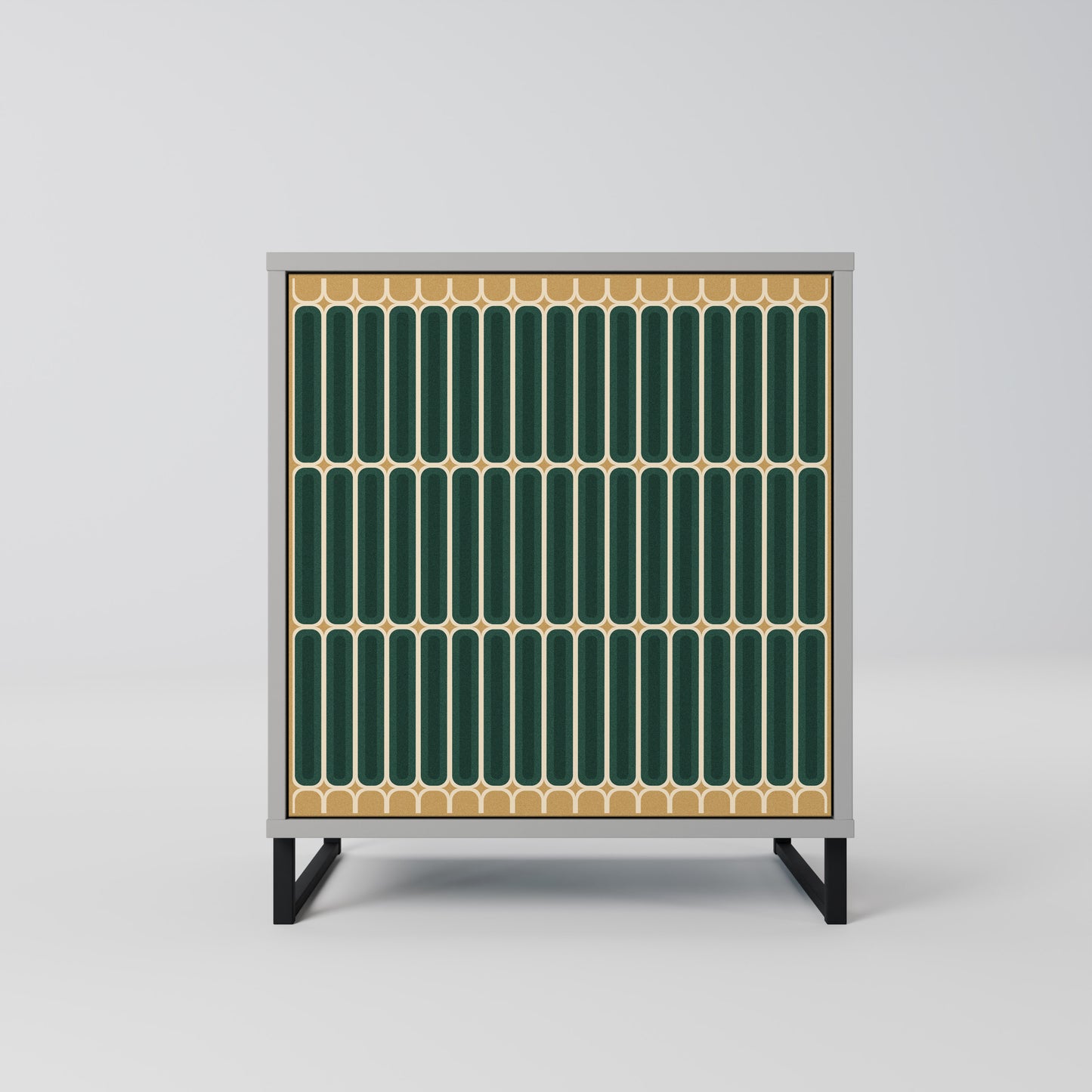 This compact yet remarkably elegant piece of furniture impresses with its minimalist design, perfectly fitting into both modern and classic interiors. The subdued grey color of the body gives the furniture a subtle yet distinctive character, while the fronts with a unique print add an artistic touch.