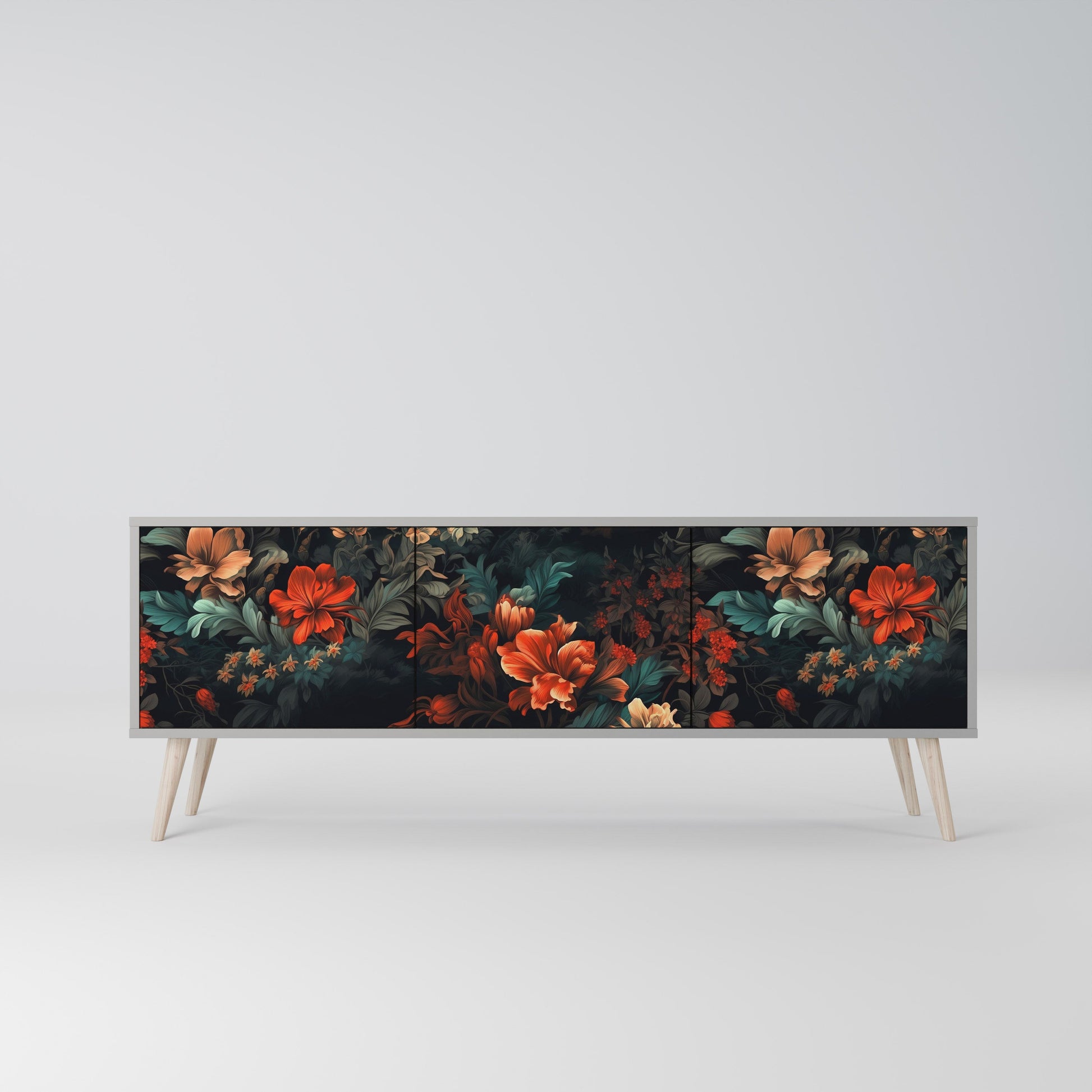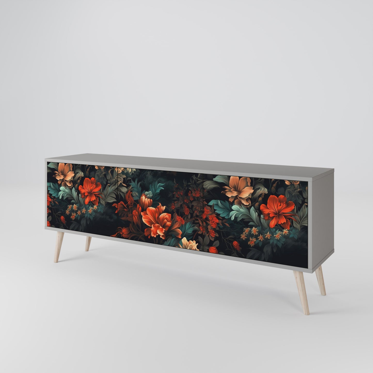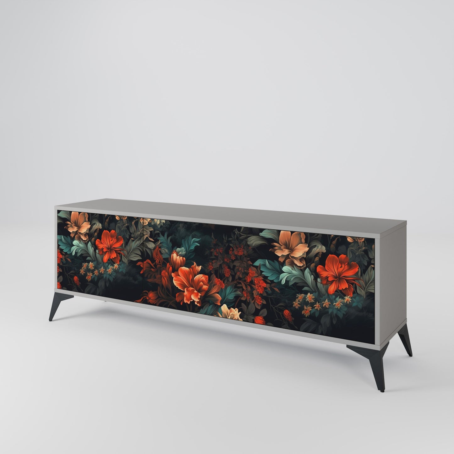 IMAGINARY BLOSSOM 3-Door TV Stand in Grey Finish