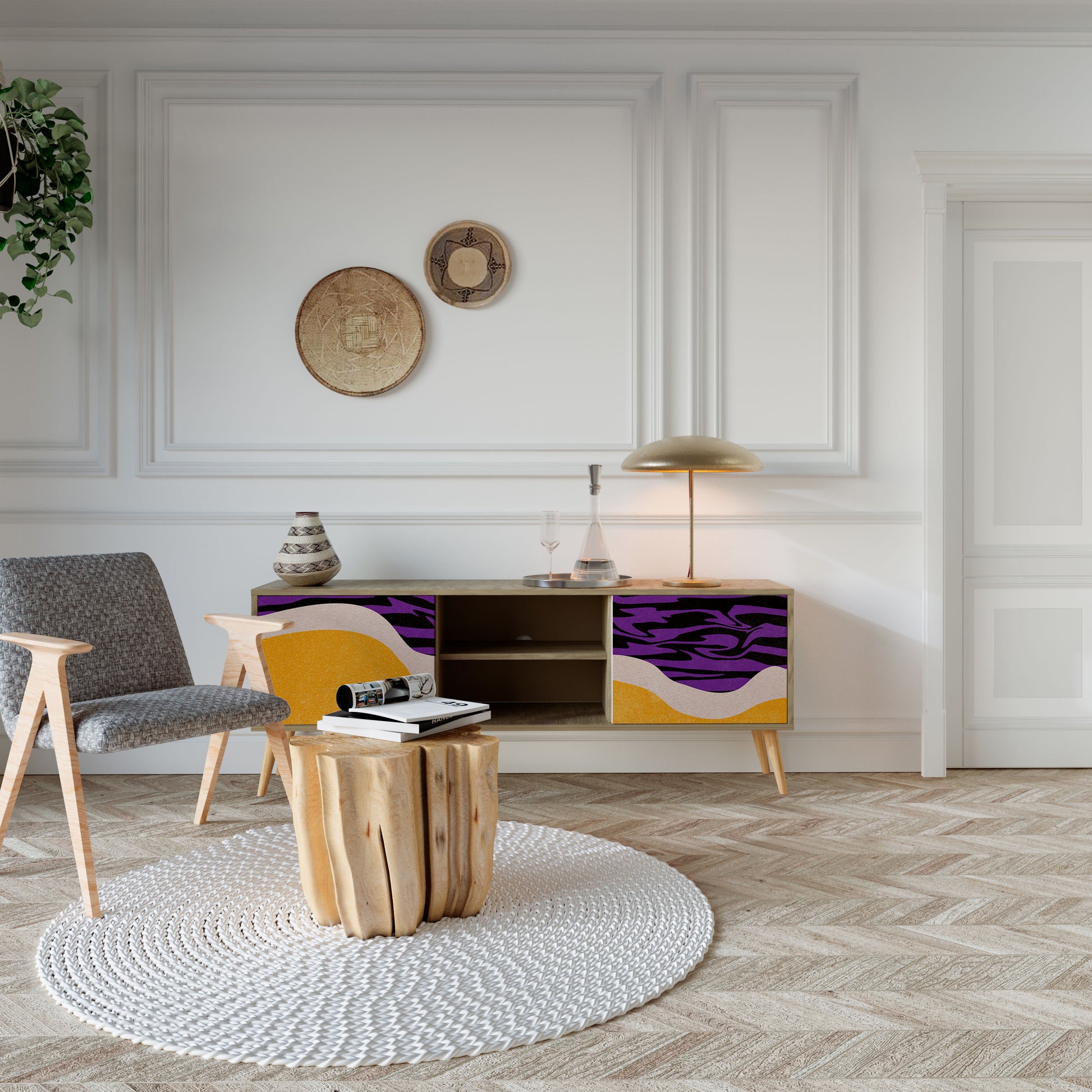 We invite you to discover our 2-door TV stand that combines simplicity with exceptional style. Made from the highest-quality materials, this elegant piece in oak tones, featuring wooden doors with a printed finish, is the perfect addition to any modern living room.