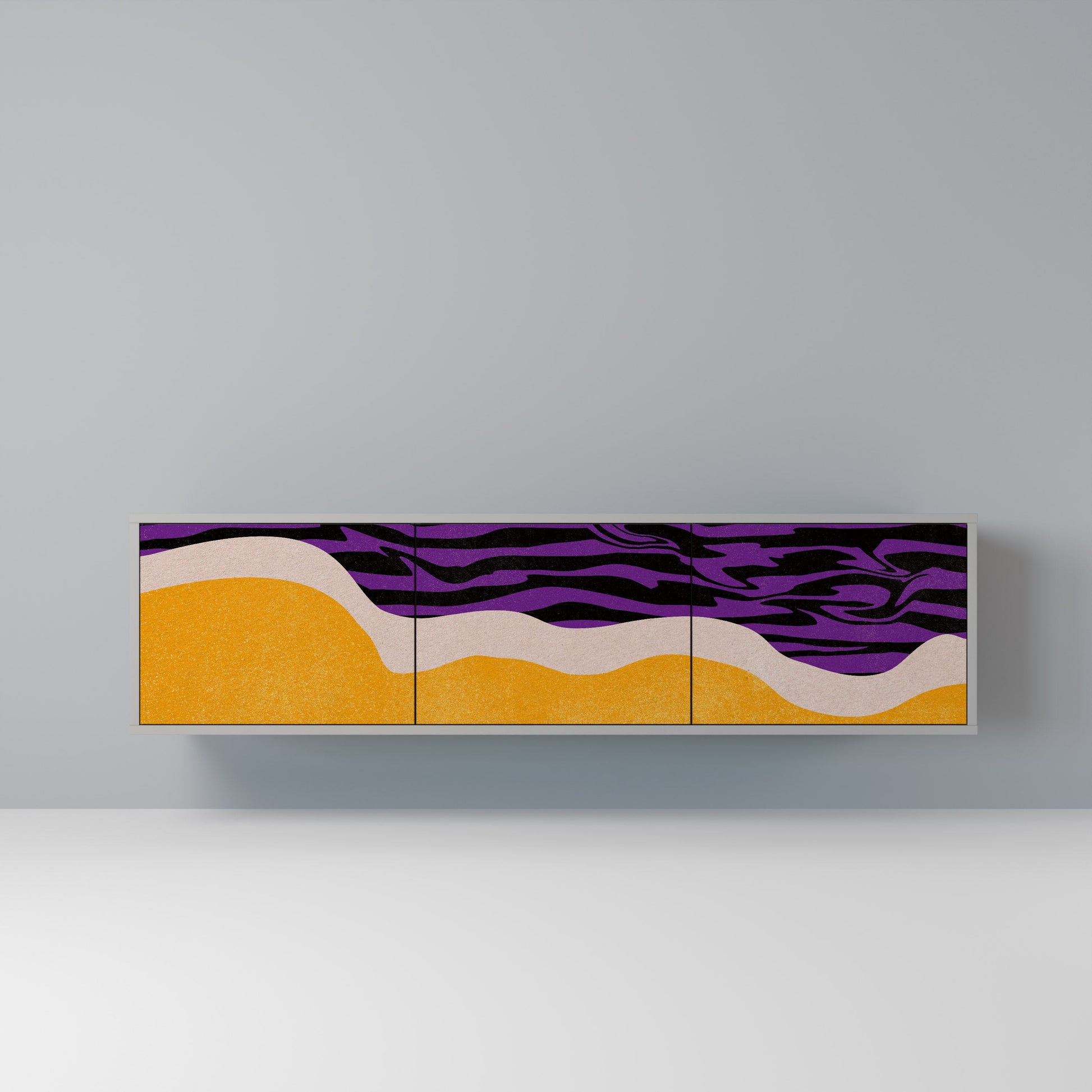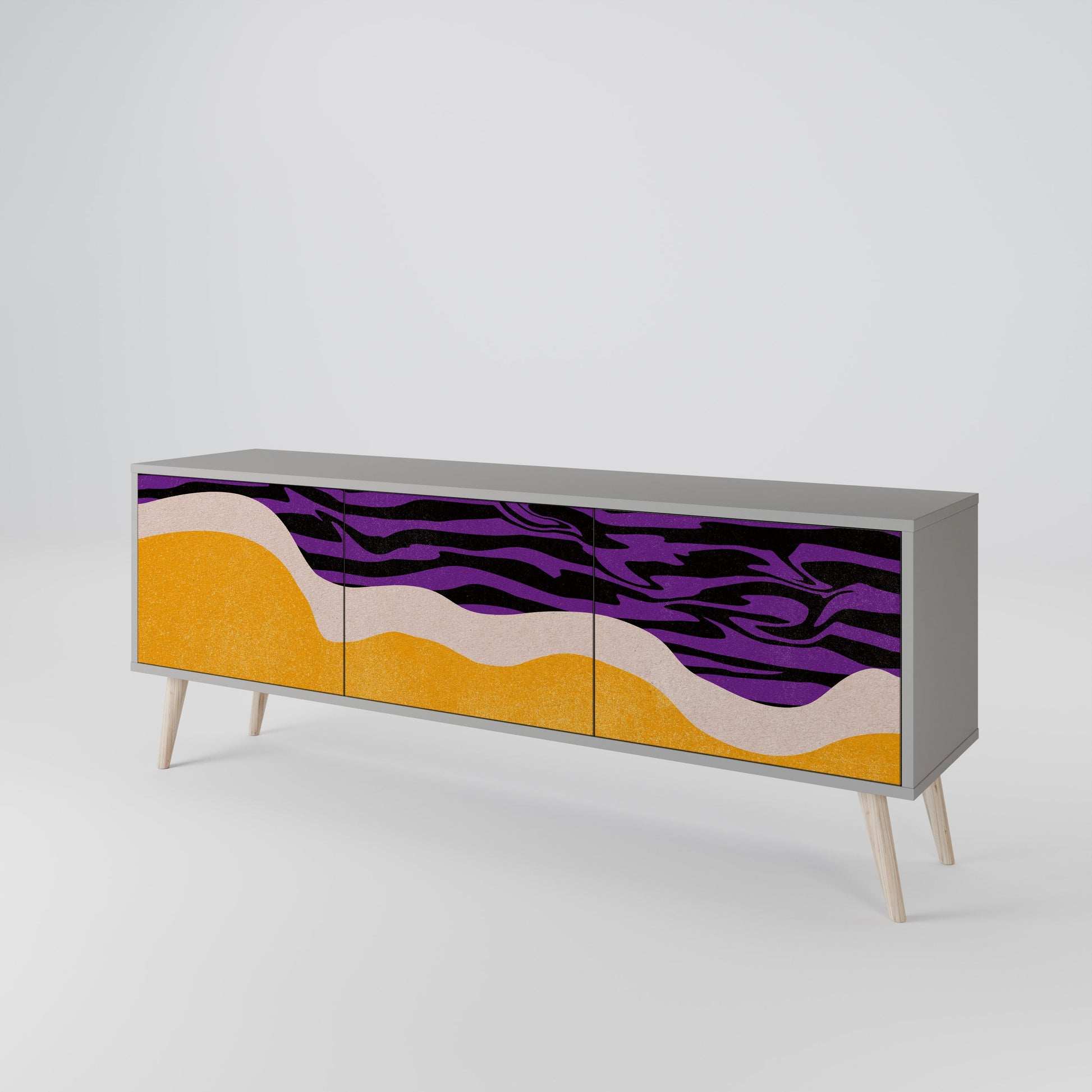 The grey body of the stand creates a refined, modern accent that pairs beautifully with industrial and minimalist arrangements. The fronts with a designer print add character and uniqueness, making this piece not only practical but also a standout decorative element.