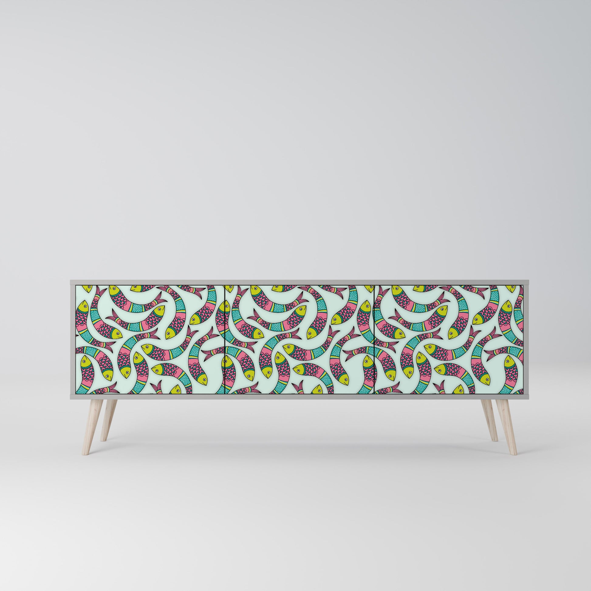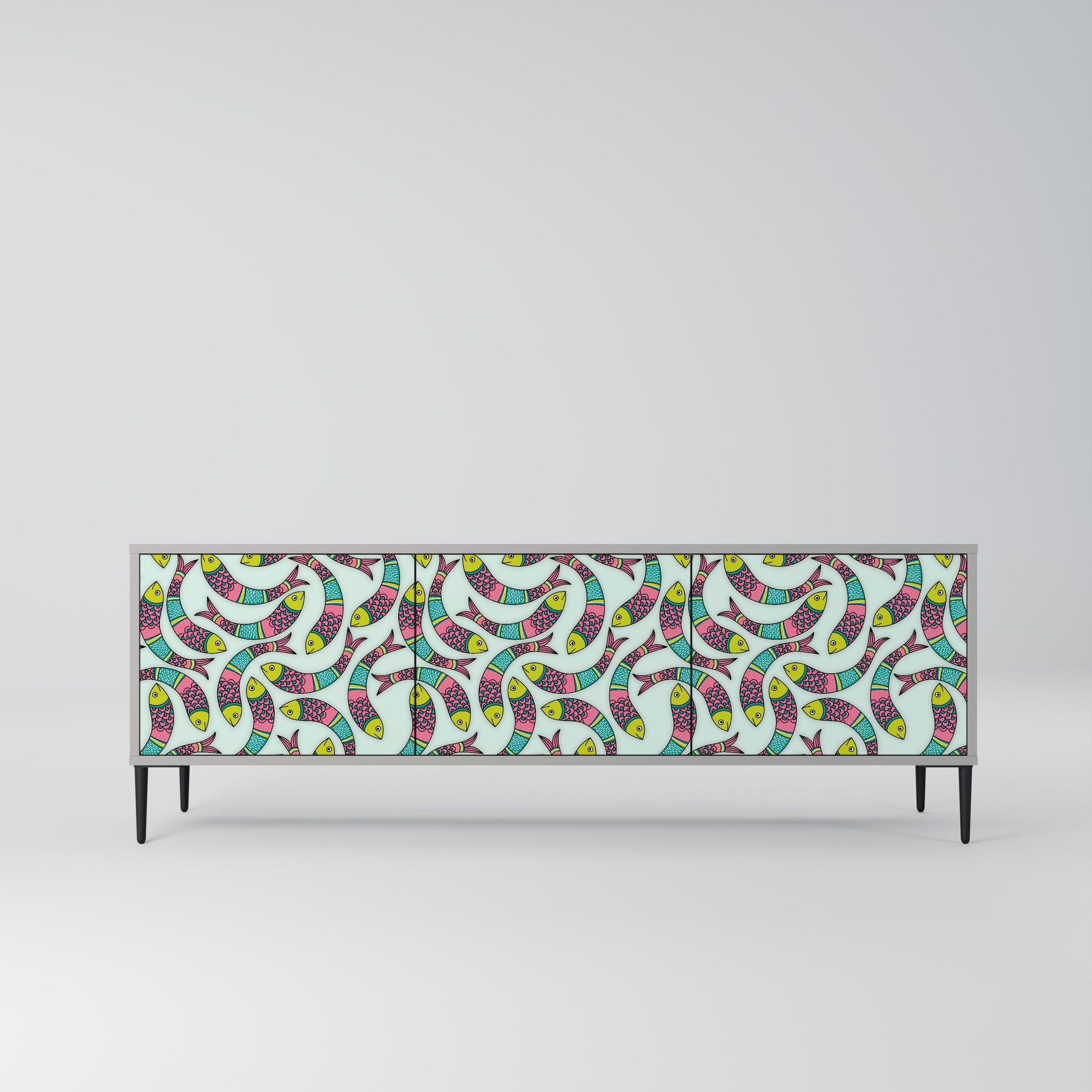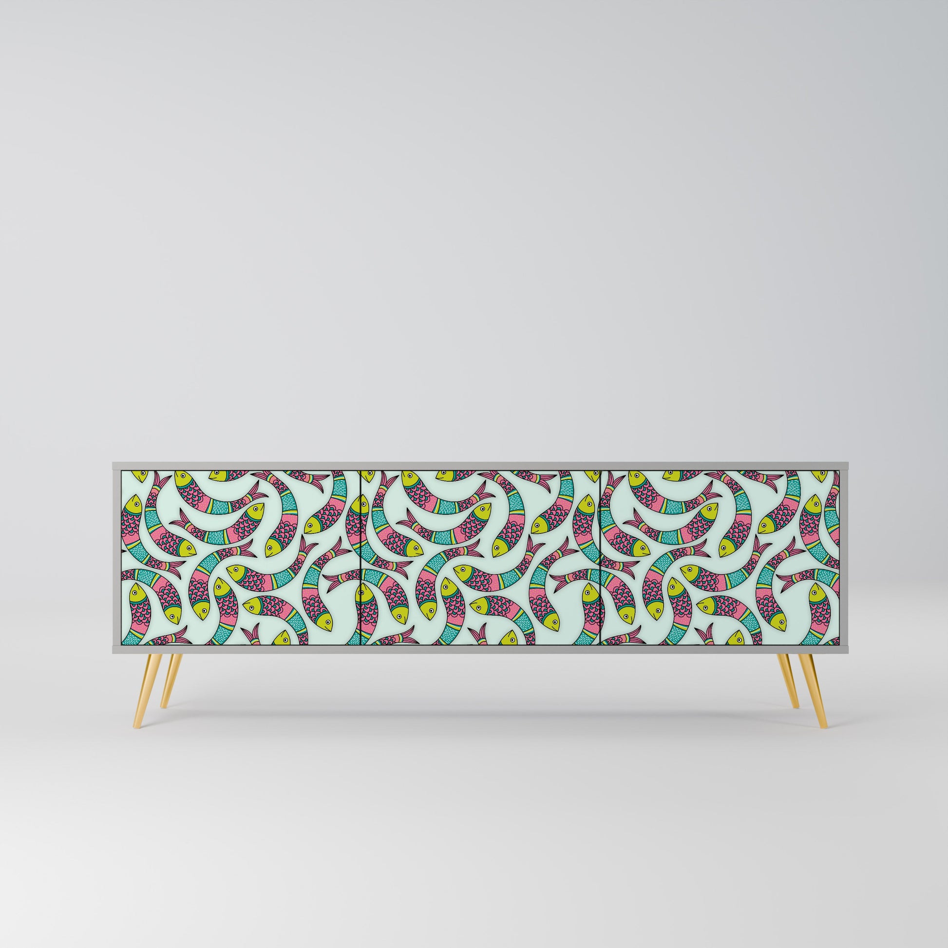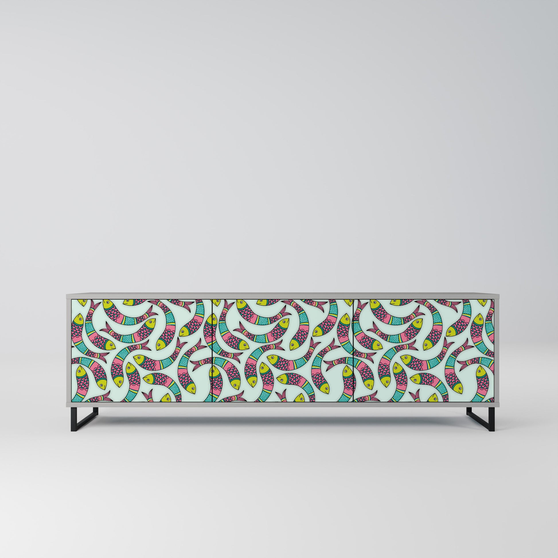 INDIAN FISH 3-Door TV Stand in Grey Finish