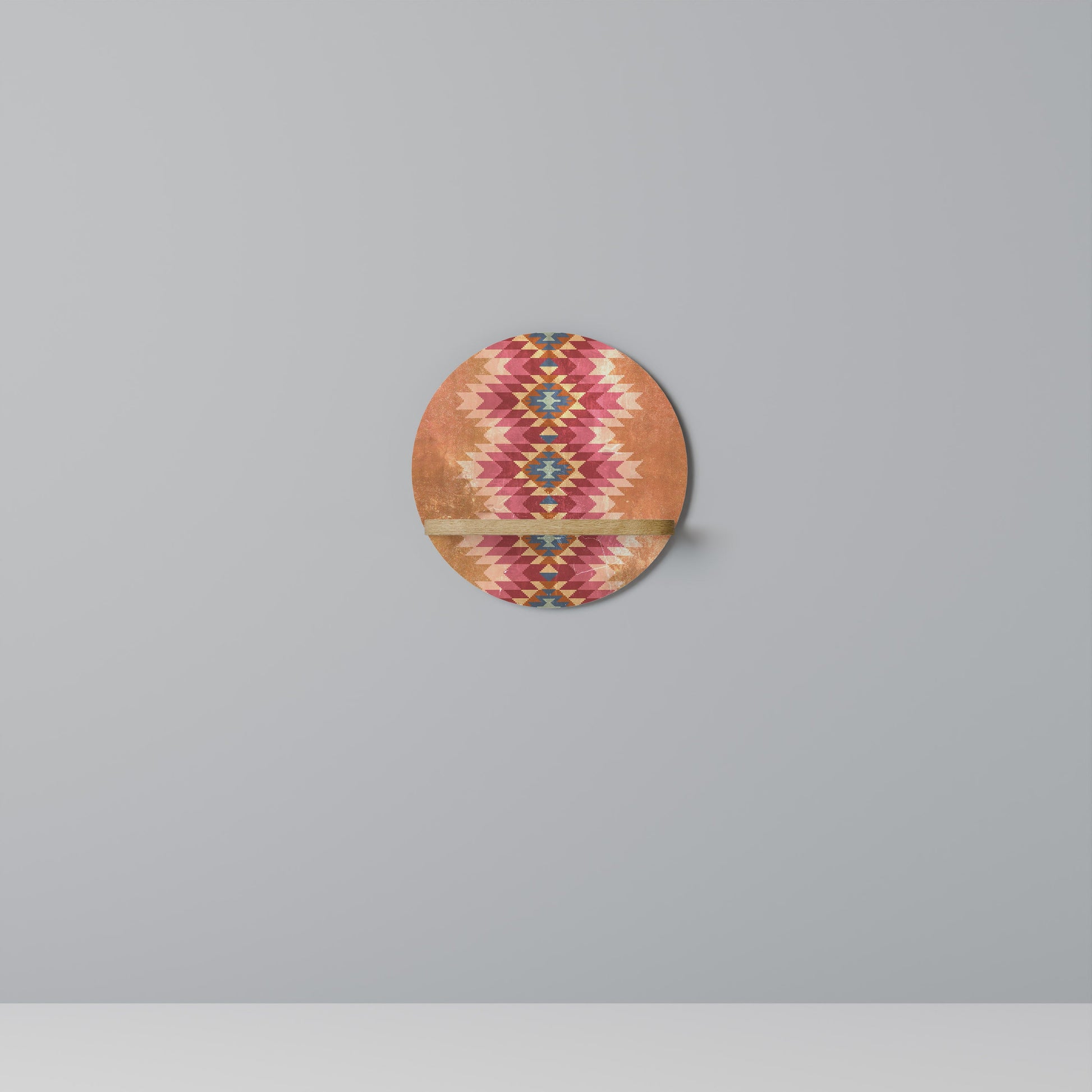 INDIAN FOLK Round Art Shelf In Oak Effect