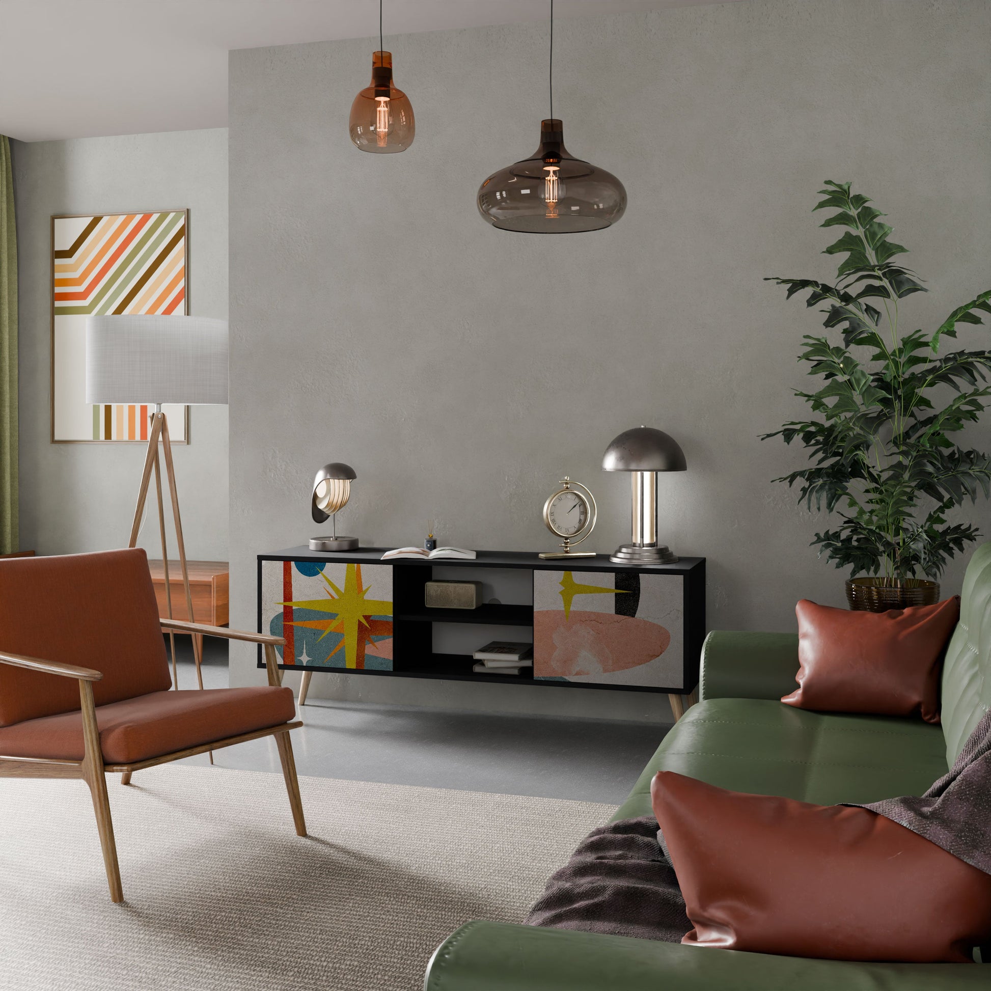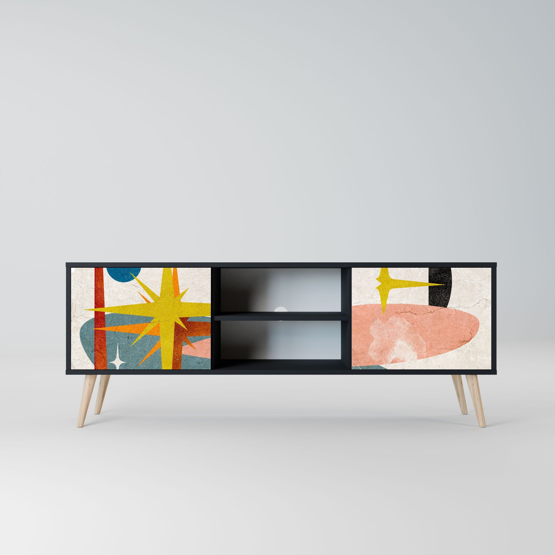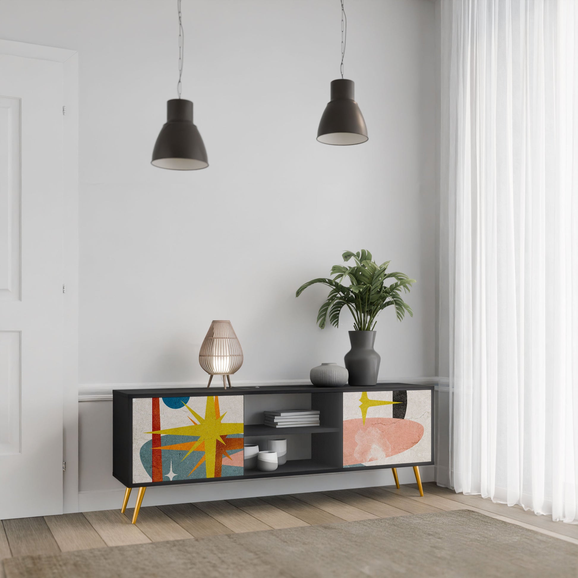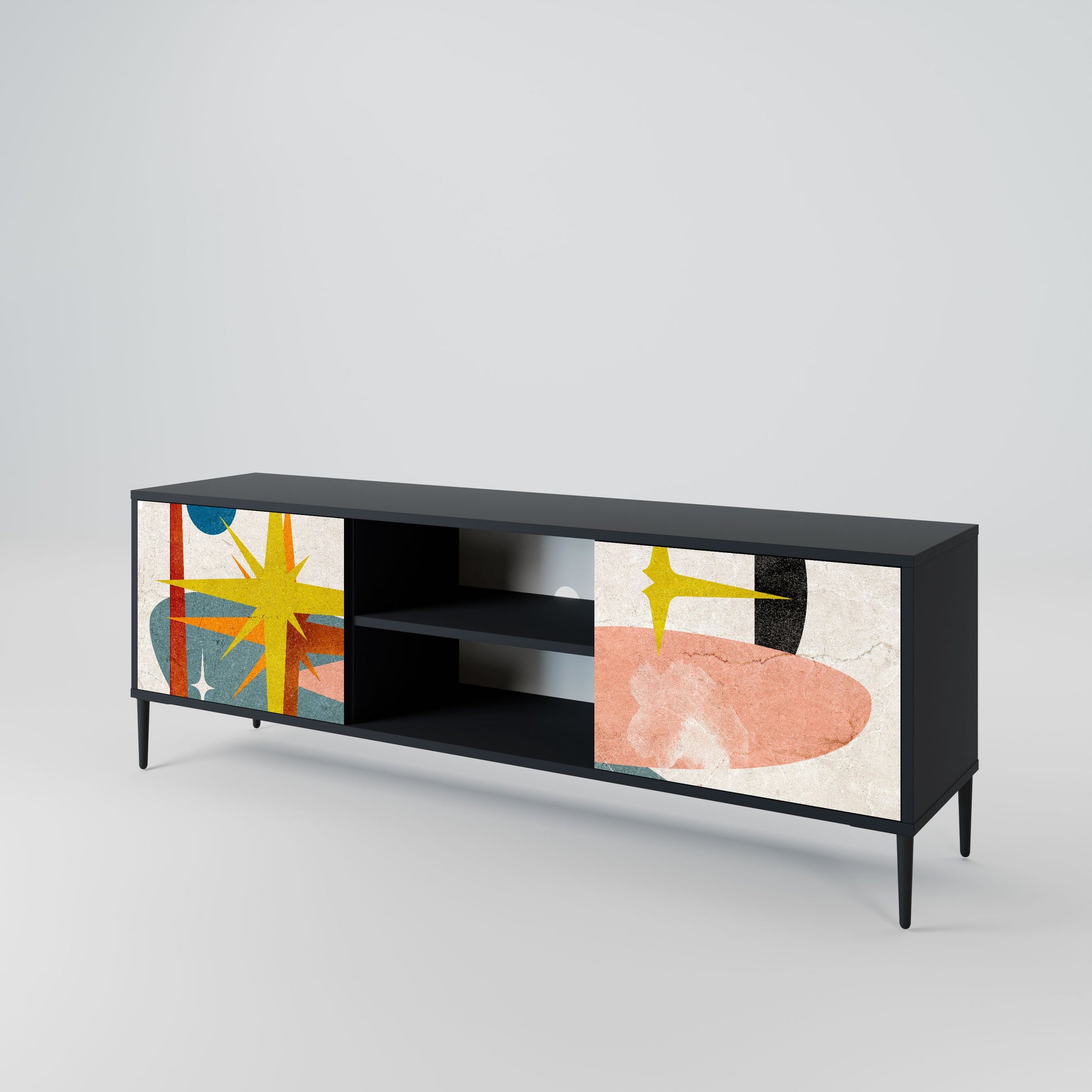 The black body gives the TV stand an elegant, modern look, while the fronts with an exceptional print draw attention, making it the focal point of any room. The spacious interior provides room for electronic devices, cables, remotes, and other accessories, helping you maintain order and organization.