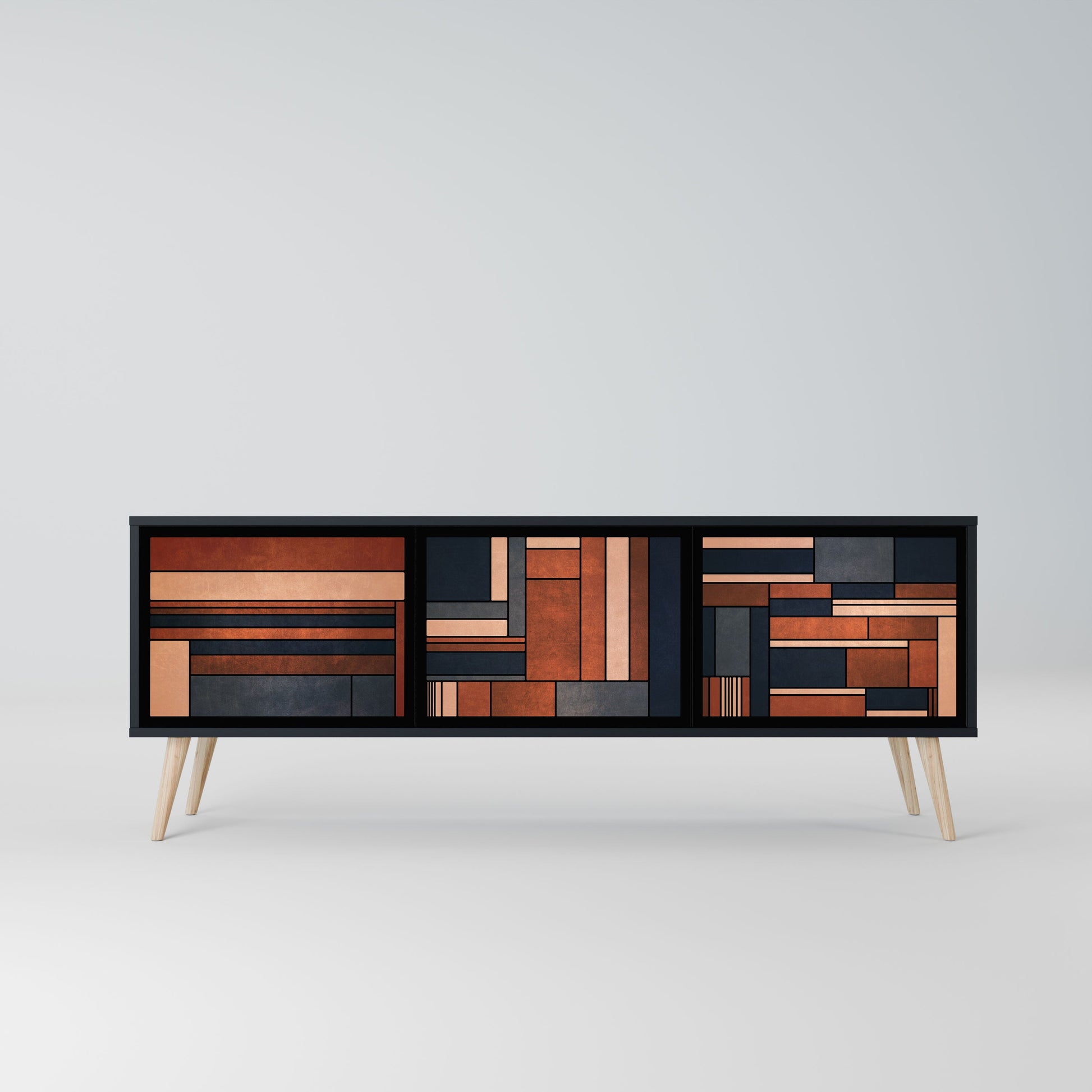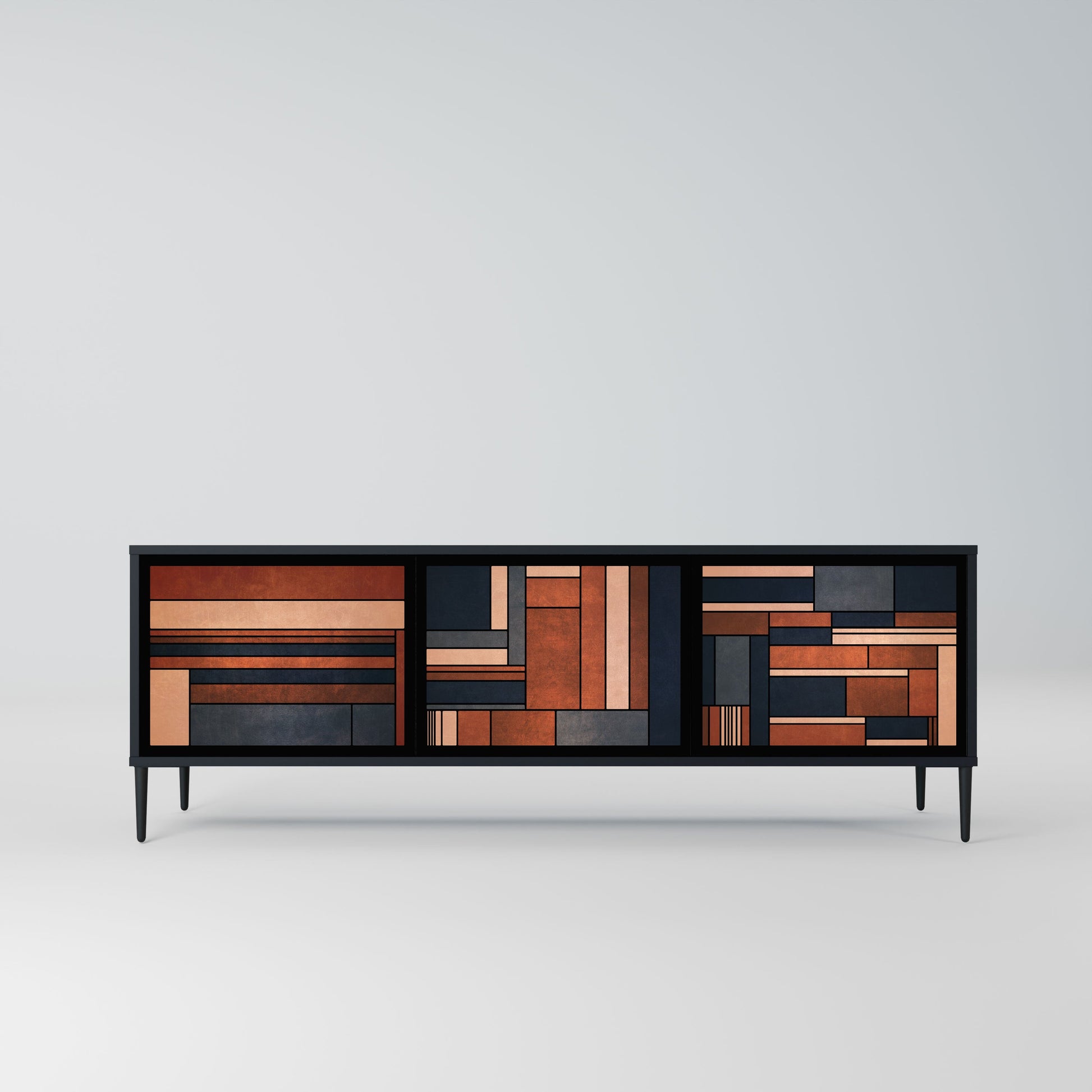 The black body of the stand creates a bold, modern accent that pairs beautifully with industrial and minimalist arrangements. The fronts with a designer print add character and uniqueness, making this piece not only practical but also a standout decorative element.