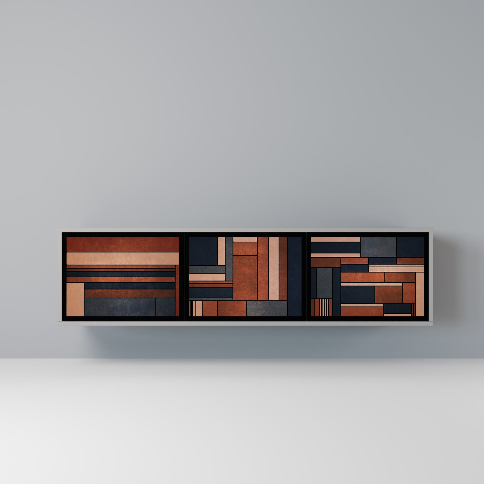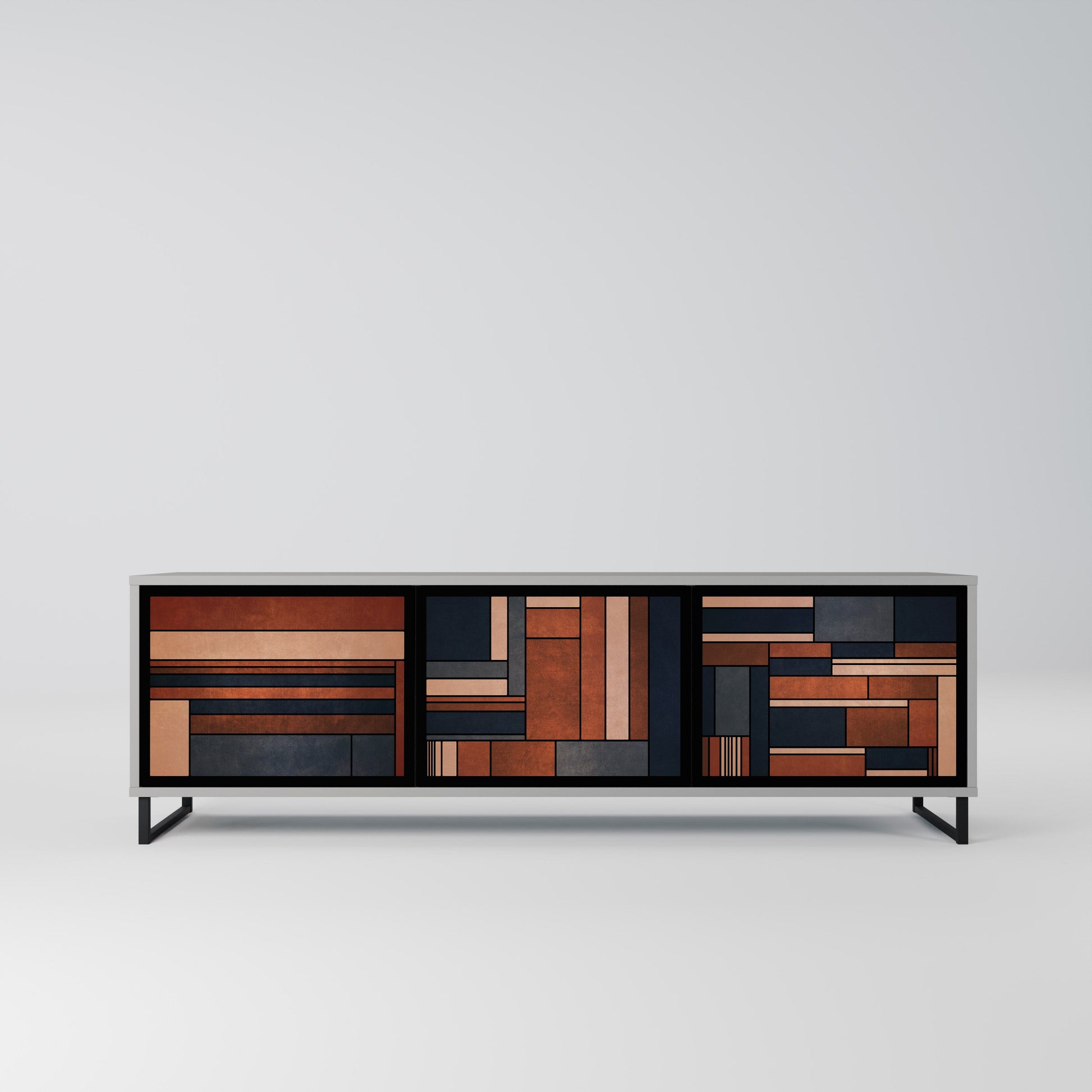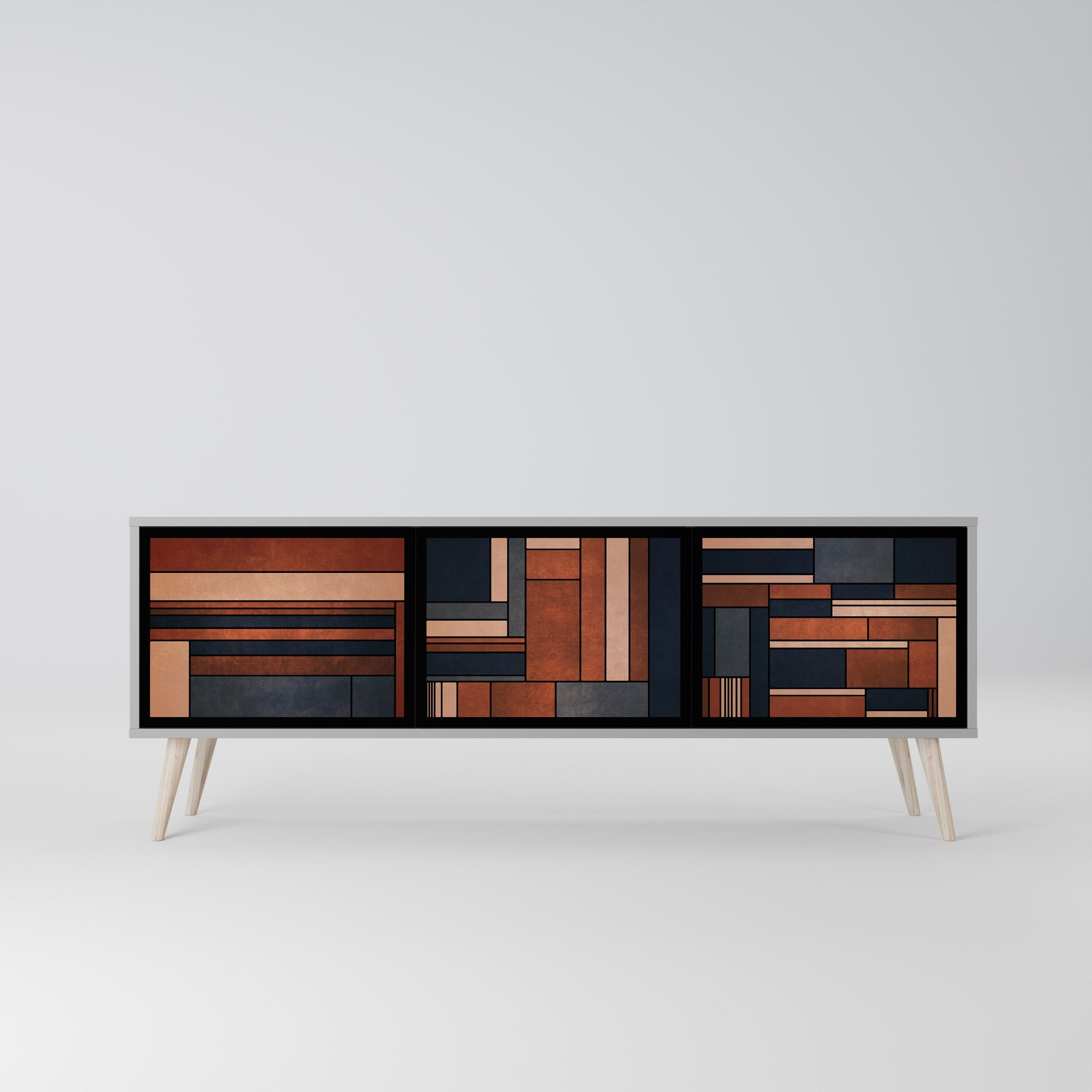The grey body of the stand creates a refined, modern accent that pairs beautifully with industrial and minimalist arrangements. The fronts with a designer print add character and uniqueness, making this piece not only practical but also a standout decorative element.