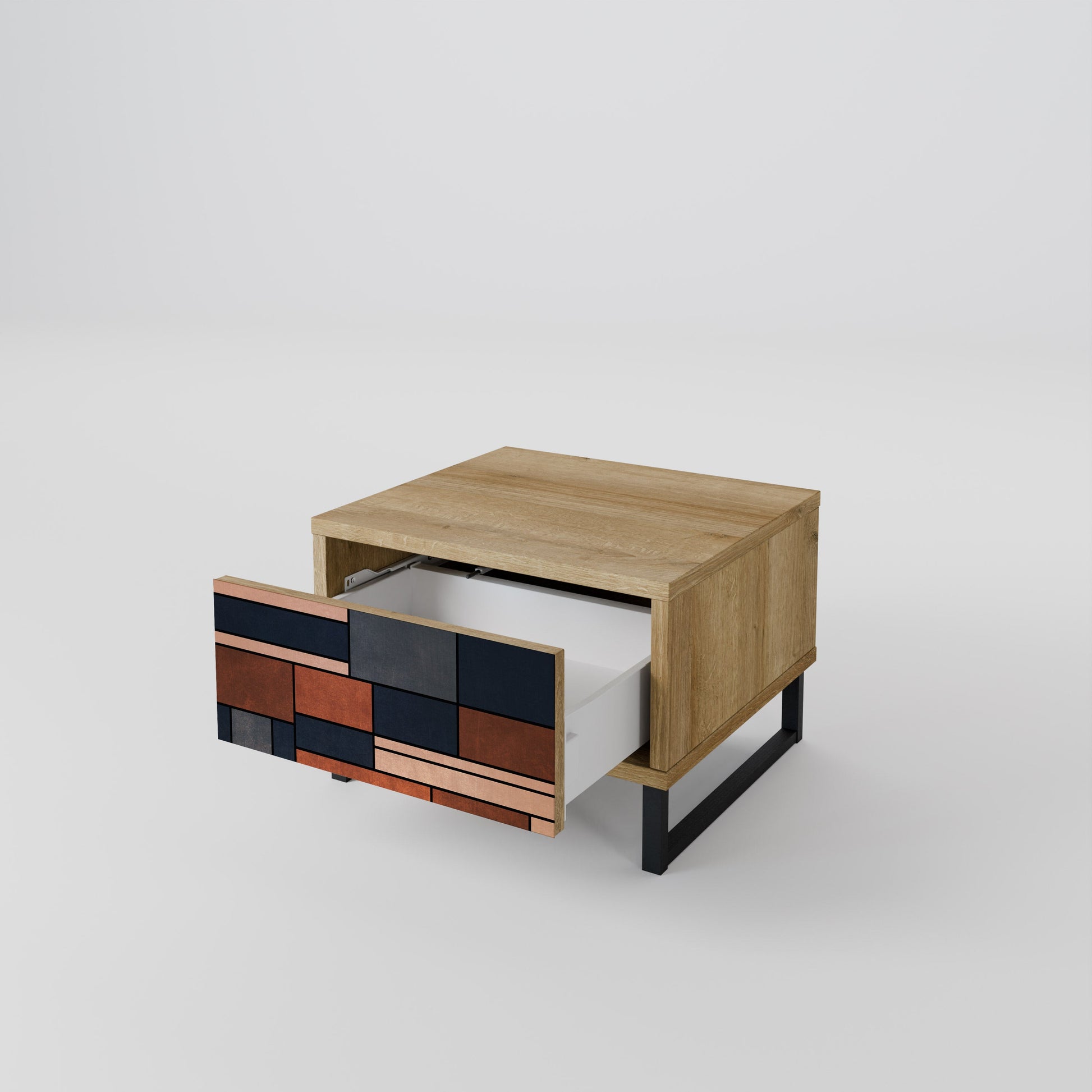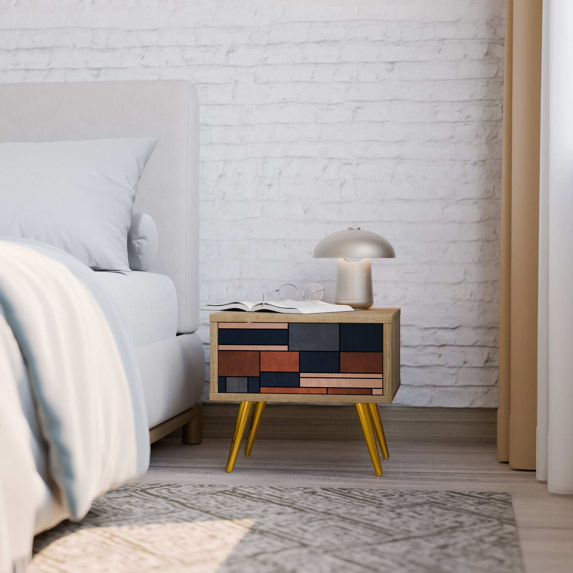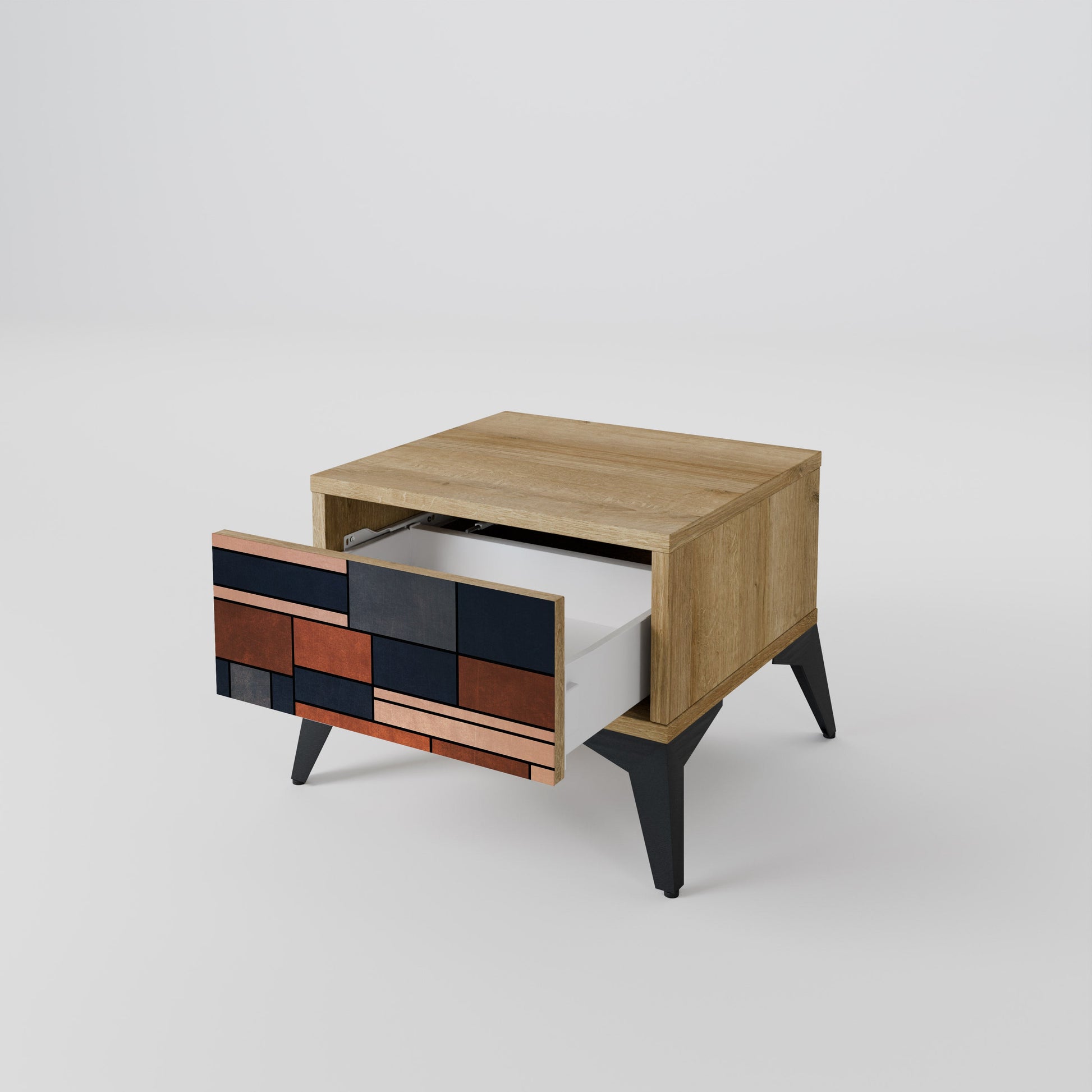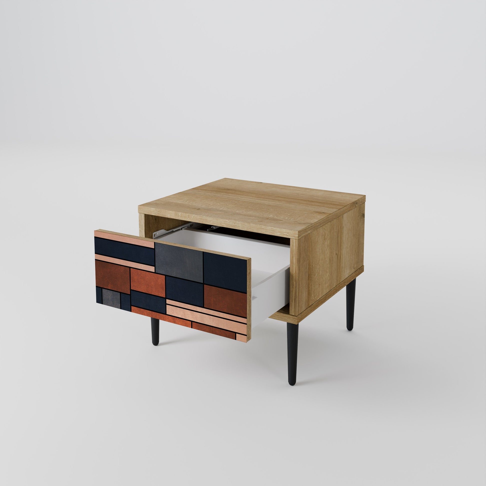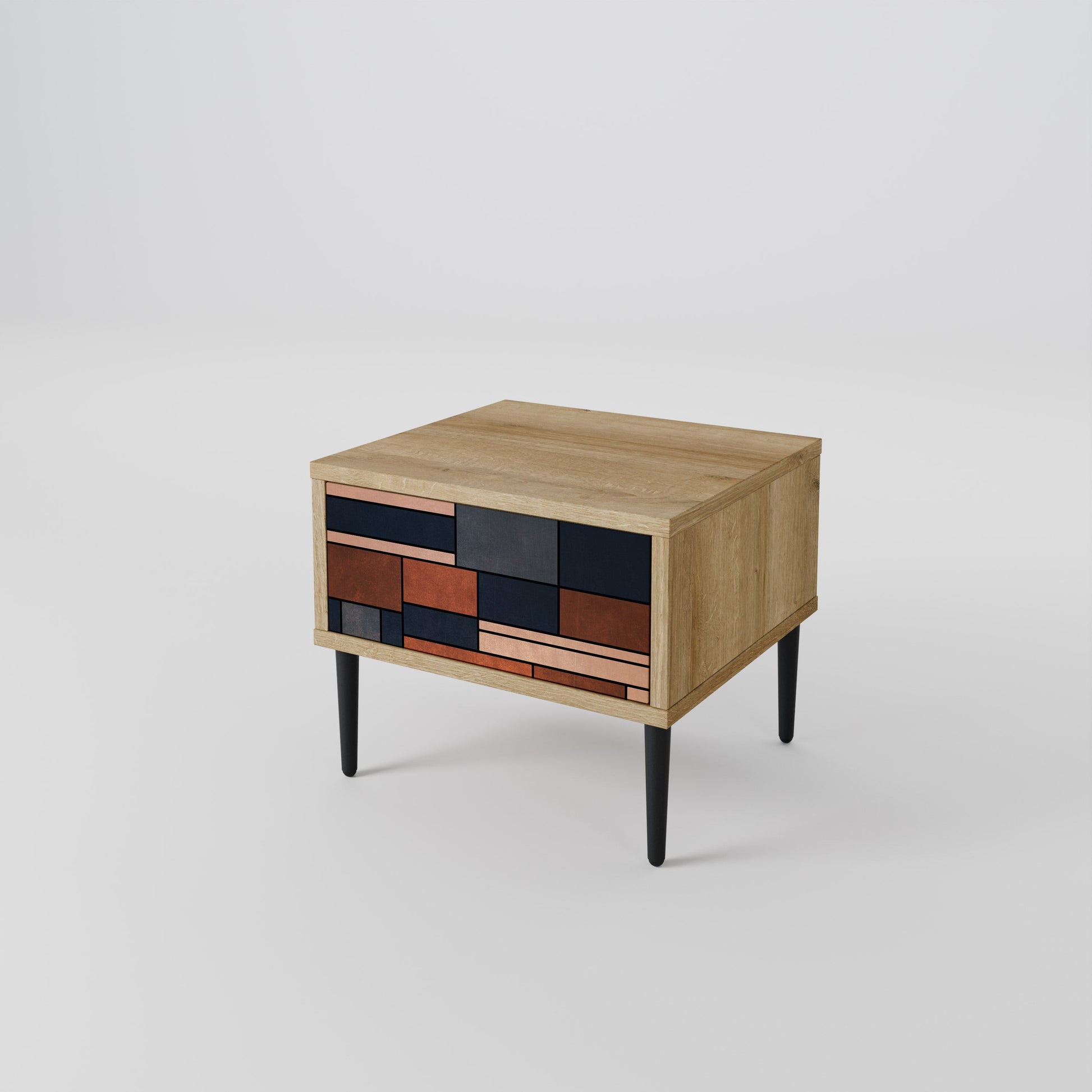Discover functionality and elegance in a compact form with our bedside unit with a drawer. This practical and stylish piece of furniture perfectly combines the natural beauty of wood with modern design on the drawer front, creating a harmonious element for any bedroom.