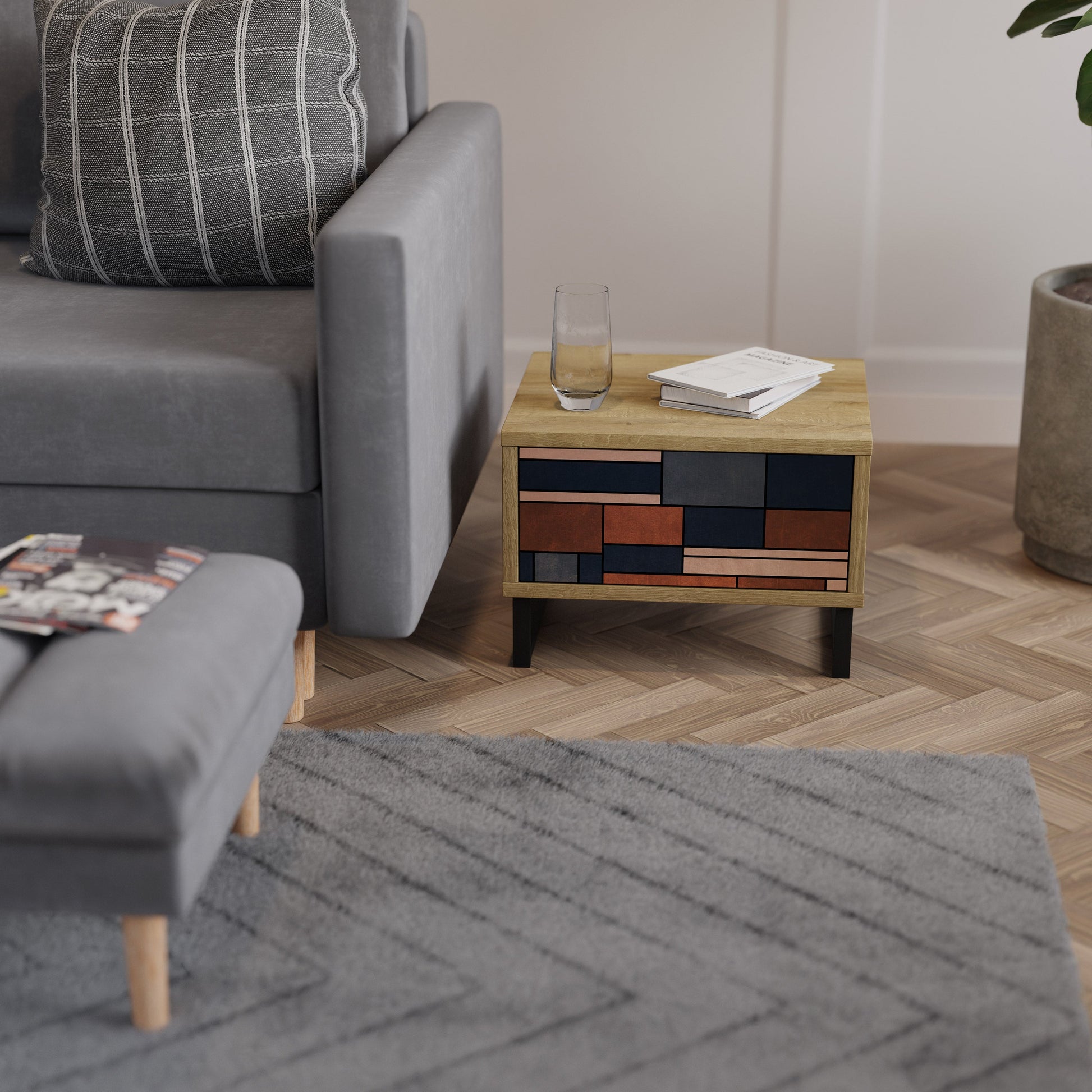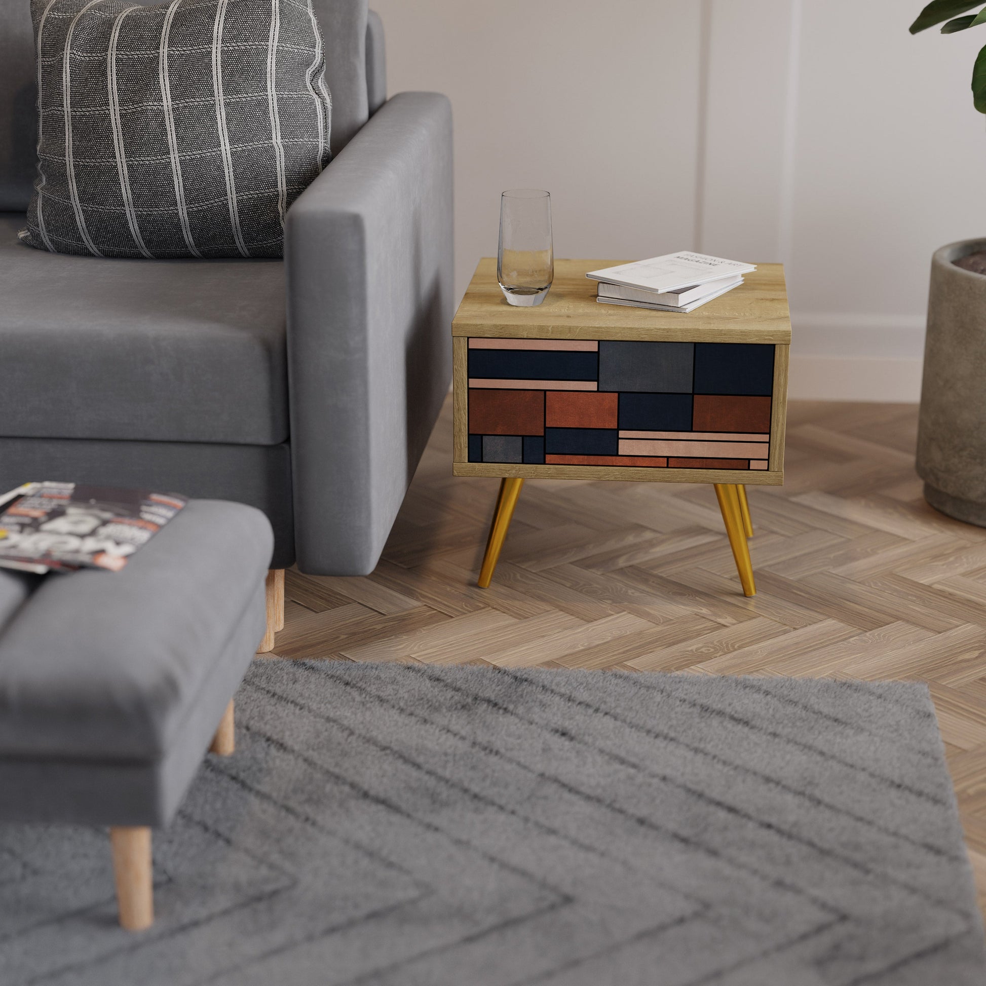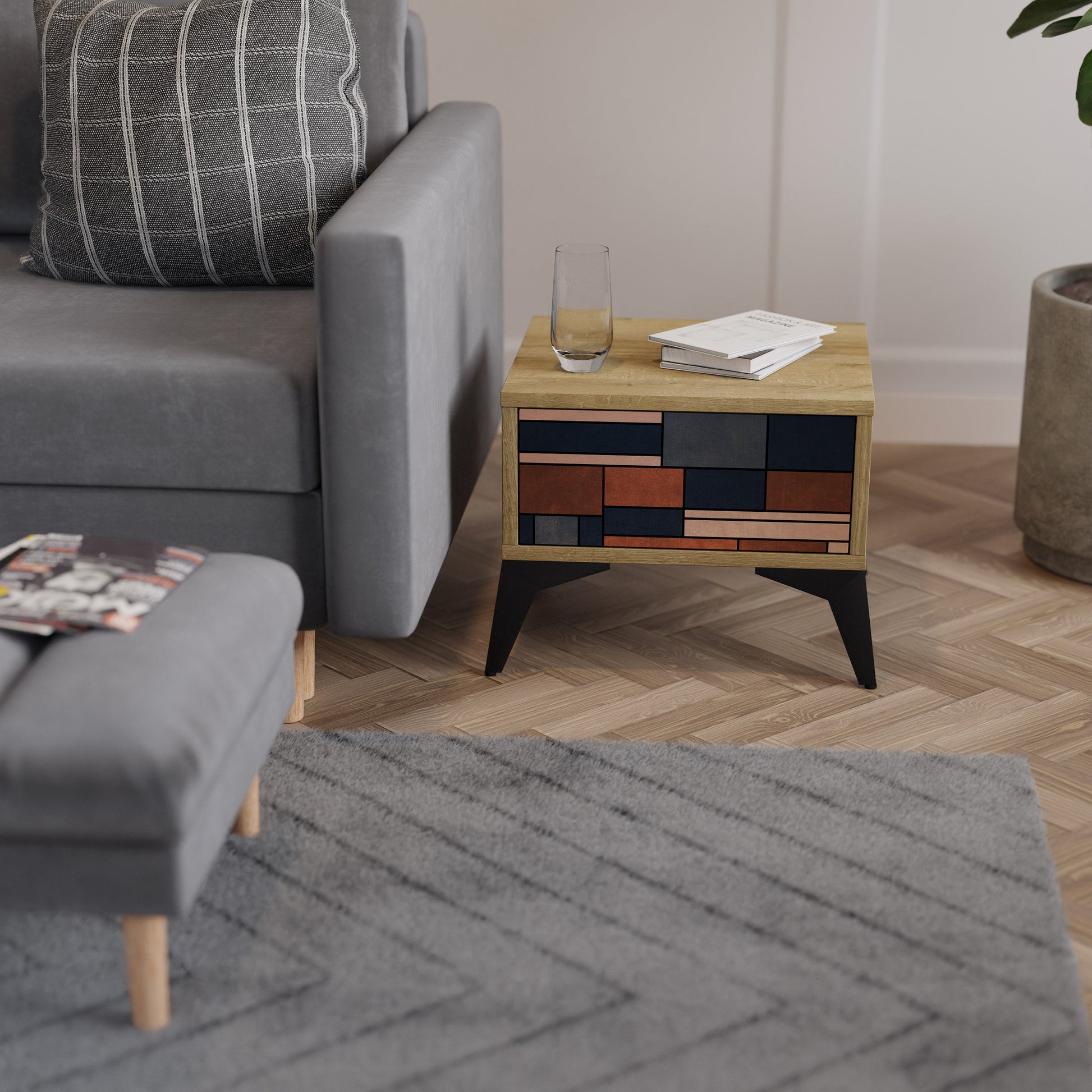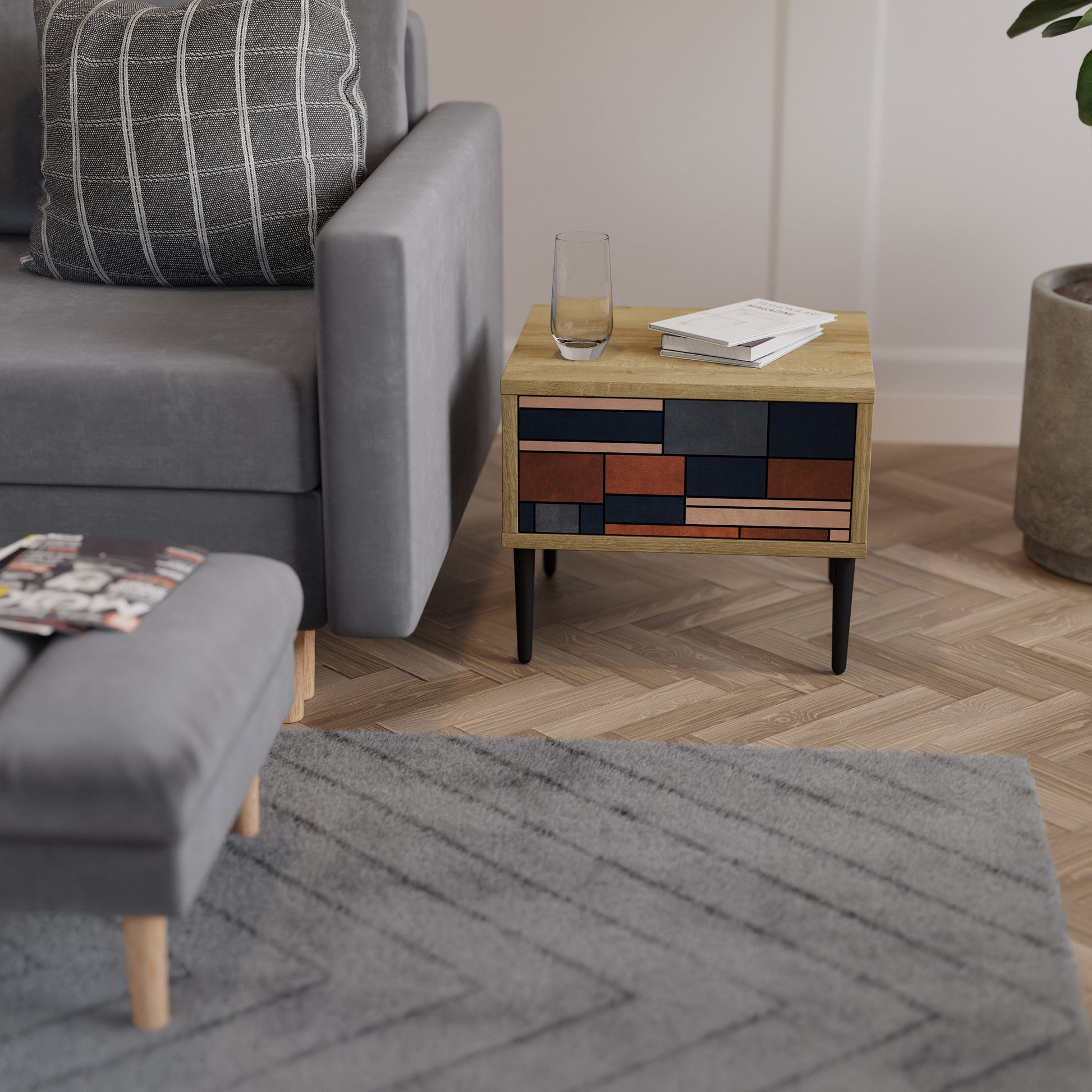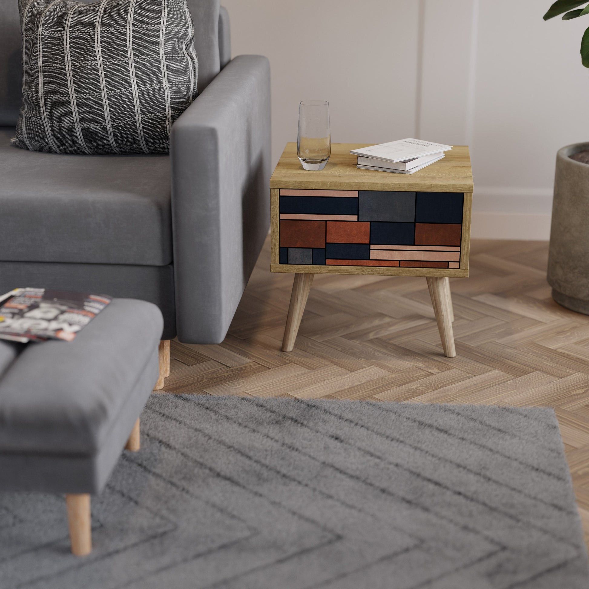 Discover functionality and elegance in a compact form with our bedside unit with a drawer. This practical and stylish piece of furniture perfectly combines the natural beauty of wood with modern design on the drawer front, creating a harmonious element for any bedroom.
