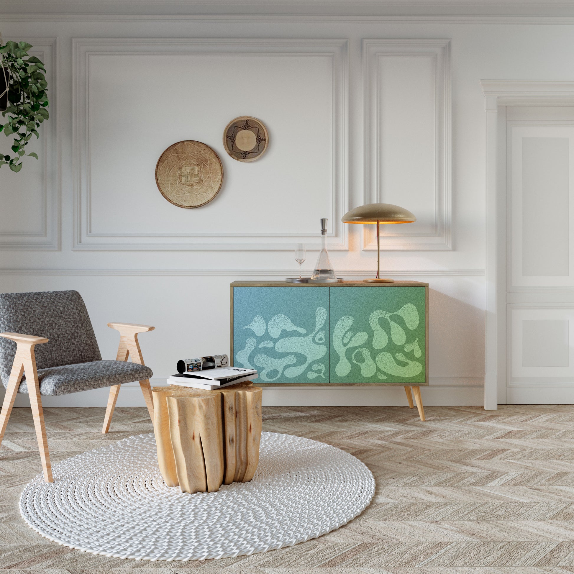 IRREGULAR BLUE 2-Door Sideboard in Oak Effect