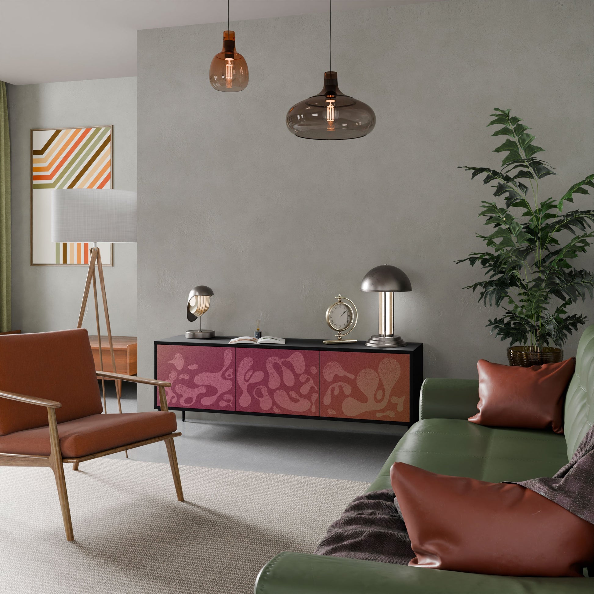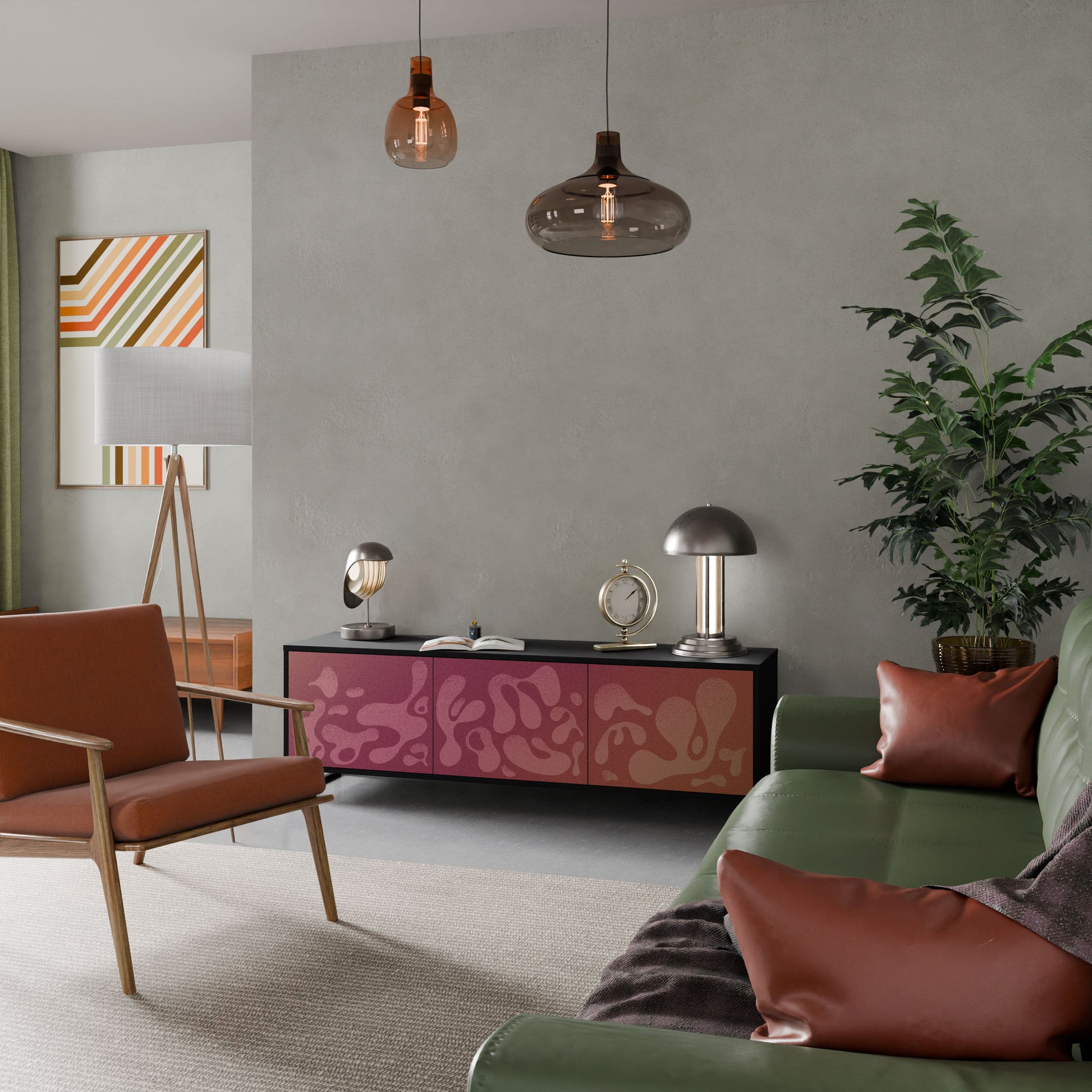 IRREGULAR PINK 3-Door TV Stand in Black Finish