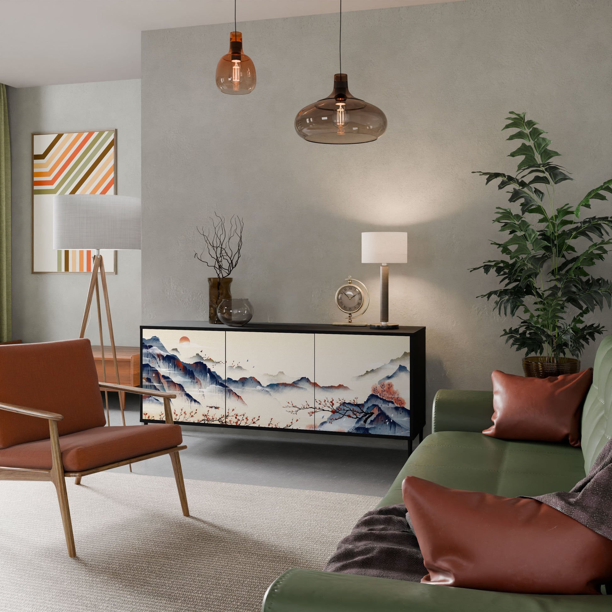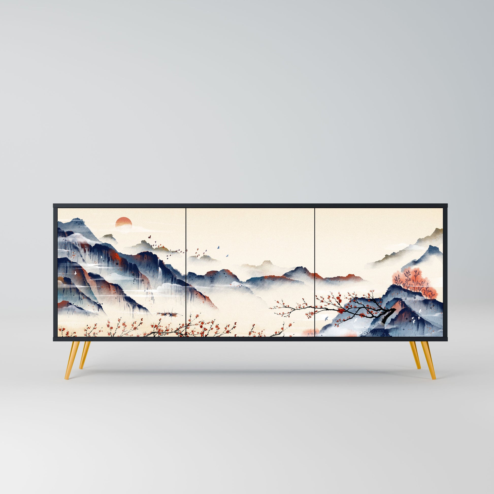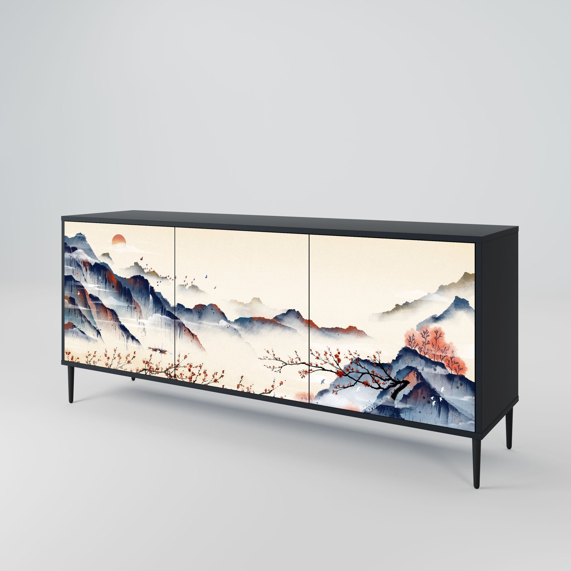JAPANESE LANDSCAPE 3-Door Sideboard in Black Finish