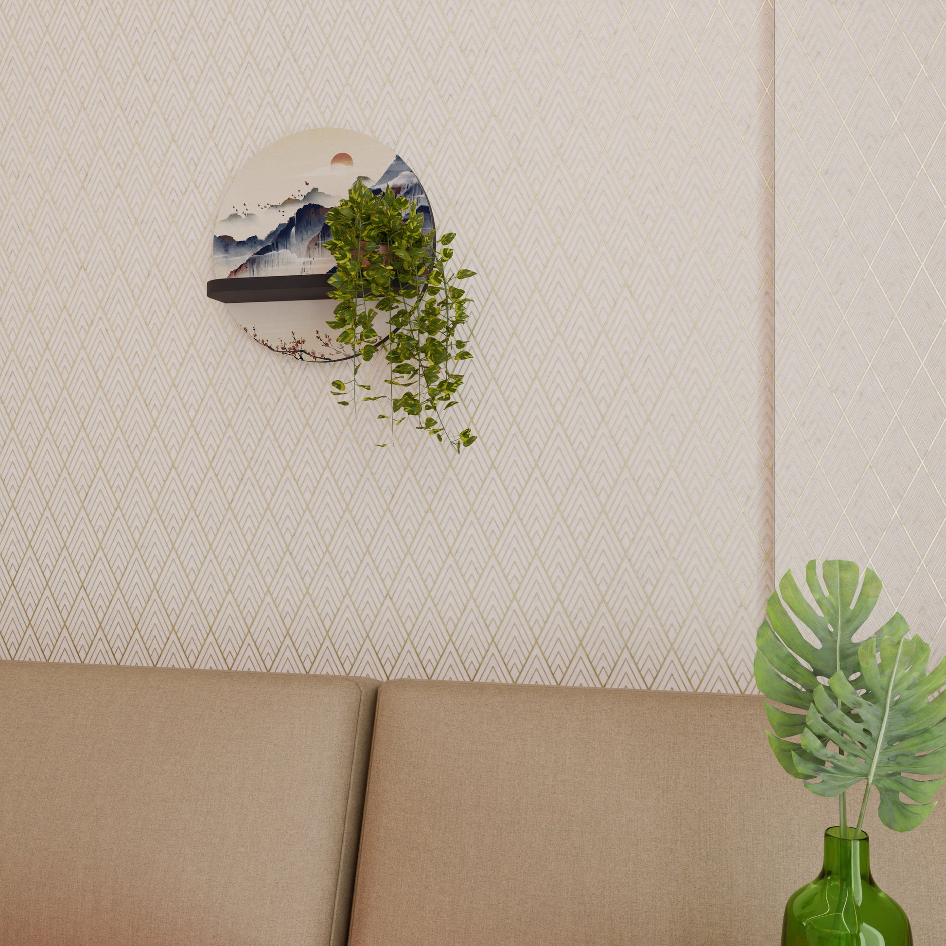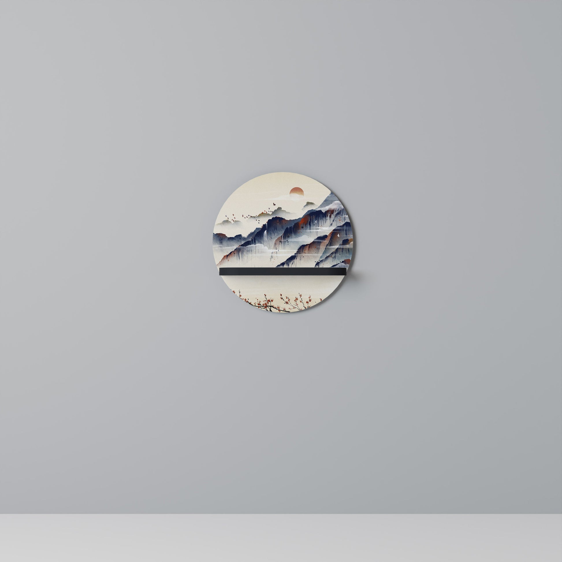 JAPANESE LANDSCAPE Round Art Shelf In Black Finish
