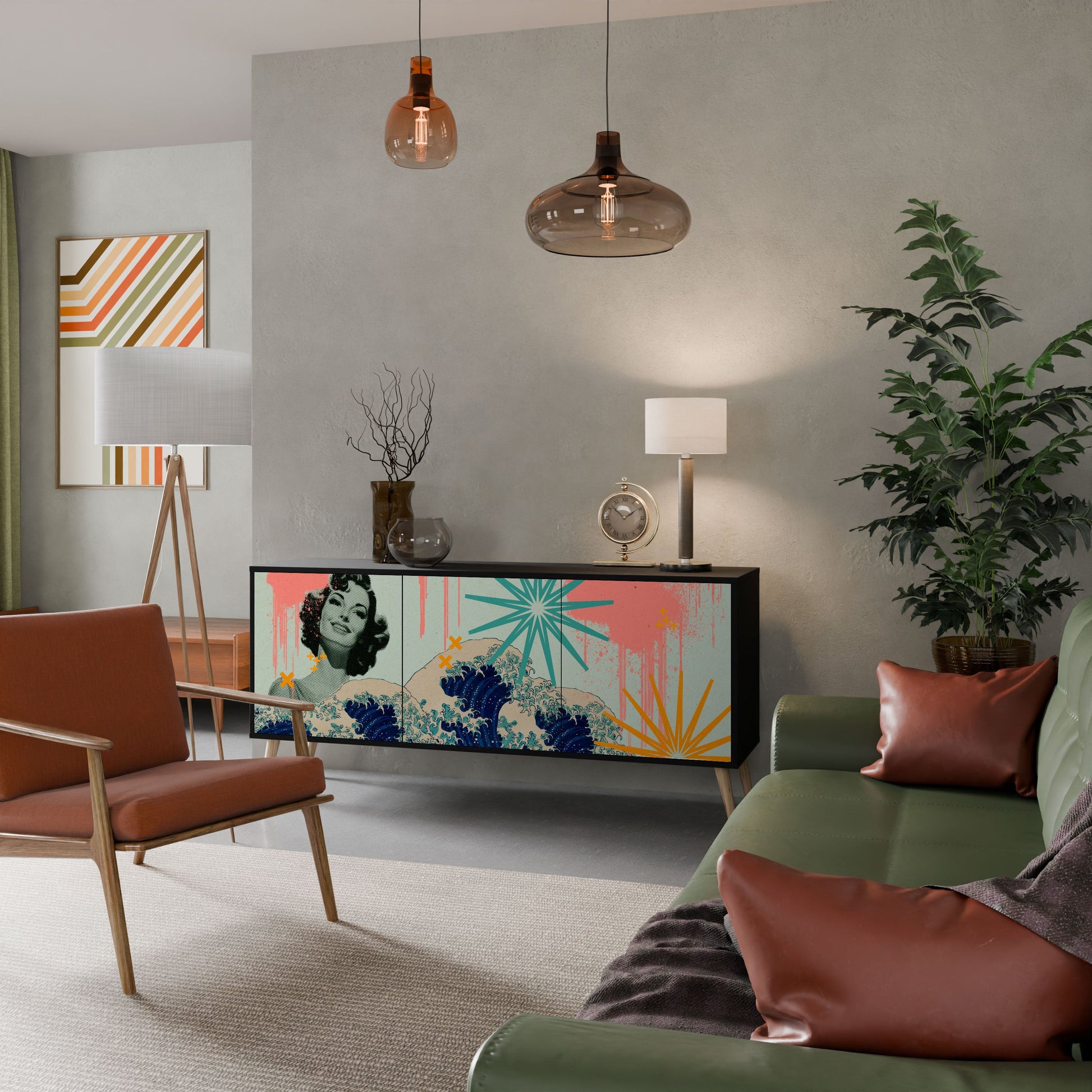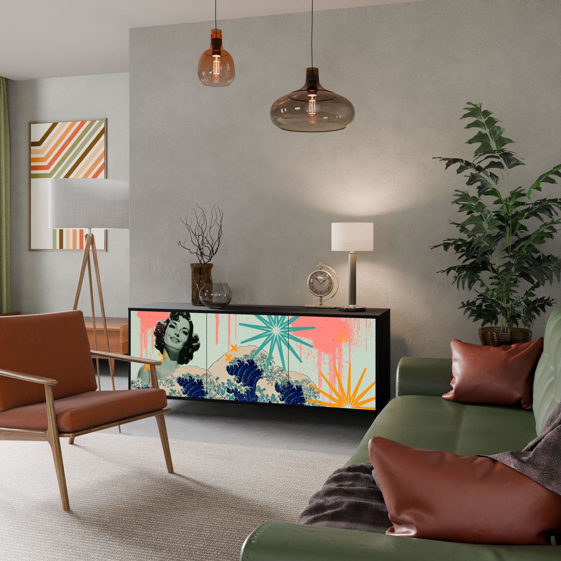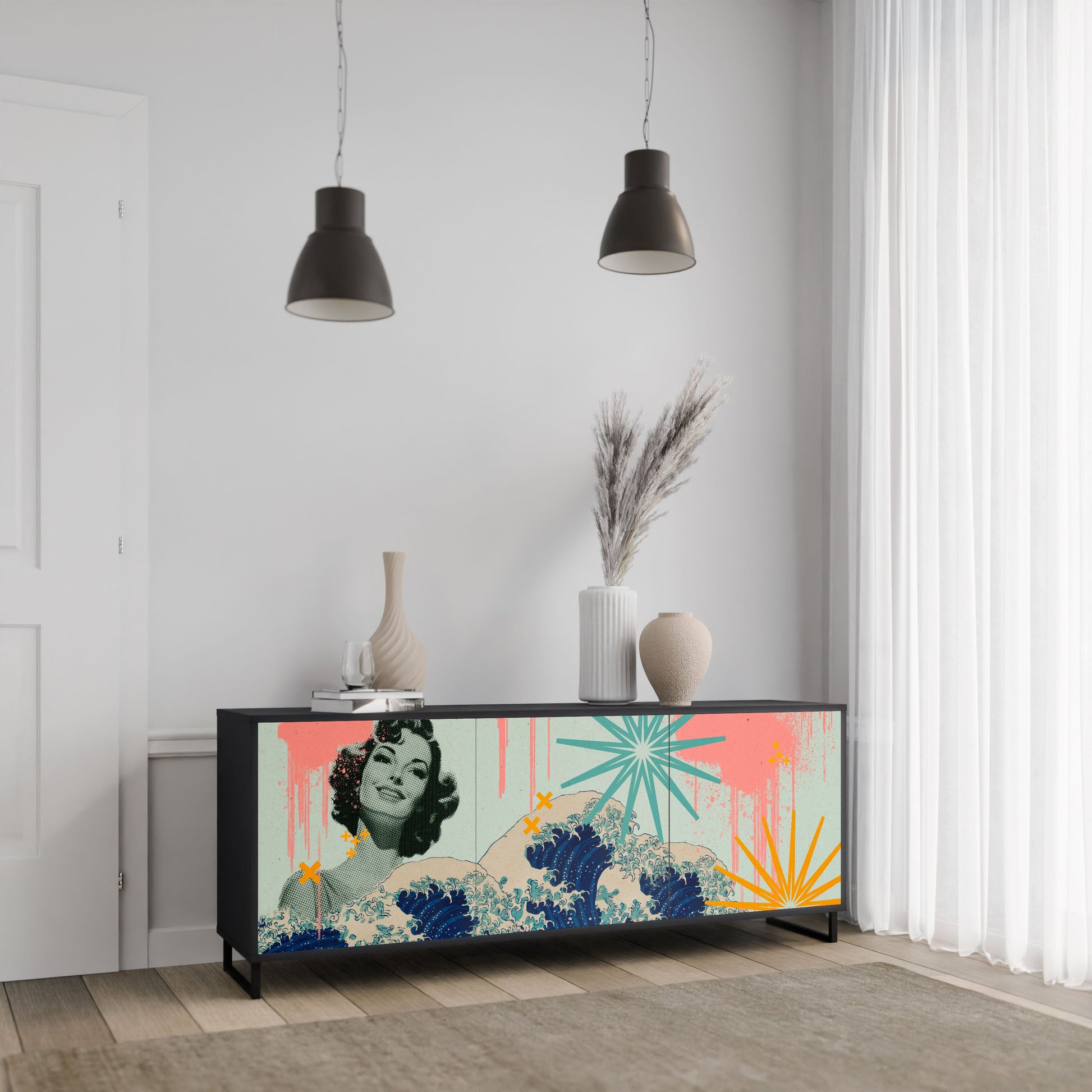 Elegance and functionality in a single piece of furniture – our 3-Door Sideboard with a black body is the perfect solution for lovers of stylish, modern interiors. The black body emphasizes the bold character of the furniture, while the fronts with a unique print add an artistic touch. It fits perfectly in the living room, bedroom, or office, complementing both modern and industrial arrangements.